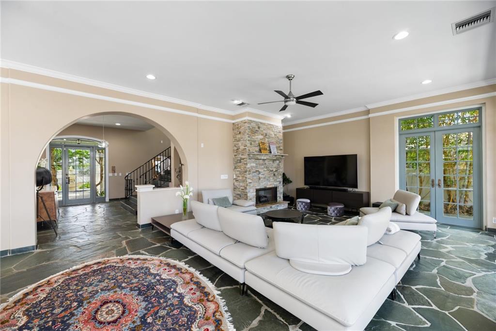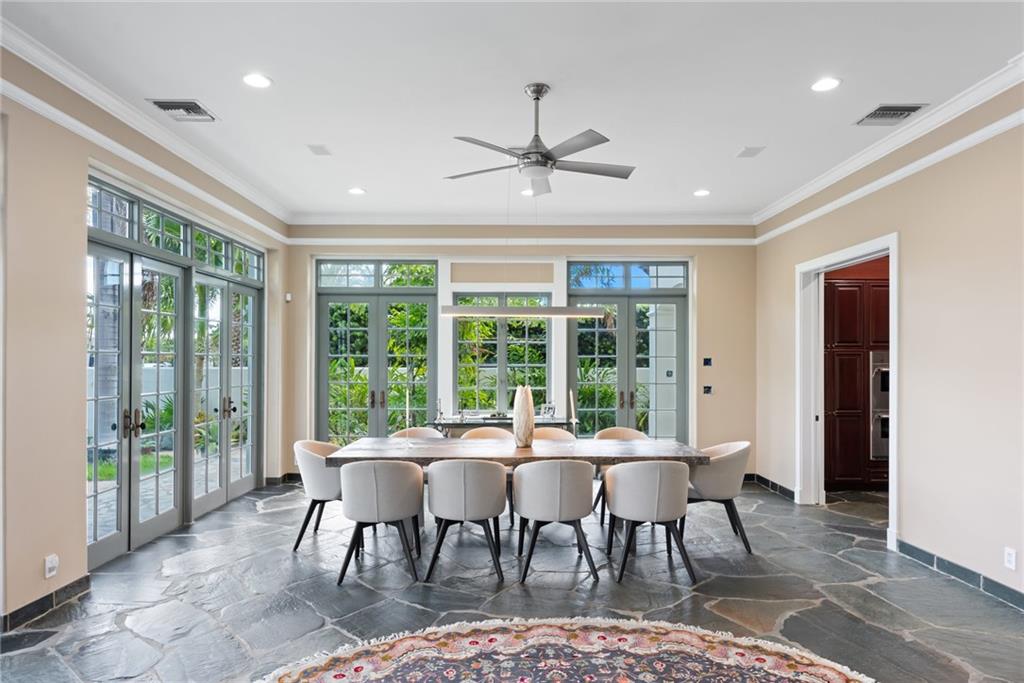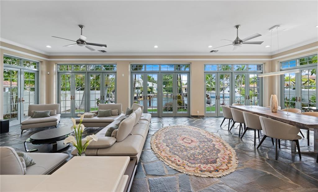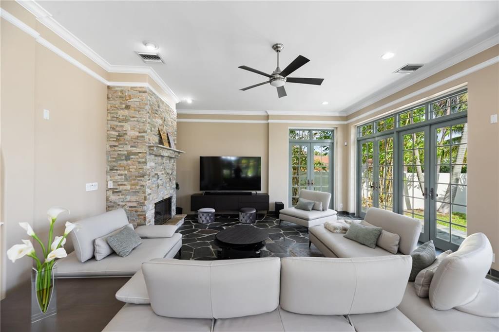 65' Seawall Accommodates 45' Boat on 145' Wide Canal. Caribbean Style Home with Recent Renovations. Approx. 11.5 Ft Ceiling Height First Level. Separate Entry Guest Suite off Staircase with Private Terrace. Quiet Neighborhood Connects 6 Blocks with Intracoastal Drive. Slate Floors in Living Areas. Charming Entry Courtyard w/Fountain & Outdoor Full Cabana Bath Master BR: Gas Fireplace, Wood Floors, Spa Tub, Two Closets, Terrace, Wood Shutters. Iron & Stone Staircase. Office/Gym/5th BR has No Bath but nearby access to Powder Rm. Great Rm: Stack stone Fireplace, Walls of Glass w/Transom Windows. Matterport Tour: https://my.matterport.com/show/?m=fe3MvwJE4uS