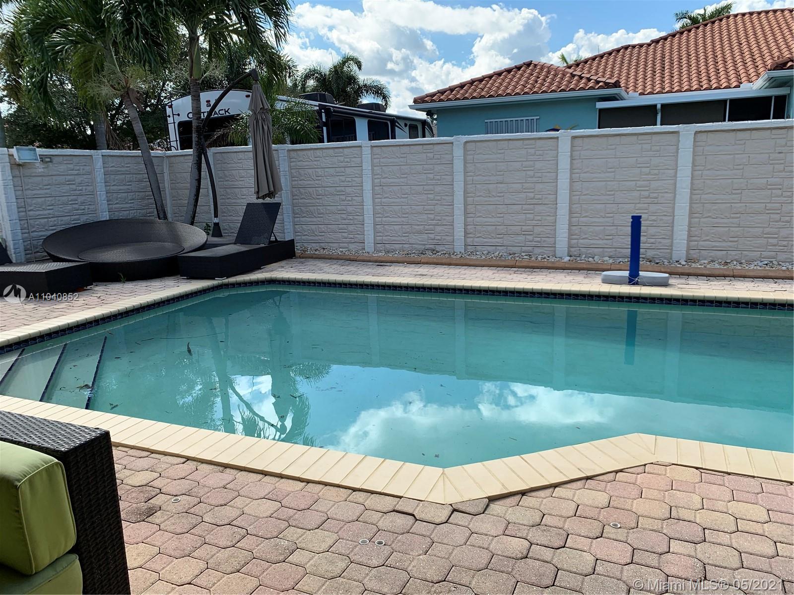 GREAT 4 BED 3 FULL BATHS MIAMI LAKES HOME HIGH CELININGS TILE ROOF, FRENCH DOORS BRICK PAVERS LOCATED IN PRIVATE COMMUNITY WITHOUT HOA SORROUNDED WITH BEATIFUL HOMES AND GREAT SCHOOLS. LARGE CORNER LOT POOL AND BACKYARD. 2 -CAR GARAGE TIKI HUT WITH BBQ AREA. CONCRETE FENCE WITH GATES ALL AROUND TRAVERTINE FLOORS. NEEDS A LITTLE TLC BUT IS IS VACANT AND READY TO MOVE IN. CAN BE SHOWN MONDAY THRU FRIDAY WITH APPT ONLY STARTING ON MAY 27, 2021. WILL NOT LAST