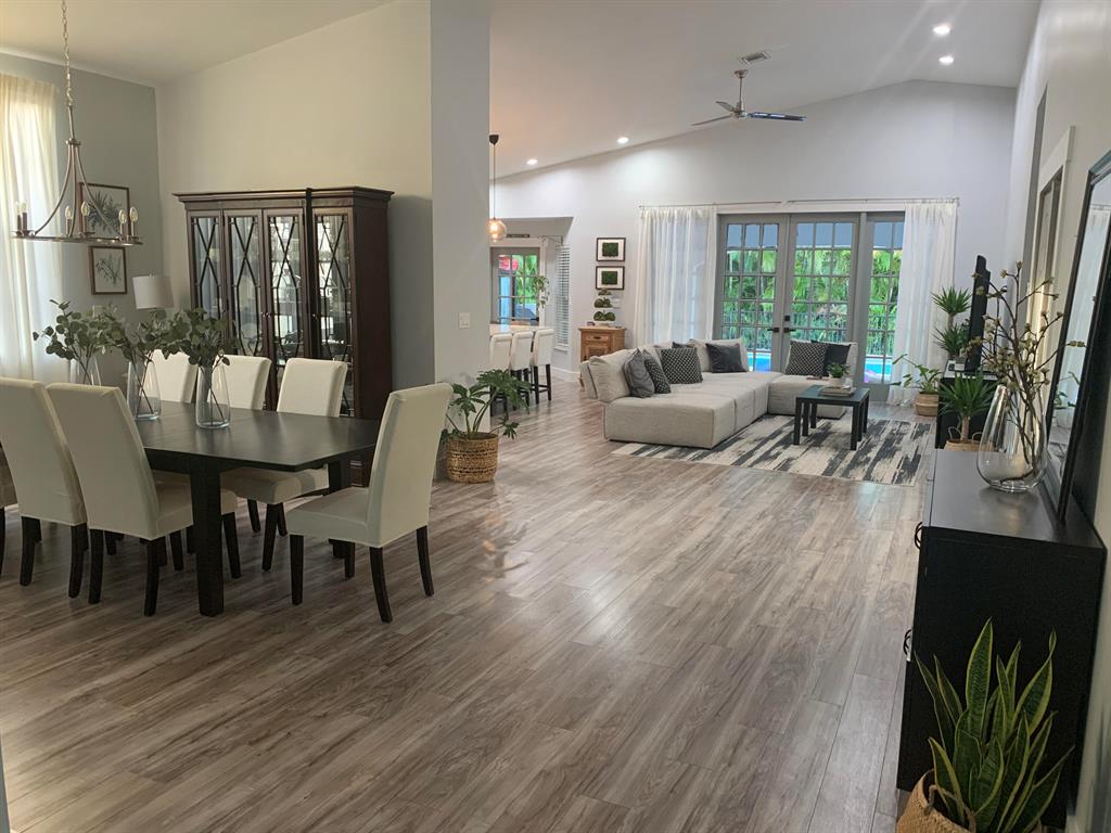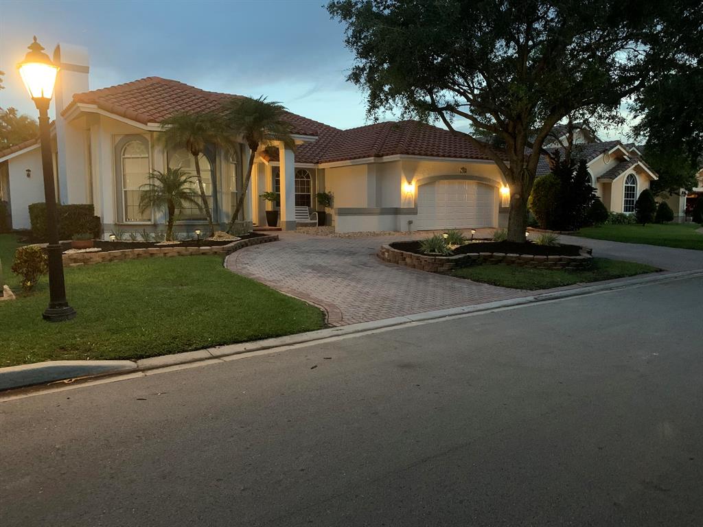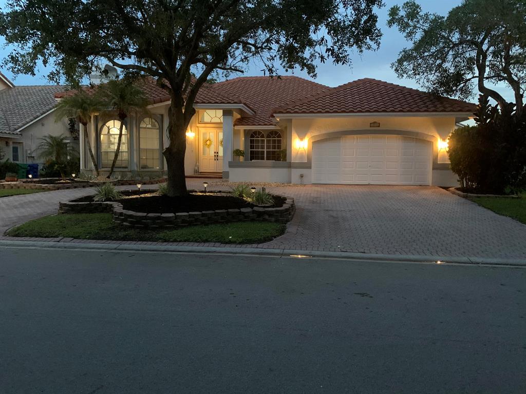 Gorgeous open concept 4 Bedroom 3 Bath + a huge 5th room that can be used as 5th bedroom, In-law suite, office, or Den, recently updated home in prestigious Eagle Trace golf community. Walk in the front door to Vaulted ceilings and great view all the way through to the pool. All new and modern kitchen with a huge 4x9 centerpiece island with counters and backsplash to match. All new baths wrapped in large Italian tile and a beautiful 3D tile wall in the master. A rated for insurance with New roof installed in 2016, Hurricane shutters all the way around and garage. Very peaceful and safe 24h man gated community with top rated schools and low HOA. Golf without mandatory membership. Just reduced for a quick sale.
