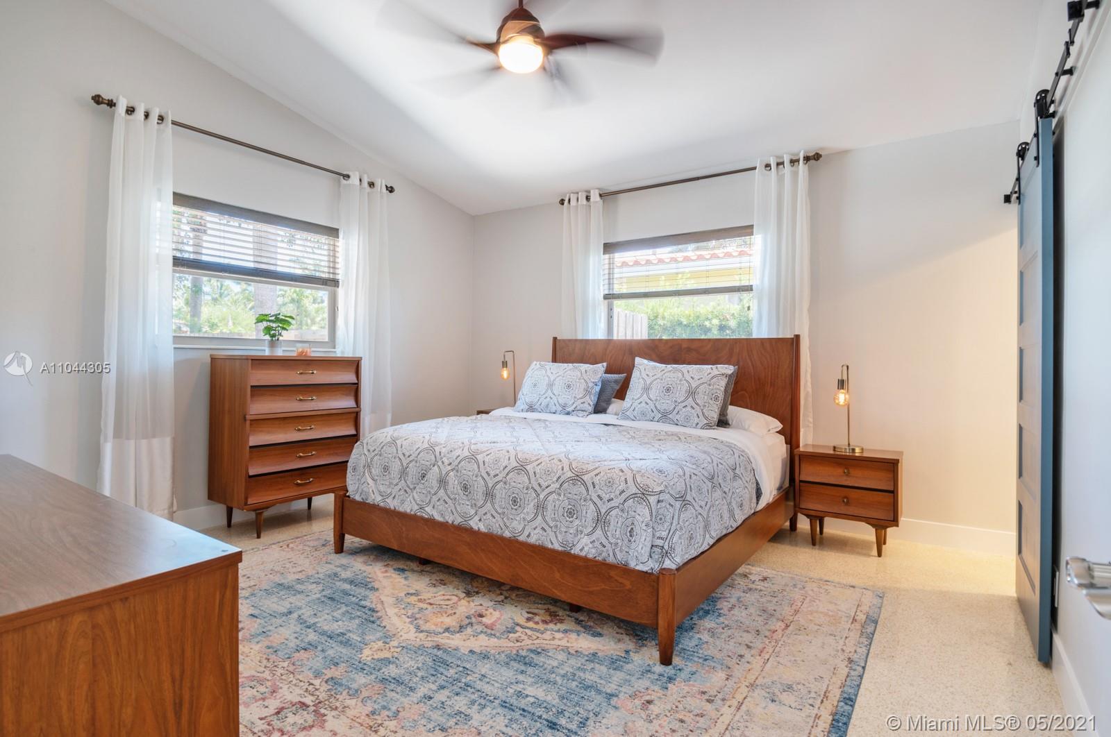 3 bedroom 2 bathroom Mid-century modern beauty in Historic Hollywood Lakes. . . Enjoy marvelous sea breezes from your Beach home just a bike ride or walk to the Hollywood Beach Broadwalk. Walk in to vaulted ceilings and character-galore. . . Original restored terrazzo floors throughout, meticulously renovated kitchen with chef's gas stove, quartz countertops & island, open concept perfect for entertaining and guests. Family/Living room plus additional Florida room that opens to a "Key West' style backyard. Outdoor entertaining and living space under carport/patio area. Plenty of room or a pool if desired. Roof Newer, Impact Windows 2018, Fence 2018 This home is move-in ready!