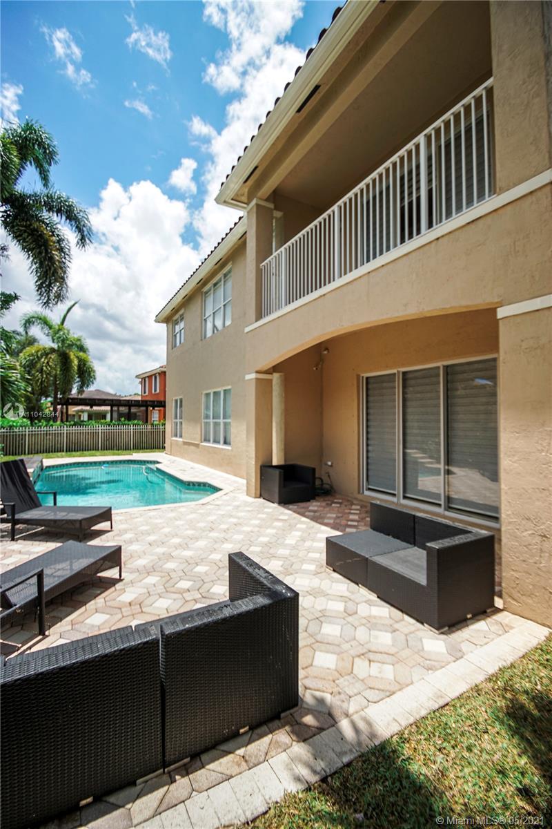This one-of-a-kind renovated home has 5 bedrooms,4 full baths,a 3-car garage, a private backyard, and a pool. Other features include marble and laminate floors; a contemporary kitchen with white quartz countertops and stainless steel appliances; a large and open layout that provides natural lighting throughout the home; spacious master suite with a balcony and two walk-in closets.The first story has one bedroom and a full bathroom; the second story has 4 bedrooms with a junior master suite and two additional bedrooms with a Jack & Jill bathroom. Two newly installed A/C units.A low monthly fee; gated community with 2 main entrances currently being renovated;a community pool and tennis court.Centrally located near Miramar Town Center, Pembroke Gardens, Pembroke Lakes Mall, and main highways.