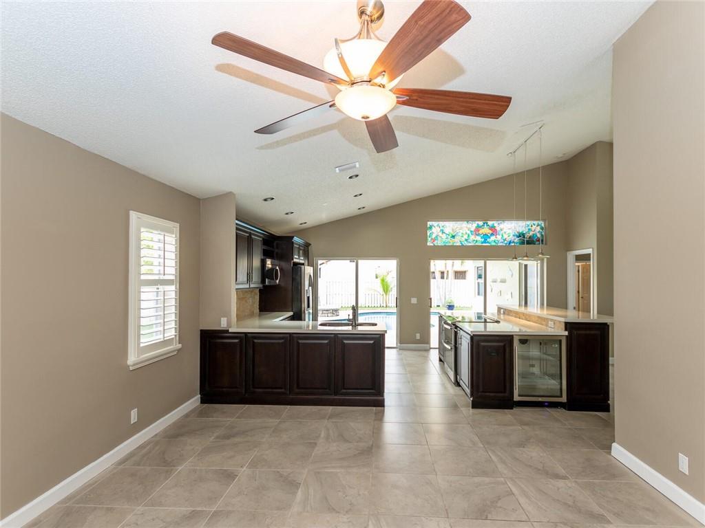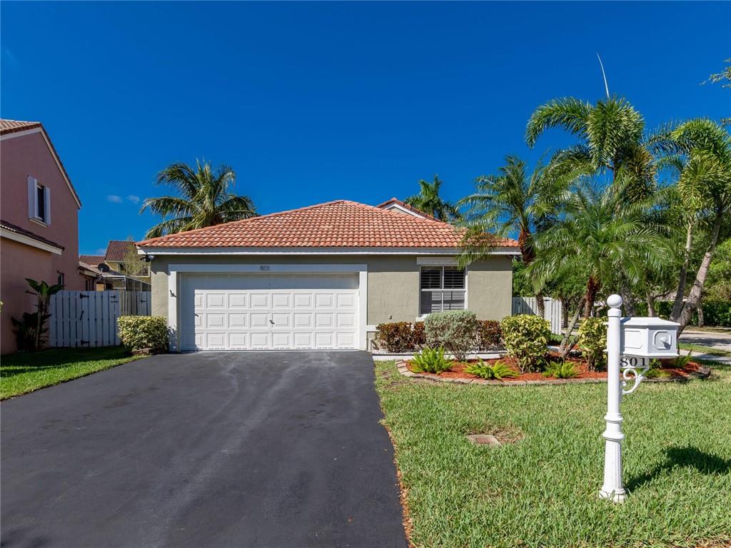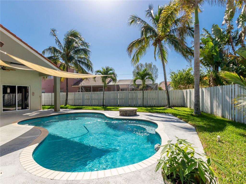The home of your dream located in the Falls, oversized corner lot, 3 bedrooms, 2 baths, large master suite, vaulted ceilings, light & open social area featuring an updated gourmet kitchen, large cooking island, quartz counter tops, contemporary cabinets with pull out shelving, top appliances, beverage refrigerator and double oven, breakfast/dining area overlooking a retreat style backyard with a free form pool, covered/roofed patio, fully fenced yard perfect for relaxing or entertaining. Other features: remodeled second bathroom, newer laminated floors in bedrooms, tiled floors in social areas, plantation shutters, built-in closets, hurricane impact front door, guard gated community, home is walking distance to community park & Eagle Point Elementary School