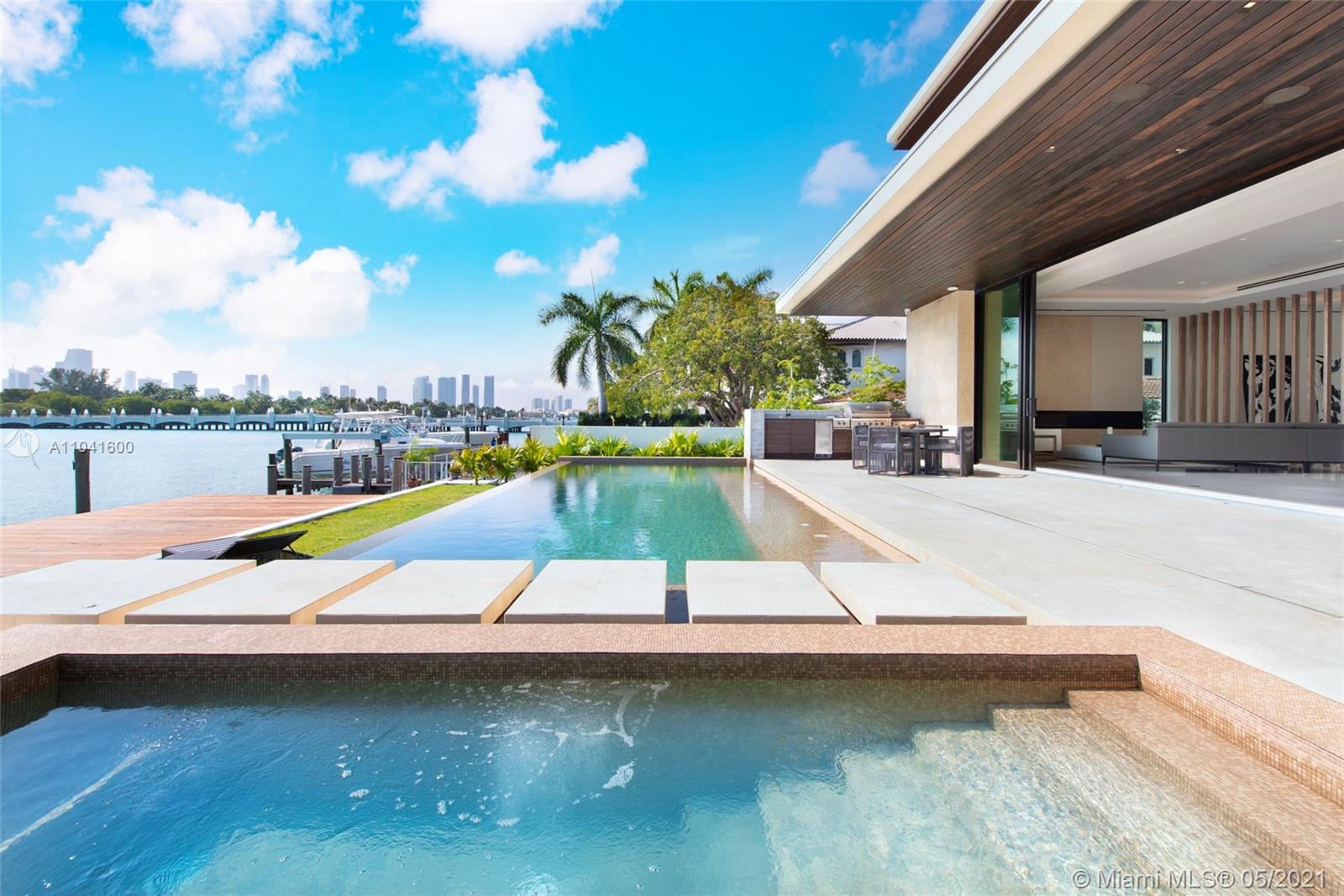 NEW LUXURY WATERFRONT VILLA on one of Miami Beach’s most coveted addresses - HIBISCUS ISLAND. Designed by architect Borges Architecture & Design, this modern masterpiece is the perfect home for anyone looking to enjoy the best Miami has to offer. This beautiful 5 Bedroom, 5.5 Bathroom home features: rooftop deck with 360 degree views of the Miami skyline, infinity edged pool with sunset vistas of Biscayne Bay and outdoor bbq, Ornare custom kitchen, bar, full-length wine cellar, floating staircase, spacious master bed with marble bath, Mia Cucina his/her, floor-to-ceiling sliding doors, 2-car garage, elevator & more. Move-in ready with full furniture package.