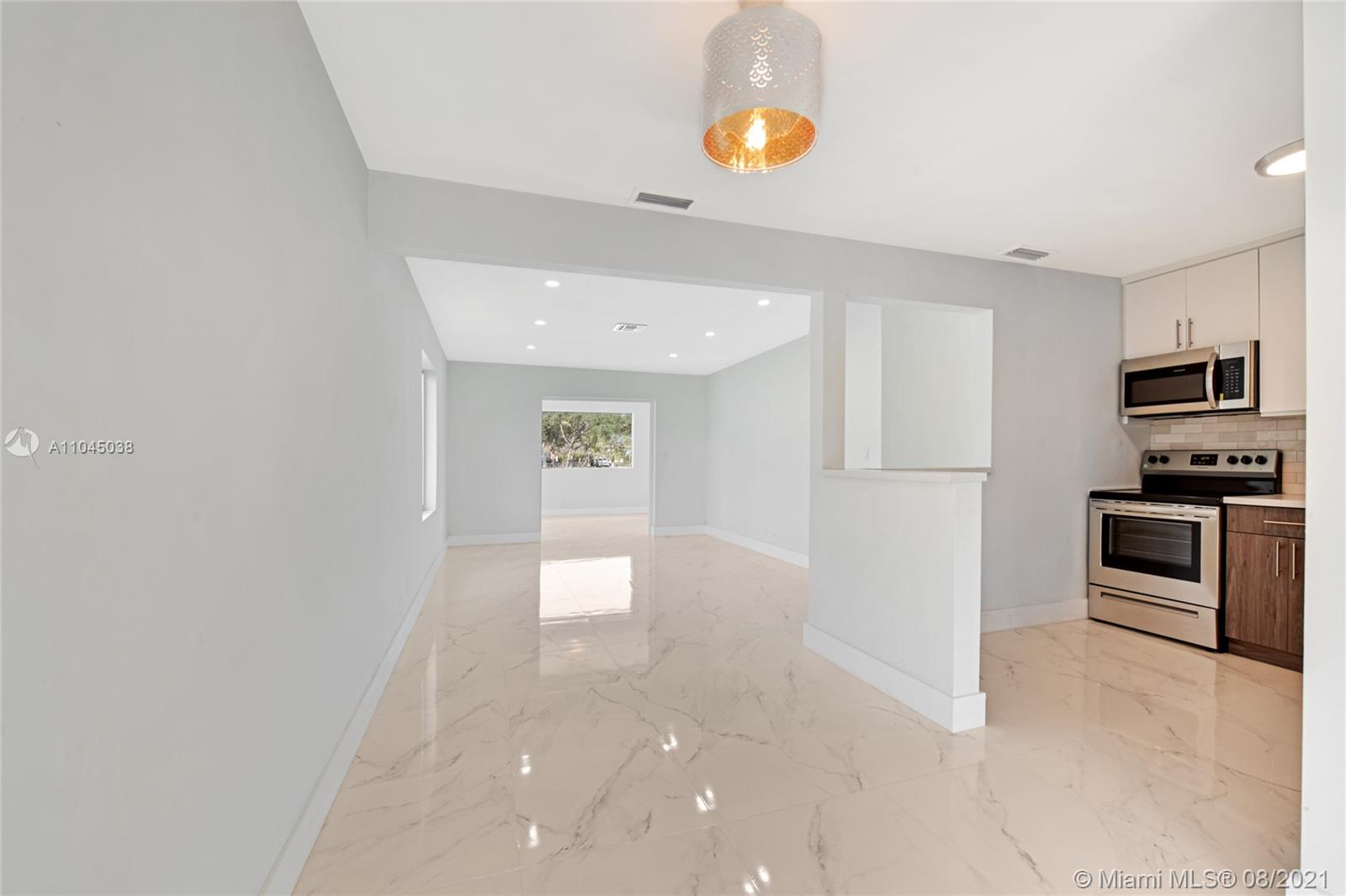 Totally remodeled, 1,388 sq feet under A/C. corner house in the heart of Croissant Park, brand NEW ROOF March 2021, new impact windows on the enclosed patio, new electrical panel, new appliances, new kitchen with quartz countertop, new floor, new recessed lights on great room; 3 bedrooms and 1 bathroom. Fully fenced large back yard, with double door gate, plenty of space for parking, sprinkler system. Minutes from airport, seaport, highways, beach, downtown/Las Olas, and Whole Foods.