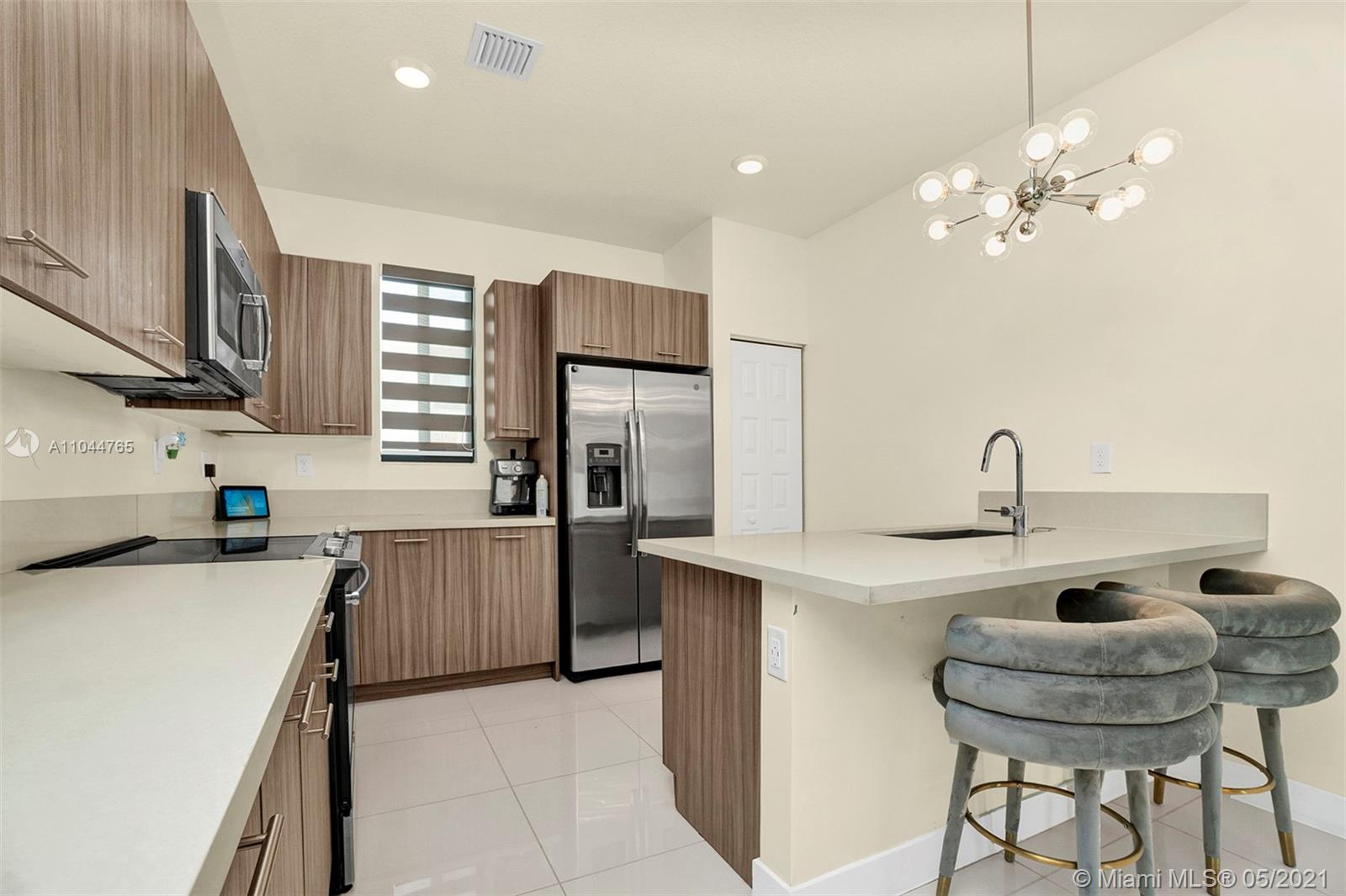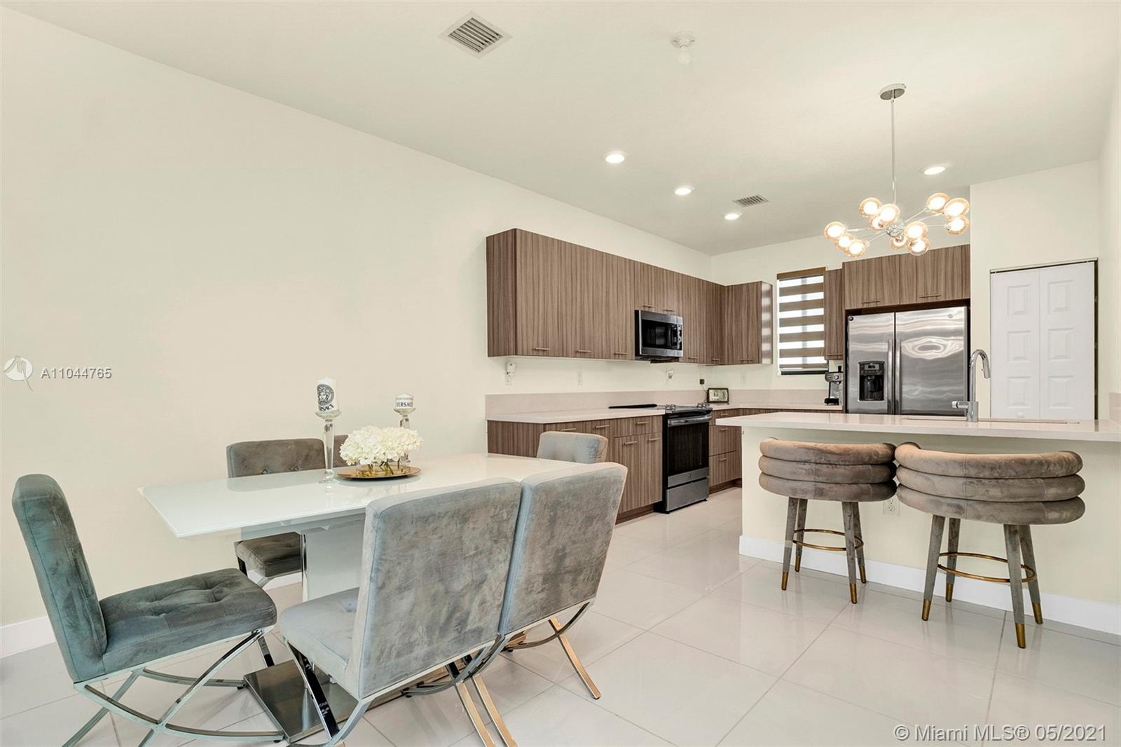 Modern, open concept layout townhome in the newest community in Doral. This newly built home has beautiful porcelain floors throughout and wood on stairs. The stair railings have been upgraded to a sleek glass design. Window coverings are all professionally done with zebra blinds. One car garage permits the parking of one inside and one car outside. Impeccable home and no detail has been spared. This home is close to all of the restaurants and shops that Downtown Doral has to offer. New state of the art clubhouse is a must to see. Contact me for showings.