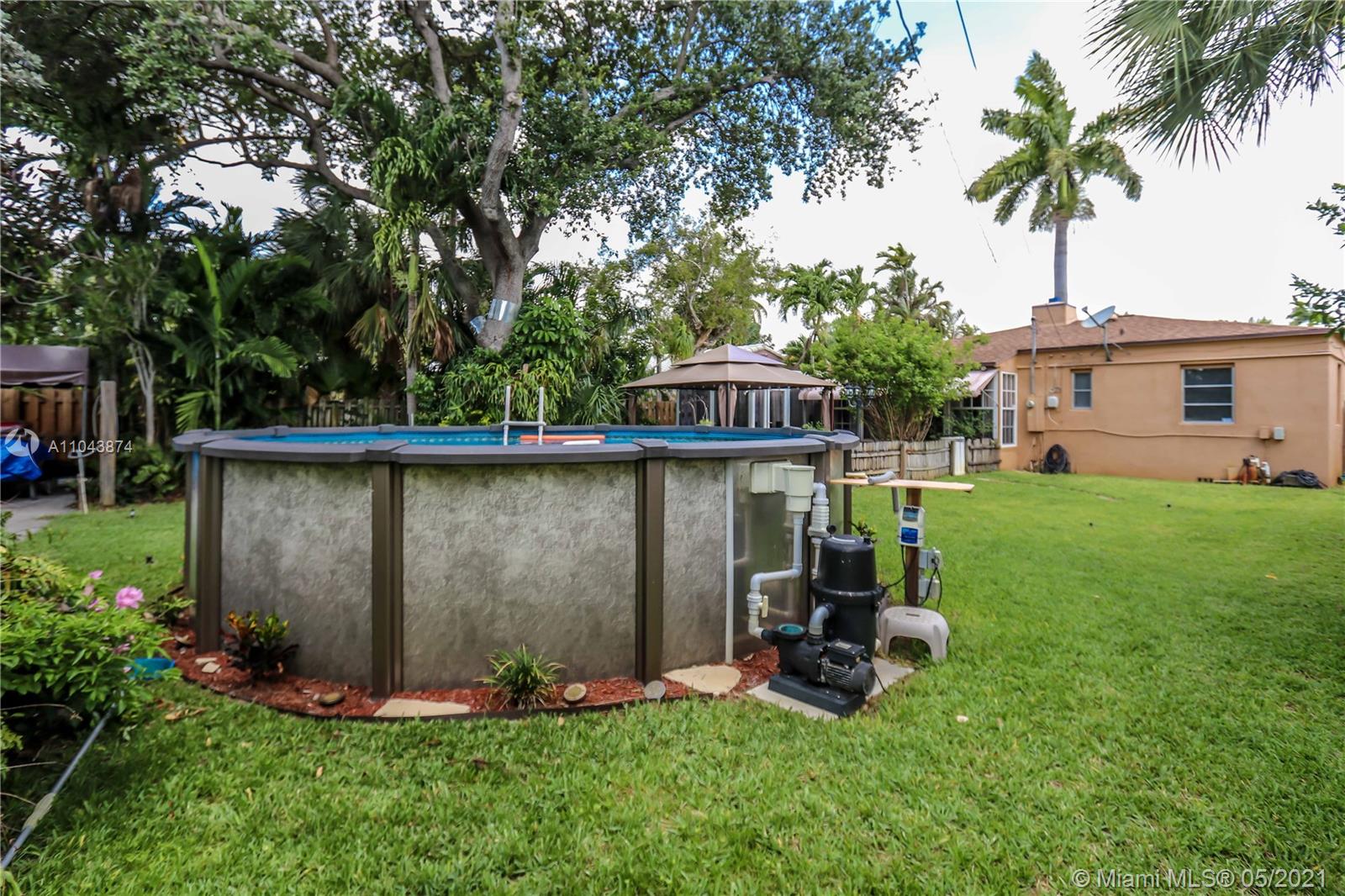 A Must See Florida Charmer! Beautiful Original Hardwood Floors. Nice open layout w an Eat in Kitchen. Gas Cooking. Florida Room is used as Formal Dining has lots of Windows looking out to your Tropical Garden. Owner also added a wonderful Elite 2000 Room Addition under Air, which gives you additional Living Space! Great size Bedrooms, lots of Storage. Huge Oversized Tropical Backyard w Gazebo and beautiful 18 foot above ground Saltwater Pool. Newer Fence. Asphalt Driveway with Covered Parking in back and/or room for a boat. Large/High 1 GA with lots of Storage space. Insulated Attic, New Impact GA door, Shutters for Windows. Stamped Concrete Driveway in front for additional Parking. Security Lights around the home, Sprinkler System, Mature Landscaping back and front w a Manicured Lawn.