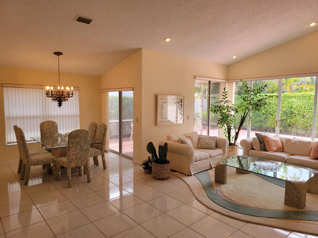 Private ,one story, open floor plan , single family home in prestigious Boca Pointe-Palomar. There is a great room/dining room overlooking an extremely private backyard and screened patio. This is a 2 bedroom with a den/possible 3rd bedroom . The spacious eat-in kitchen also has a large pantry closet . This big master bedroom features vaulted ceilings, walk-in closet and a full size closet. Master bath has double sinks, skylights, large tub with separate shower. ***Completely furnished ,turn key and ready for season! The roof was replaced in 2009 and exterior of home just painted less than a year ago. Membership at the country club is optional with a variety of categories to choose from.