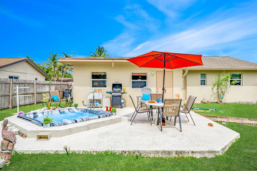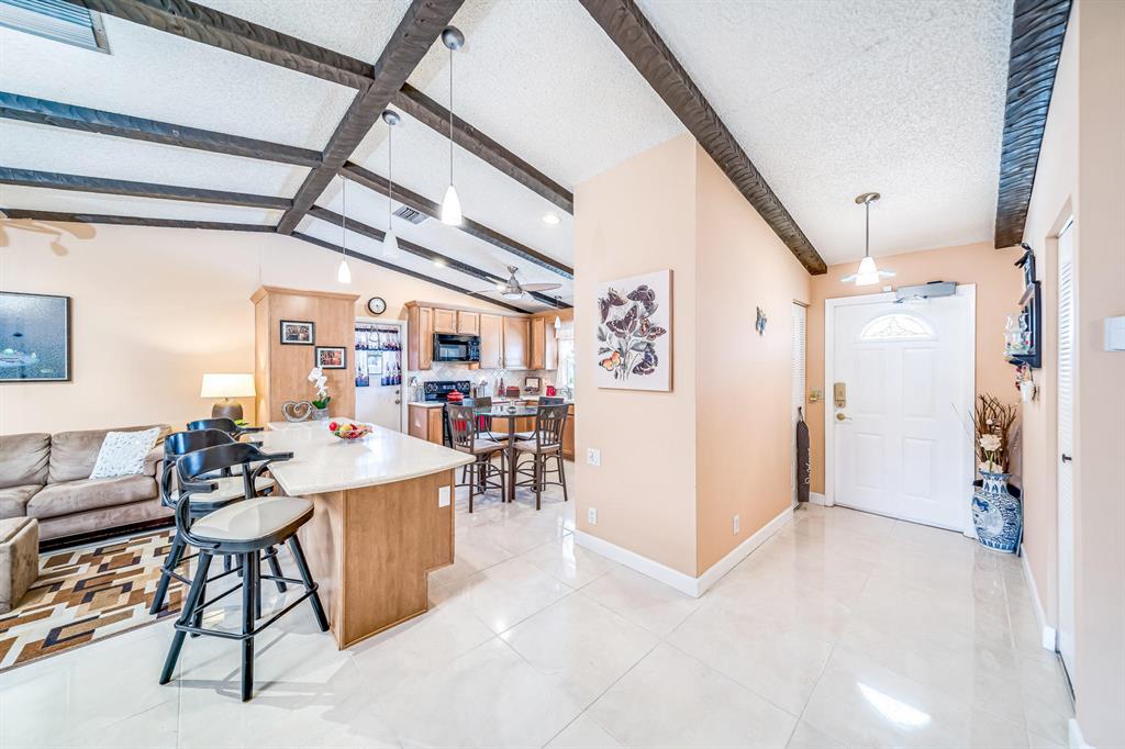 Great home located on a corner lot featuring 3 bedrooms, 2 bath, fenced in yard w/in ground spa w/NO HOA! Impact window throughout! Open & spacious w/huge vaulted/cathedral ceilings w/faux wood beams in living-room & kitchen. Updated gourmet kitchen w/breakfast area, lots of counter space/many cabinets. Large bonus room off the living room. Tile flooring throughout/NO carpet. Master bedroom has huge walk-in closet & En Suite bathroom. Handicap accessible/ramp in front & widen doors(except 1 bedroom). Back yard is a tropical oasis. Open patio w/large sparkling spa w/jets. Fenced in private backyard. Most furniture negotiable. AC 2019/water heater 2016/roof 2005. Boca Trails has NO Hoa, meaning no HOA Fees & No restrictions!!!