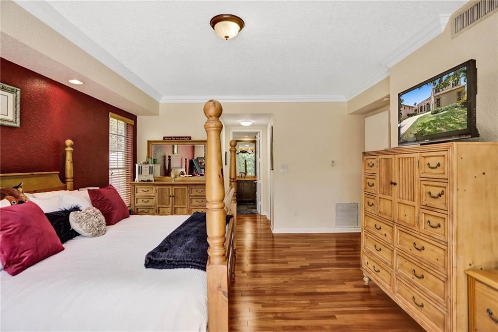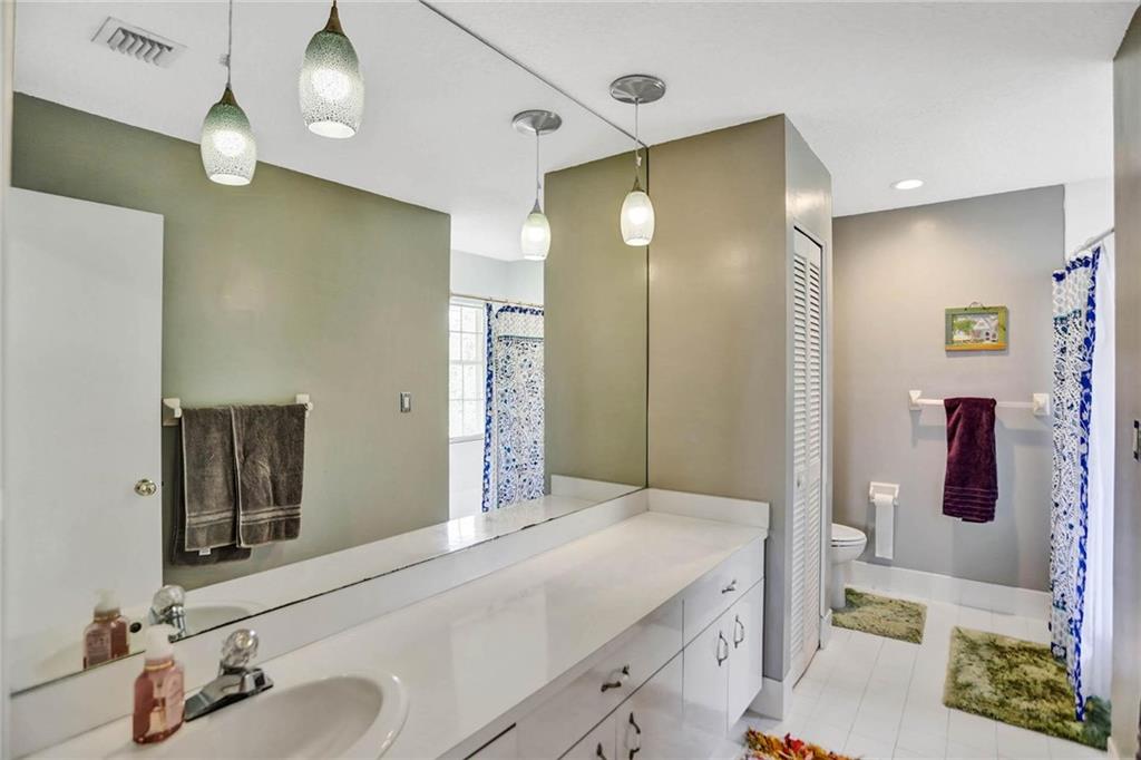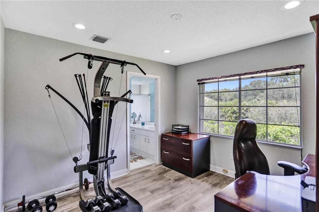 Beautiful two story home in the exclusive, private and gated community of East Landing in Rock Creek. This spacious five bedroom, three and a half bath home sits next to an open lot not zoned for build out, allowing for extra quiet and privacy. Living room boasts volume ceilings and sliders with beautiful views of a lusciously landscaped pool oasis. Oversized 1st floor Master suite with generous his and hers walk in closets and an updated master bathroom suite with dual sinks and a whirlpool tub. New Aquaguard wood grain laminate floors on the stairs and throughout the upper level. Brand new roof, completed February 2021 and two new AC units. Some Impact glass windows on the upper level and hurricane shutters for all.