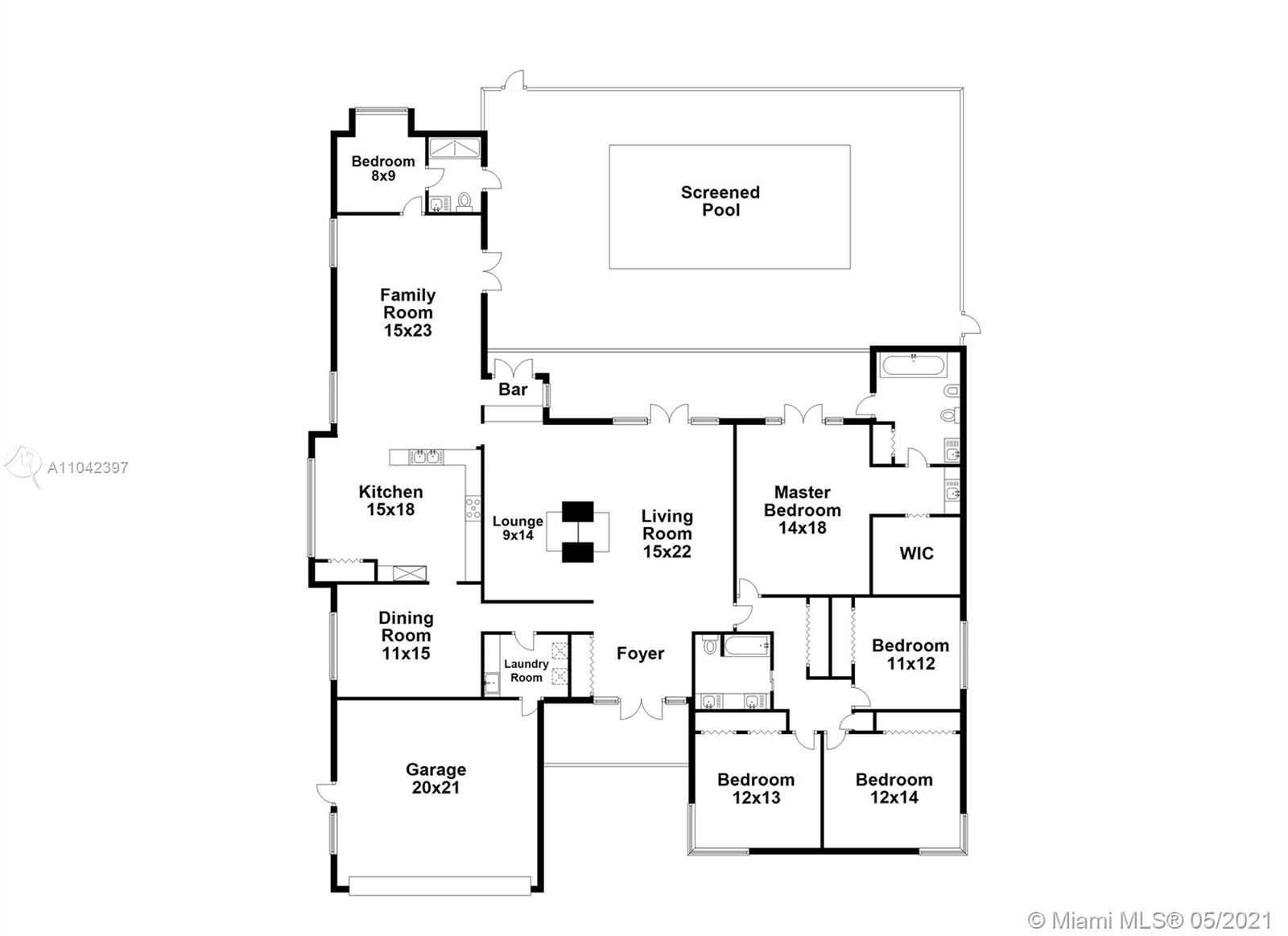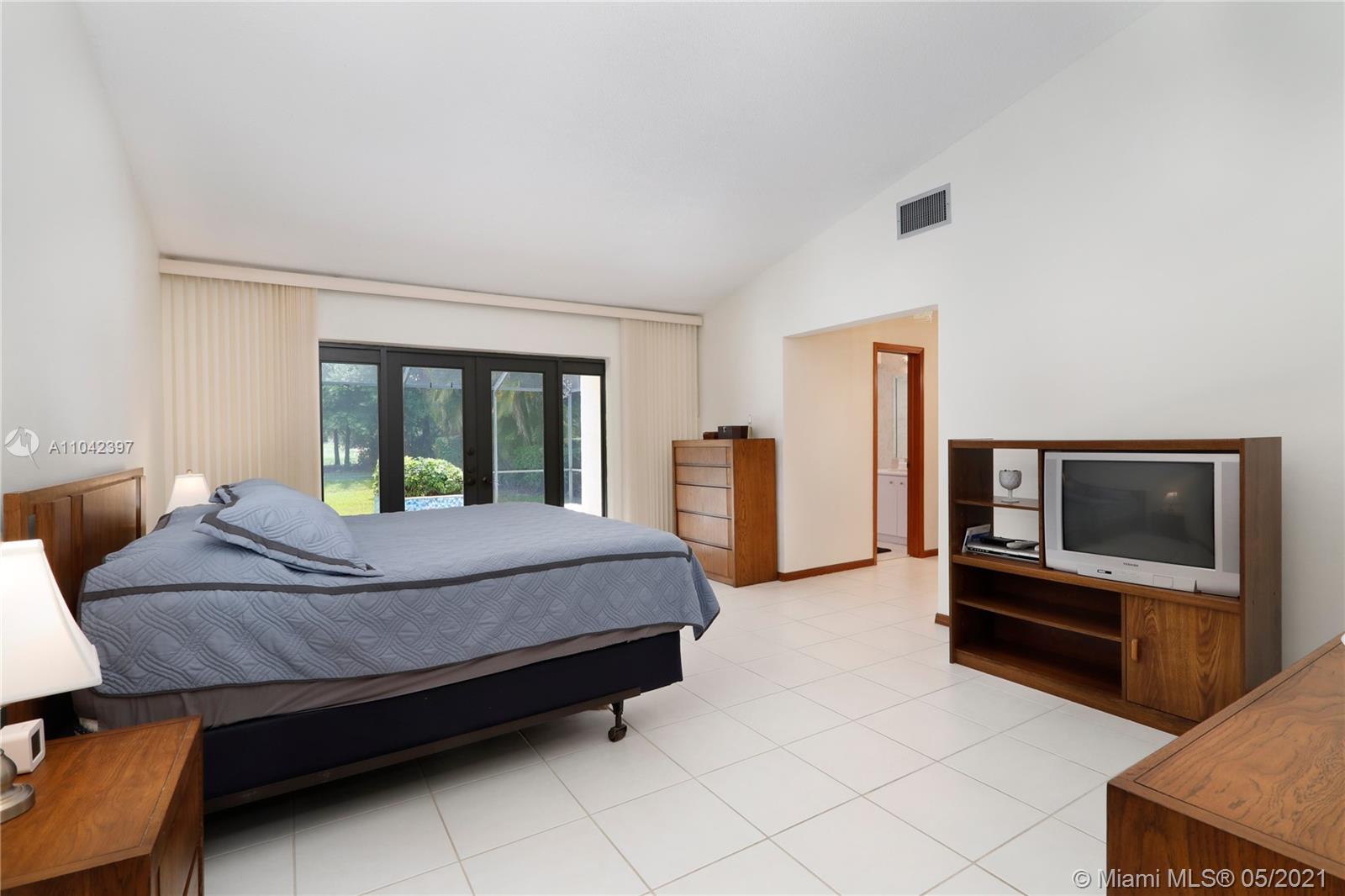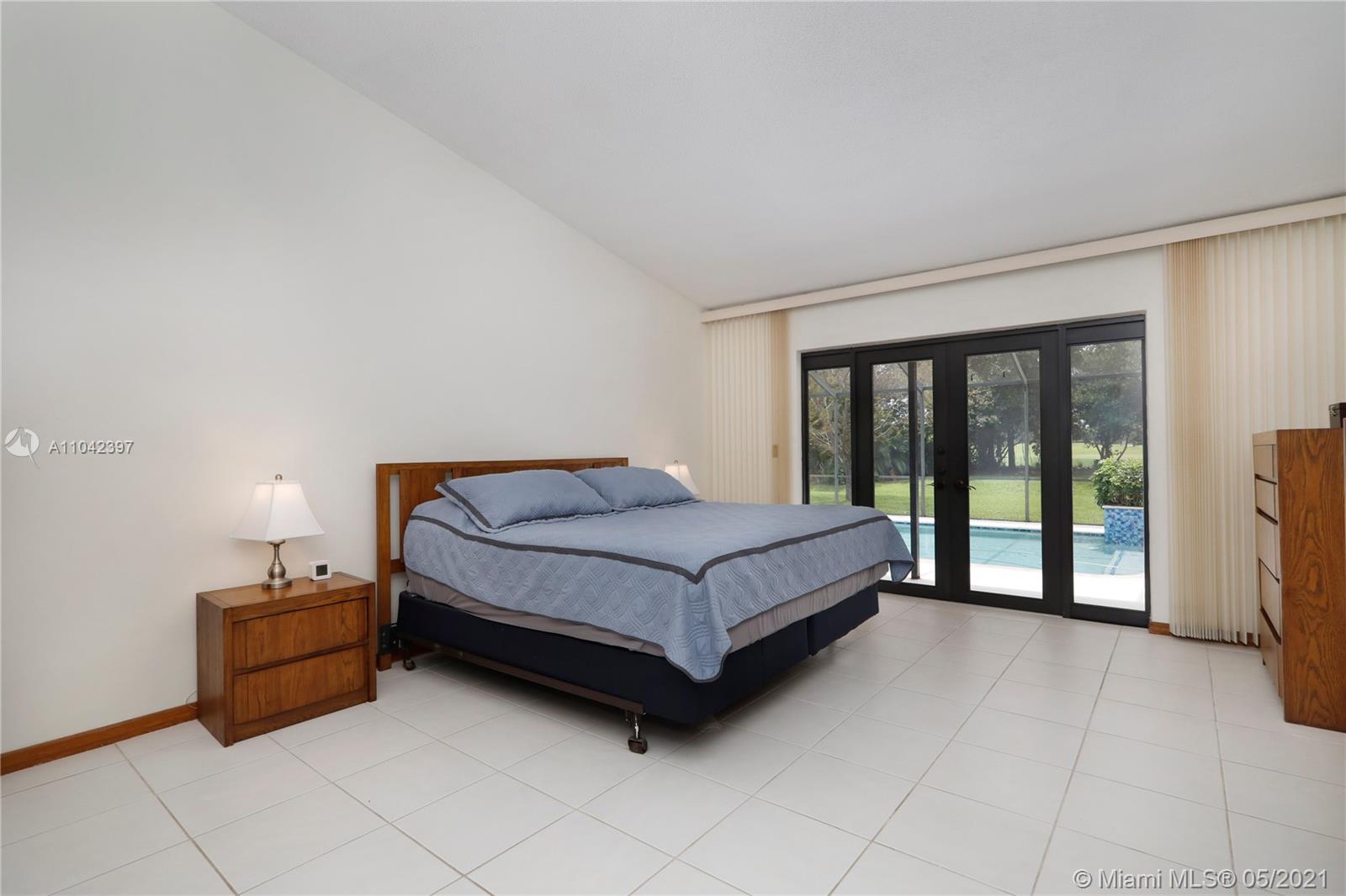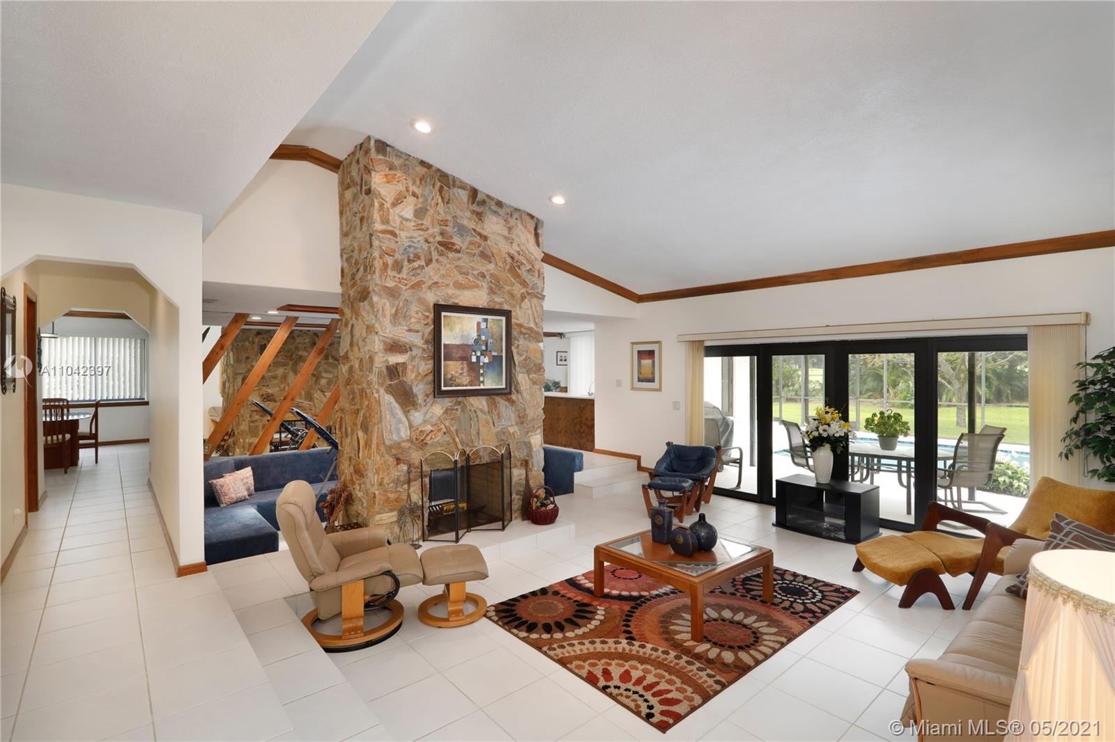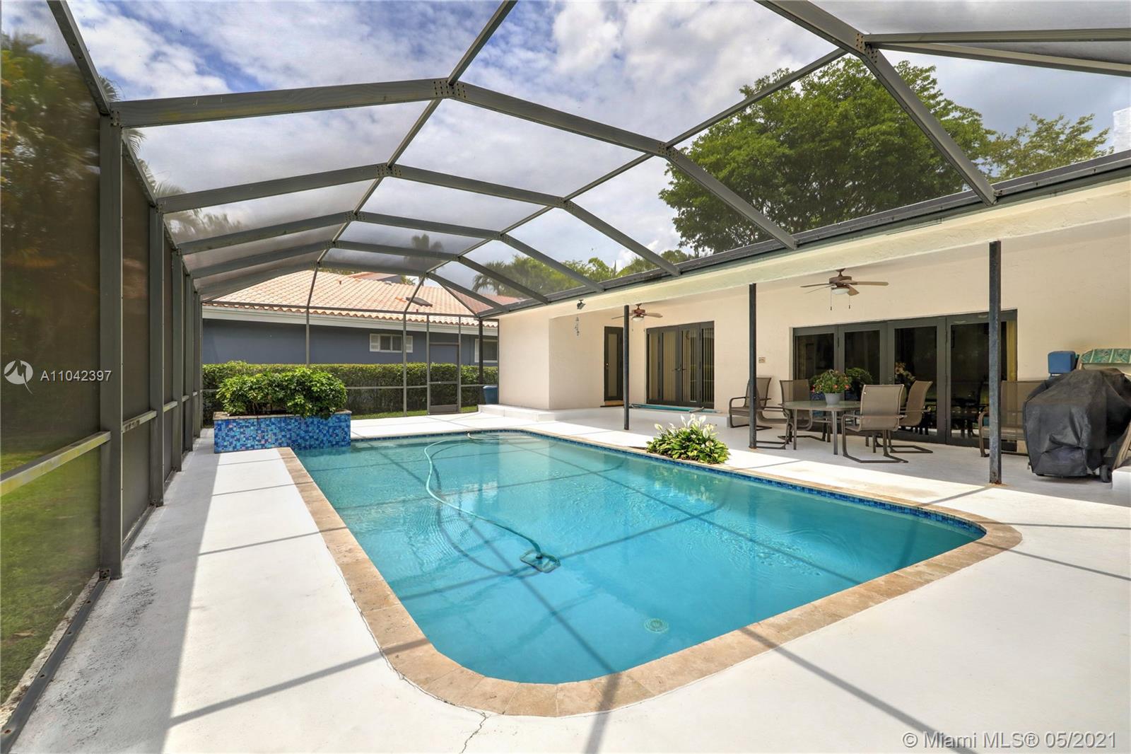 Enter this golf course home in Jacaranda. This breathtaking pool home with a two car garage features a circular driveway, impact windows, a two-sided fireplace, stately wood ceilings, and a bonus room with a bathroom and pool access. Open kitchen and bar, and plenty of living room area for entertaining families and throwing parties. The master bedroom features an enormous bathroom with an open shower complete with sky lights that provide ample natural lighting. The patio is screened and features a saline pool, that has multiple access points and is perfect for hot summer days! Beyond the patio you'll find that you're within steps of the Jacaranda golf course. This home will not last long on the market, make an appointment today!