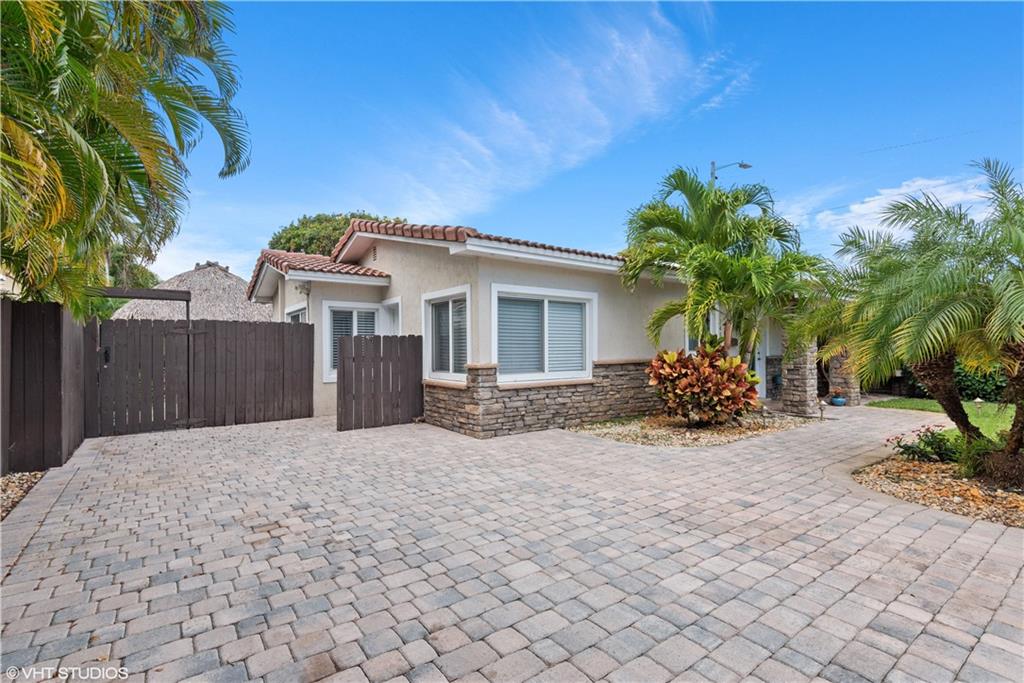 This spacious 4-bedroom/3-bathroom house has an attached 1-bedroom/1-bathroom In-law unit. The main house has a spacious open floor plan where the kitchen with its center island and breakfast bar, dining room and living room blend together into one perfect space with natural light for entertaining and family time. Three of the bedrooms in the main house have its own bathroom and one of them has private entrance from the outside of the house. The fourth is a bonus room, has french doors that open to backyard and can be used as a TV-room, gym or home-office. 500 Sq ft 1-bedroom/1-bathroom In-law unit has pool views and has its own kitchen and living space. Pool is surrounded by a low maintenance beautiful landscape and driveway accommodates parking for up to 5 cars.