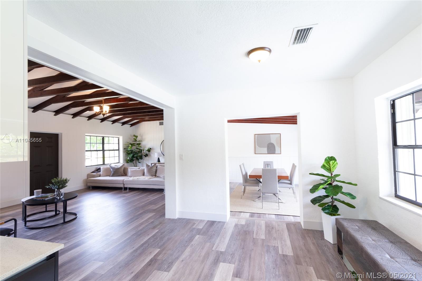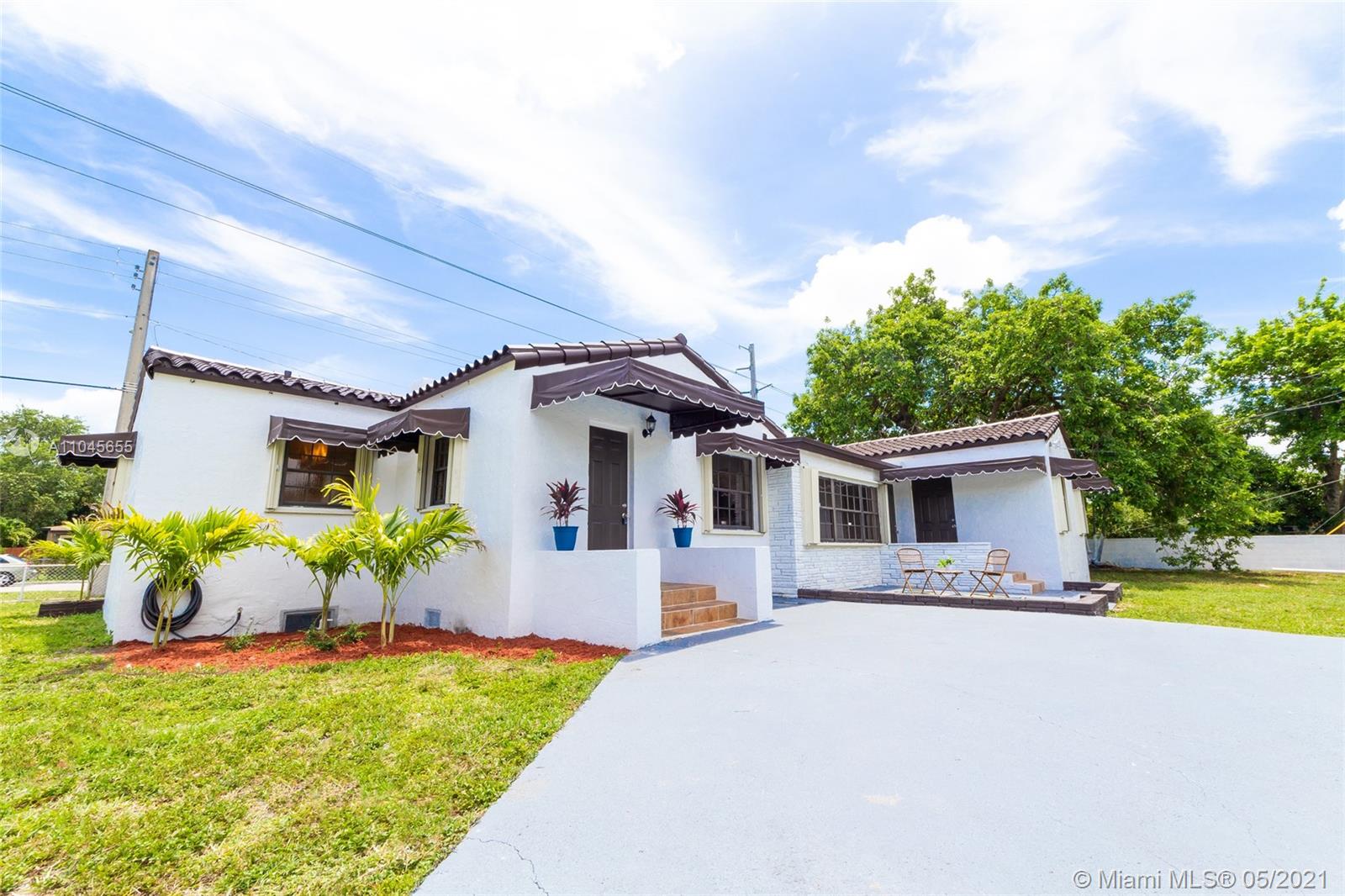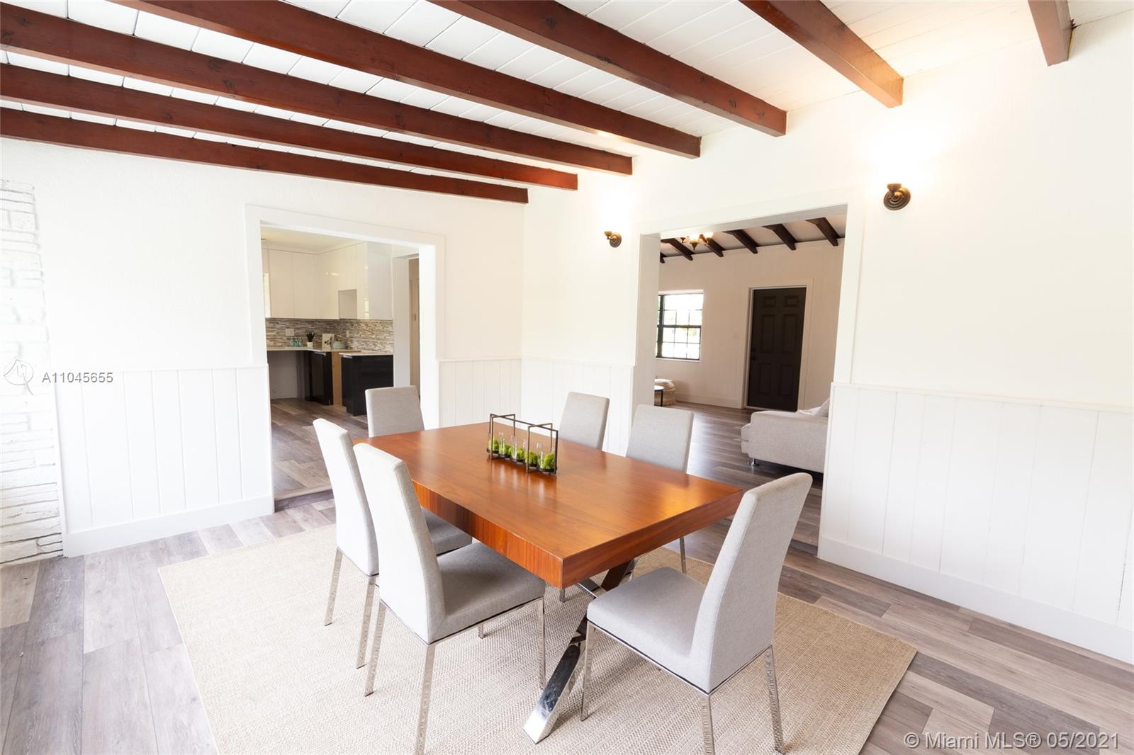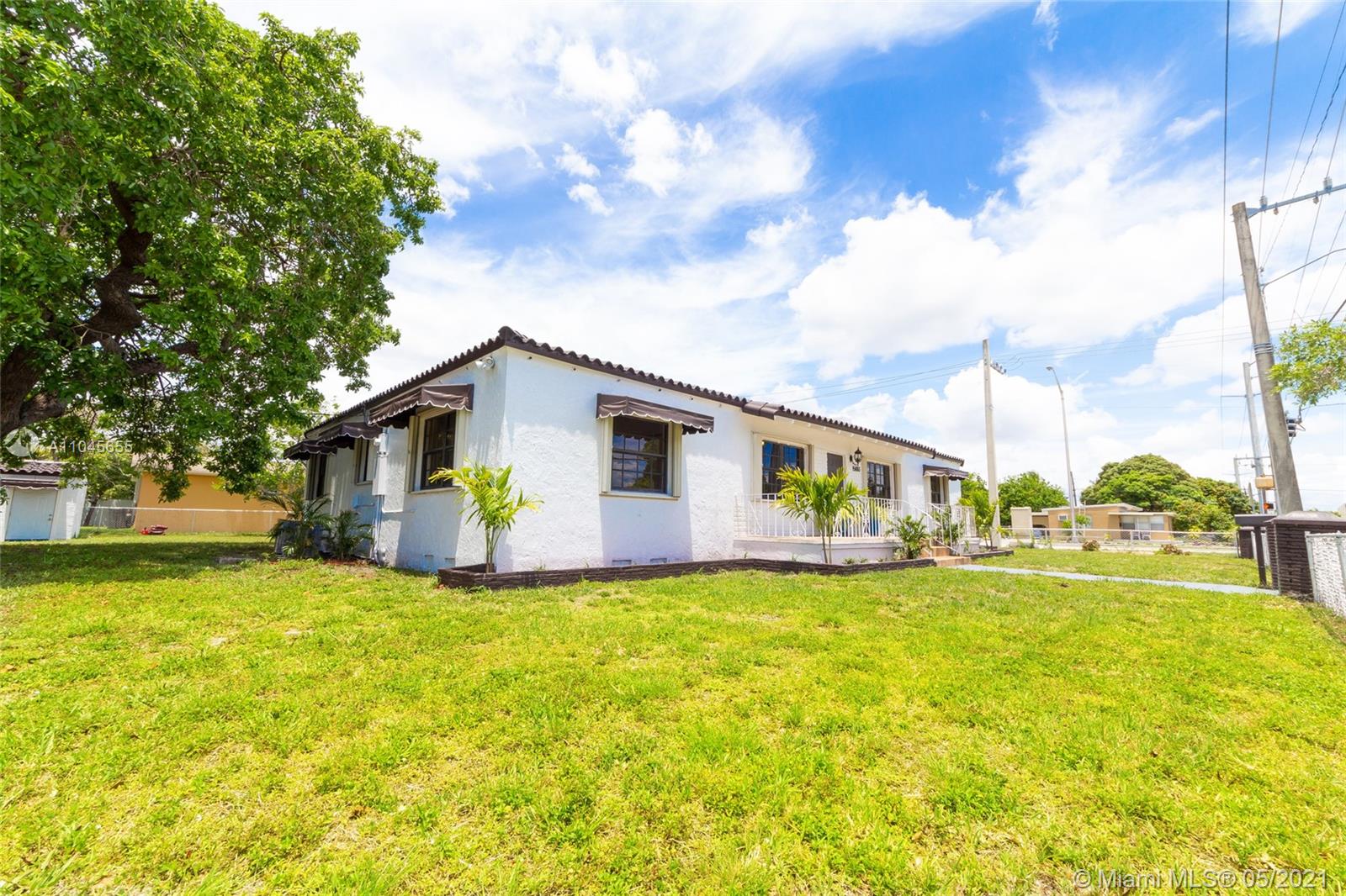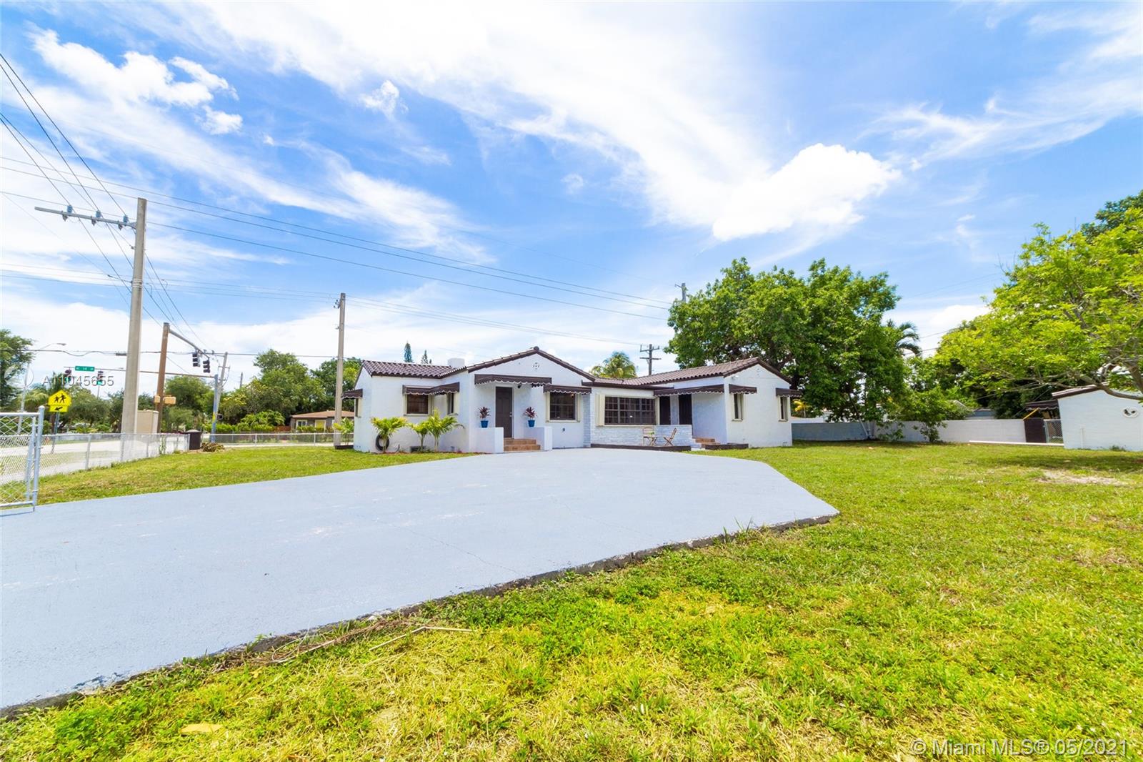 Beautifully renovated single-family home nestled in North Miami Beach situated on a prime corner lot. The home features 3 beds/2 baths and was completely updated including the plumbing and electrical systems. Built in 1948, the home retains some old Florida charm with an original fireplace, stunning exposed beams, brick masonry details, and wood paneling. Modern grey hardwood-style flooring, ultra-wide modern baseboards, and all new fixtures throughout. Contemporary kitchen with quartz countertops, glossy two-toned cabinets, and a mosaic tile backsplash. $5000 seller credit towards new appliances. Enjoy the South Florida lifestyle under a gorgeous avocado tree in the sprawling yard. Plenty of space for a boat and more on the 13,526 sqft. lot. Excellent location surrounded by parks. No HOA!