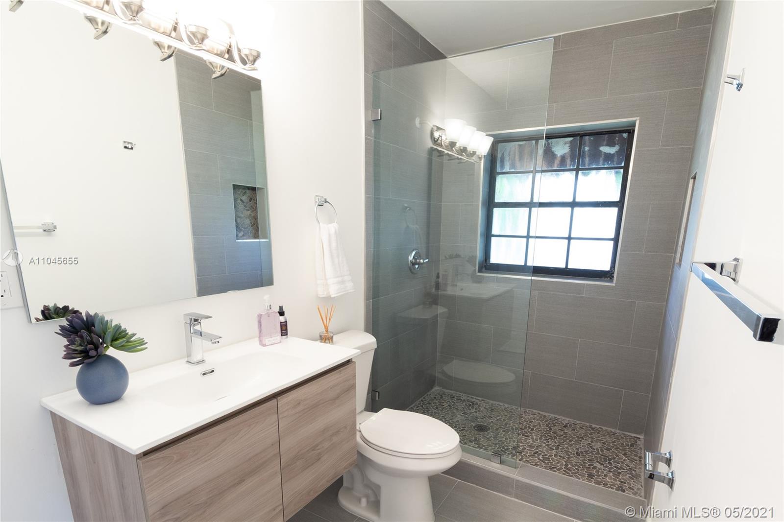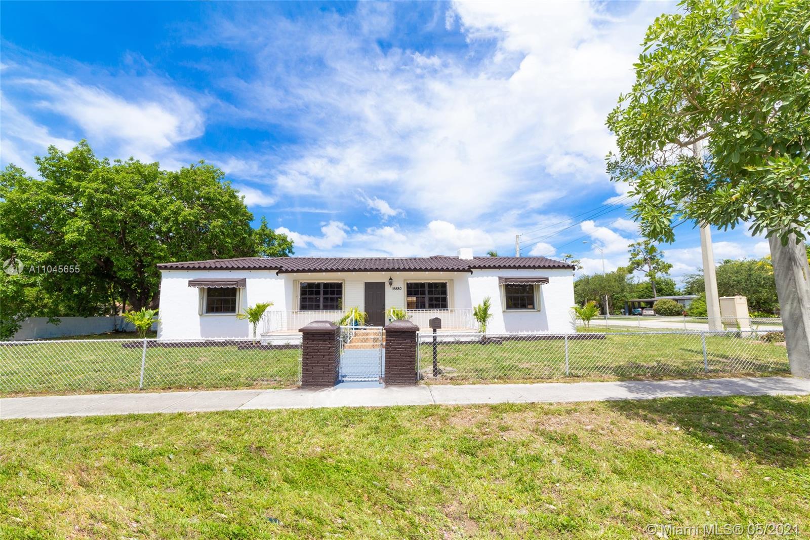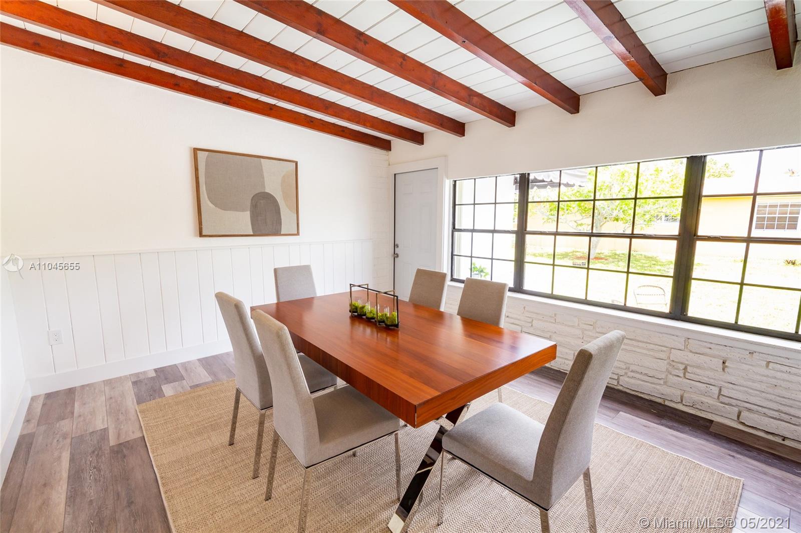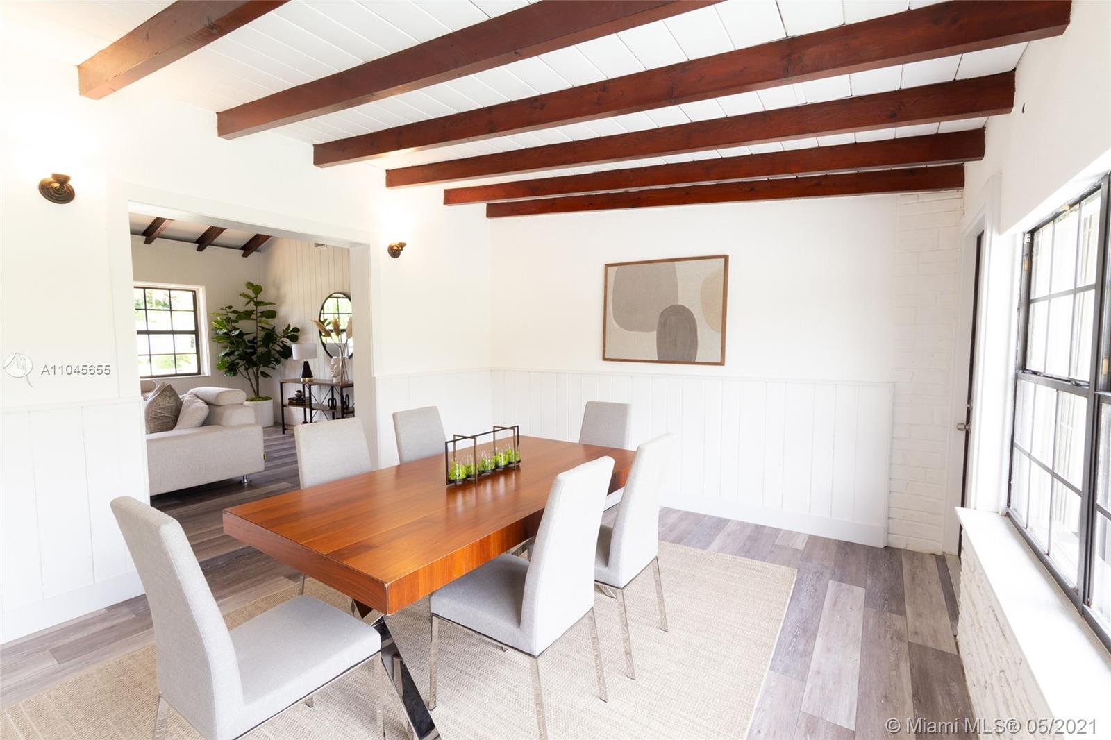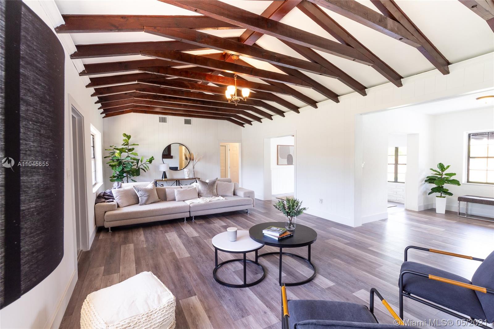 Beautifully renovated single-family home nestled in North Miami Beach situated on a prime corner lot. The home features 3 beds/2 baths and was completely updated including the plumbing and electrical systems. Built in 1948, the home retains some old Florida charm with an original fireplace, stunning exposed beams, brick masonry details, and wood paneling. Modern grey hardwood-style flooring, ultra-wide modern baseboards, and all new fixtures throughout. Contemporary kitchen with quartz countertops, glossy two-toned cabinets, and a mosaic tile backsplash. $5000 seller credit towards new appliances. Enjoy the South Florida lifestyle under a gorgeous avocado tree in the sprawling yard. Plenty of space for a boat and more on the 13,526 sqft. lot. Excellent location surrounded by parks. No HOA!
