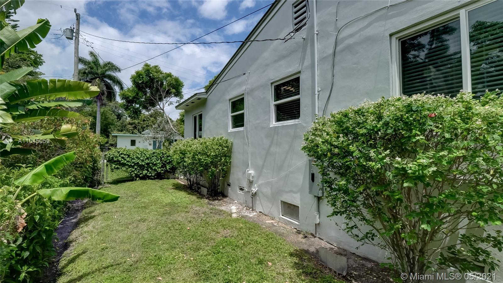 Location, location, location. This Miami Shores mid century home has so much to offer...three bedrooms/three baths with 1,811 s.f. per architectural drawings, beautiful wood floors except in kitchen and family room, updated electric and plumbing, newer aluminum roof, solar panels, air conditioning unit, 10x12 shed to name a few. Garage was just converted to bedroom/bath and laundry room with permits. Centrally located east of Biscayne Boulevard in Miami Shores Village which offers a recreation center, golfing, aquatic center, parks and more. And if all of this is not enough, the property is in flood zone X.