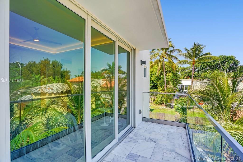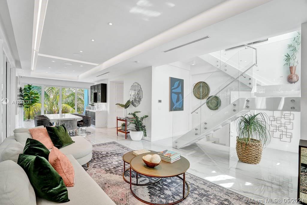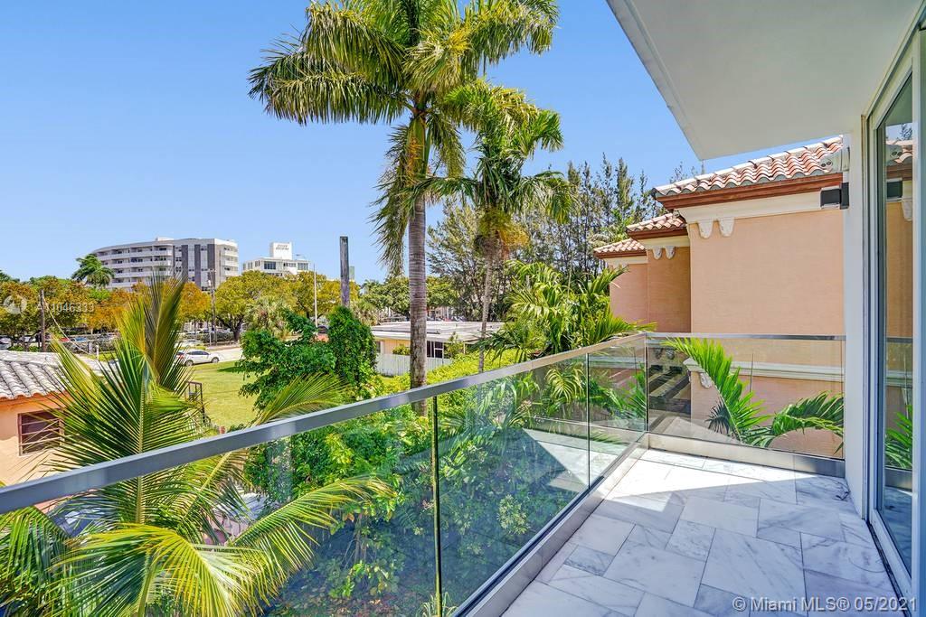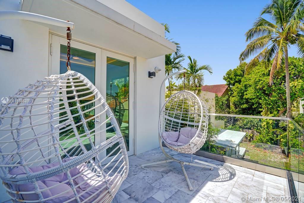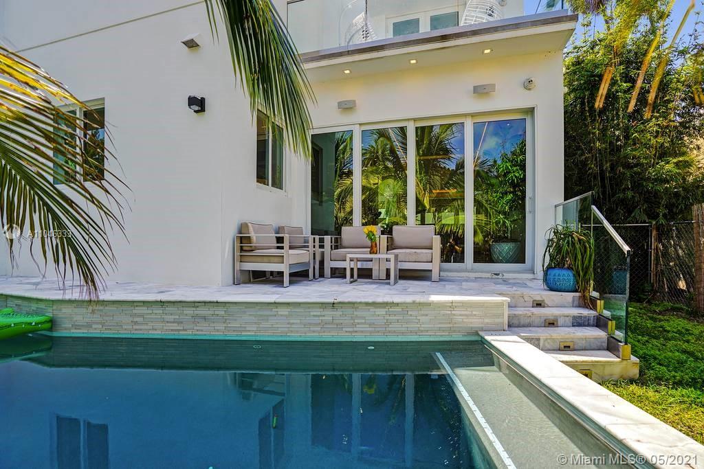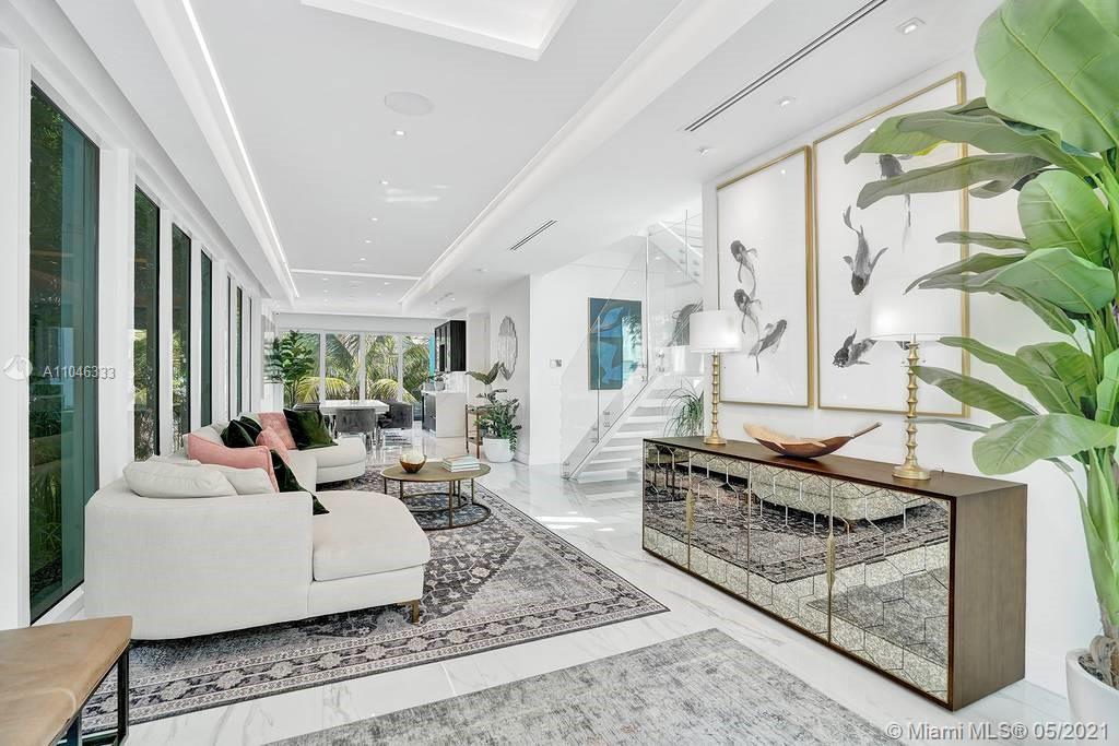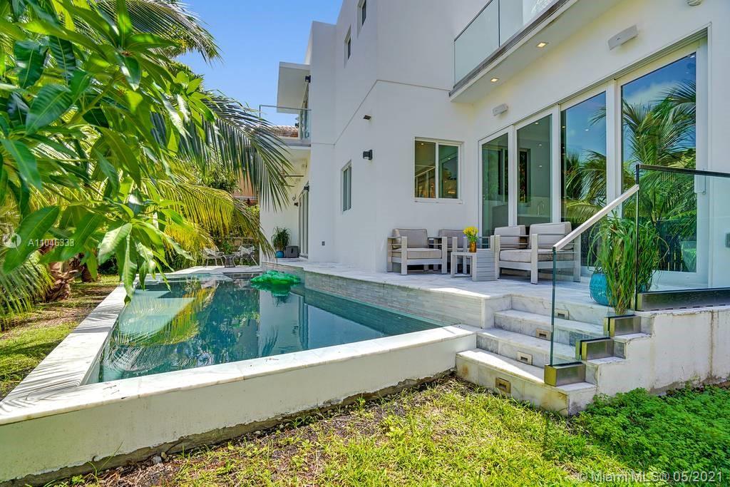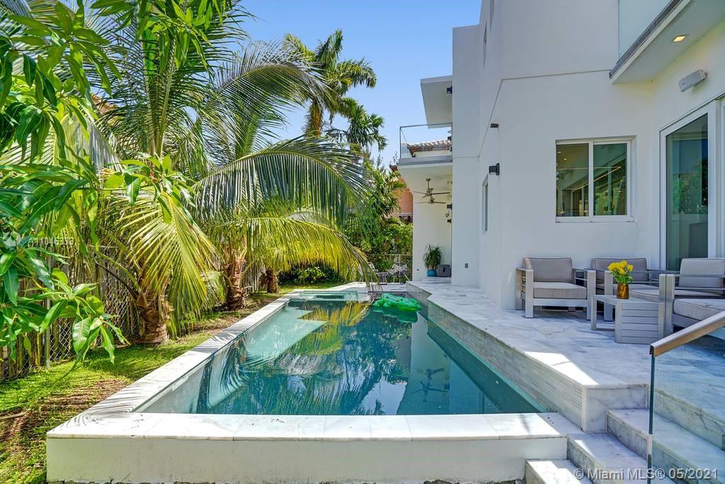 Gorgeous modern single family home in the heart of Miami Beach. The home boasts 5 bedrooms, and 4 bathrooms, including 1 bedroom on the main floor. The home was professionally designed with the most luxurious finishes. A real entertainers dream home. The home offers a true indoor-outdoor lifestyle with sliding doors throughout. The backyard has an elegant pool deck with a long heated pool and spa. The interiors have been finished with high-end appliances and a beautiful staircase. The home has a full smart home technology system, with built-in speakers, cameras throughout, electronic shades enabling the owner to monitor the entire residence remotely. From the bedroom porches you can enjoy breathtaking views of the sunset and partial bay views. Truly a most beautiful home!