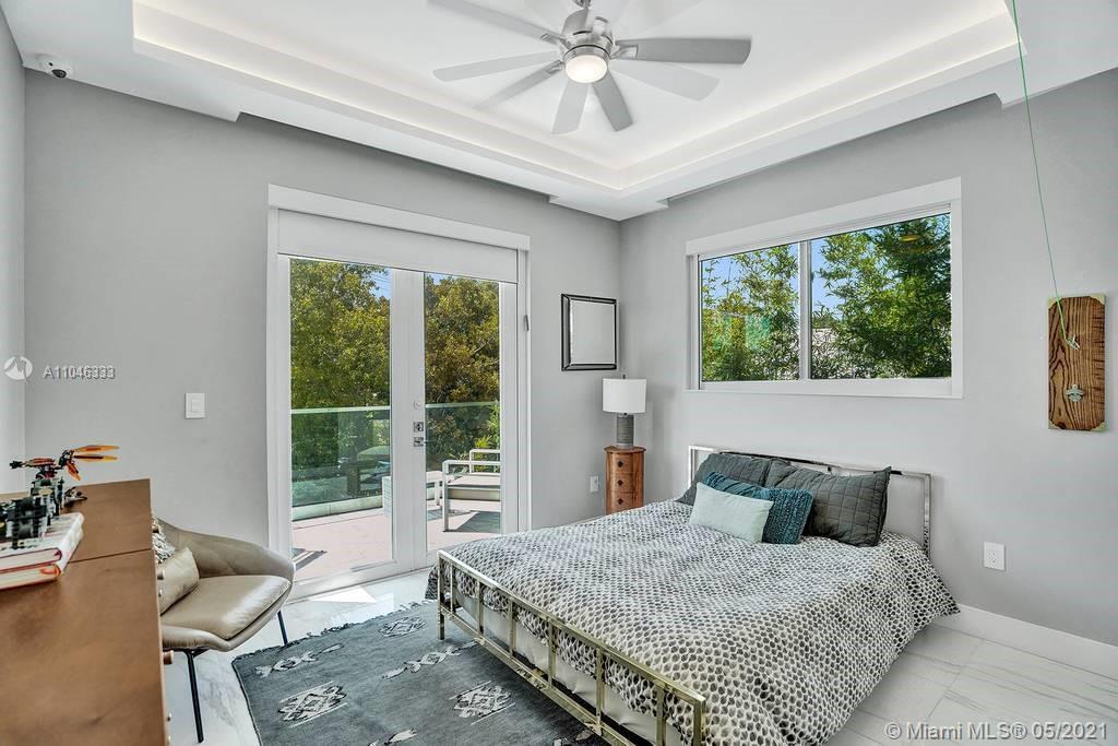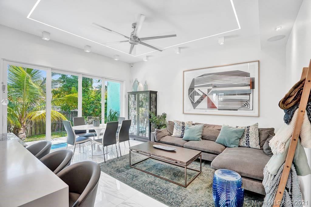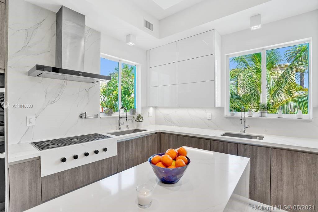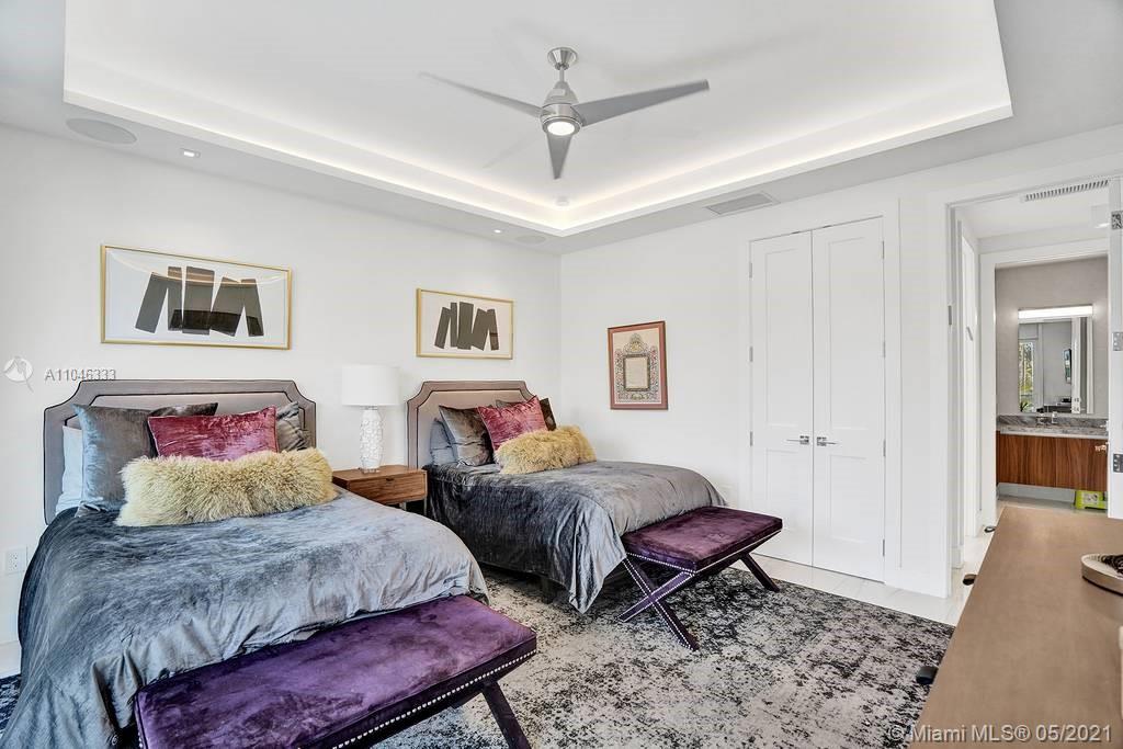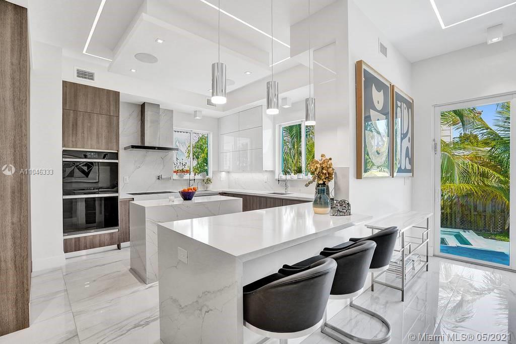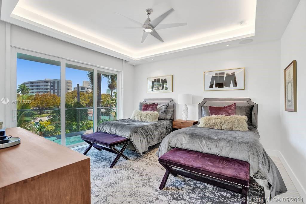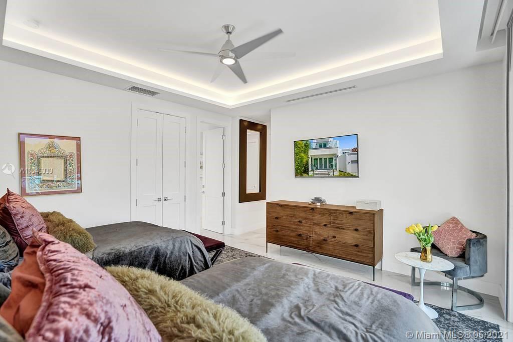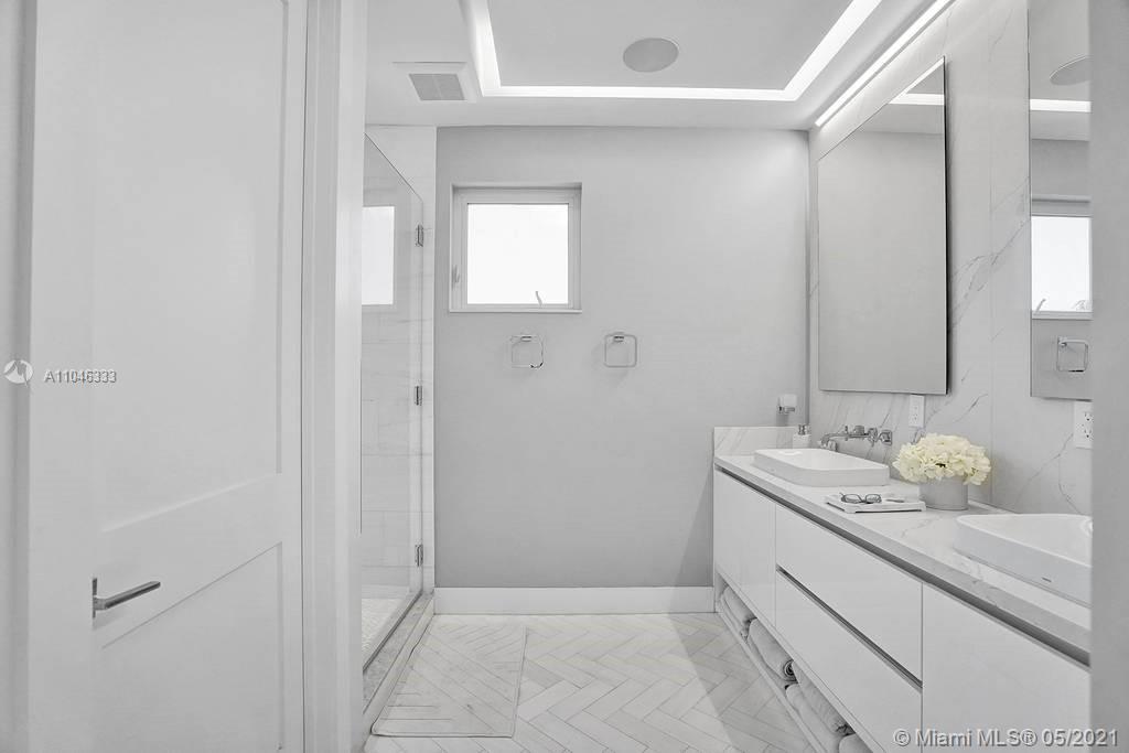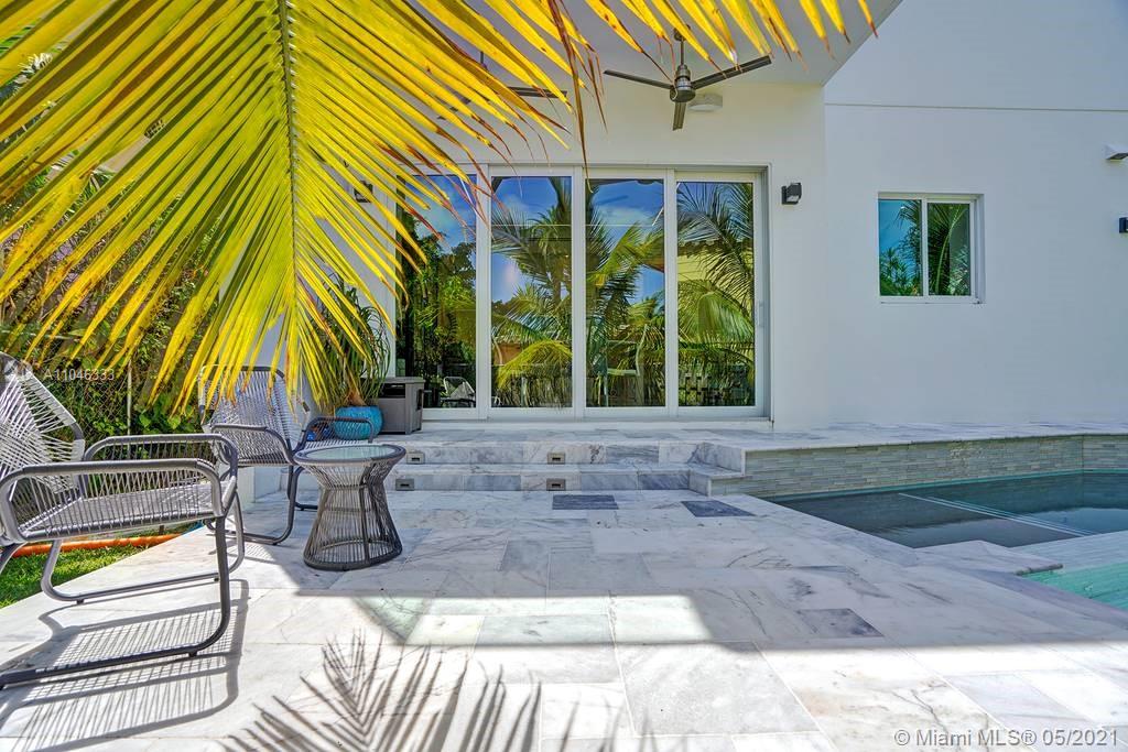 Gorgeous modern single family home in the heart of Miami Beach. The home boasts 5 bedrooms, and 4 bathrooms, including 1 bedroom on the main floor. The home was professionally designed with the most luxurious finishes. A real entertainers dream home. The home offers a true indoor-outdoor lifestyle with sliding doors throughout. The backyard has an elegant pool deck with a long heated pool and spa. The interiors have been finished with high-end appliances and a beautiful staircase. The home has a full smart home technology system, with built-in speakers, cameras throughout, electronic shades enabling the owner to monitor the entire residence remotely. From the bedroom porches you can enjoy breathtaking views of the sunset and partial bay views. Truly a most beautiful home!