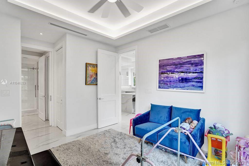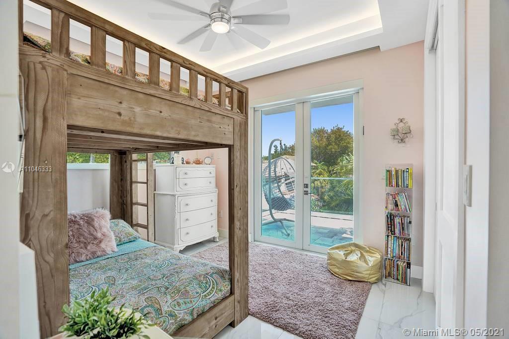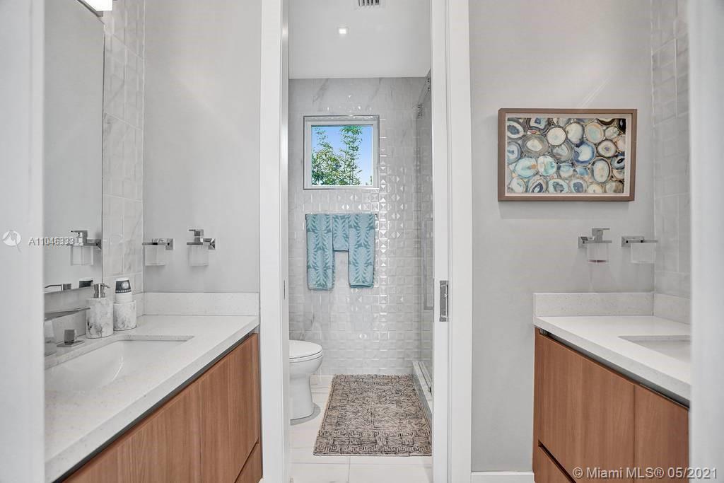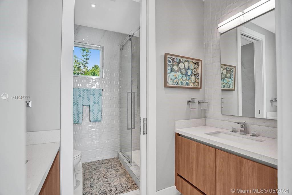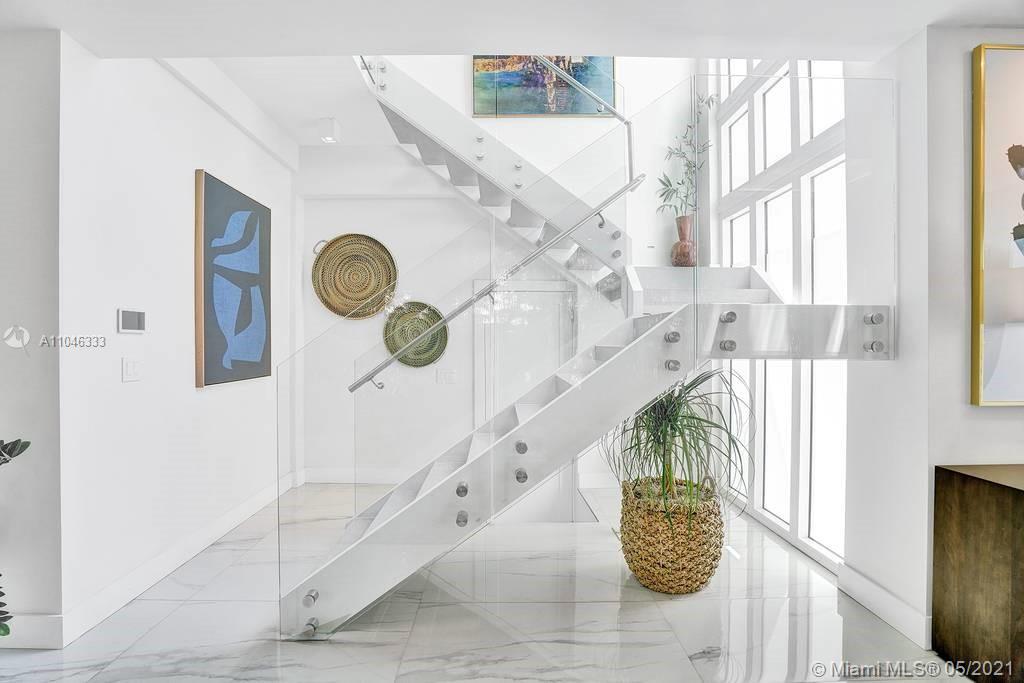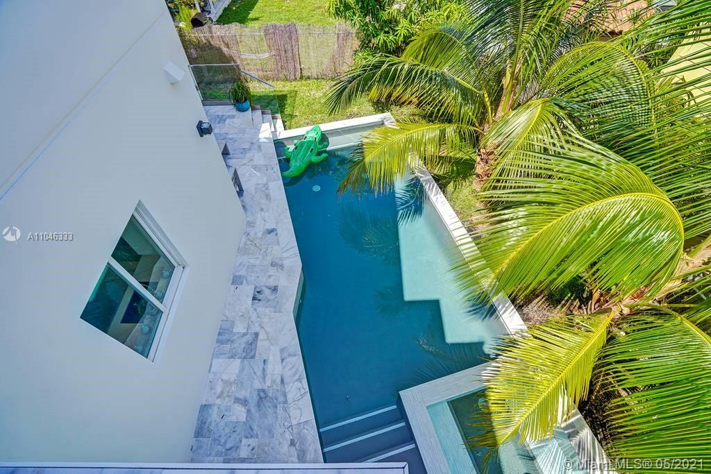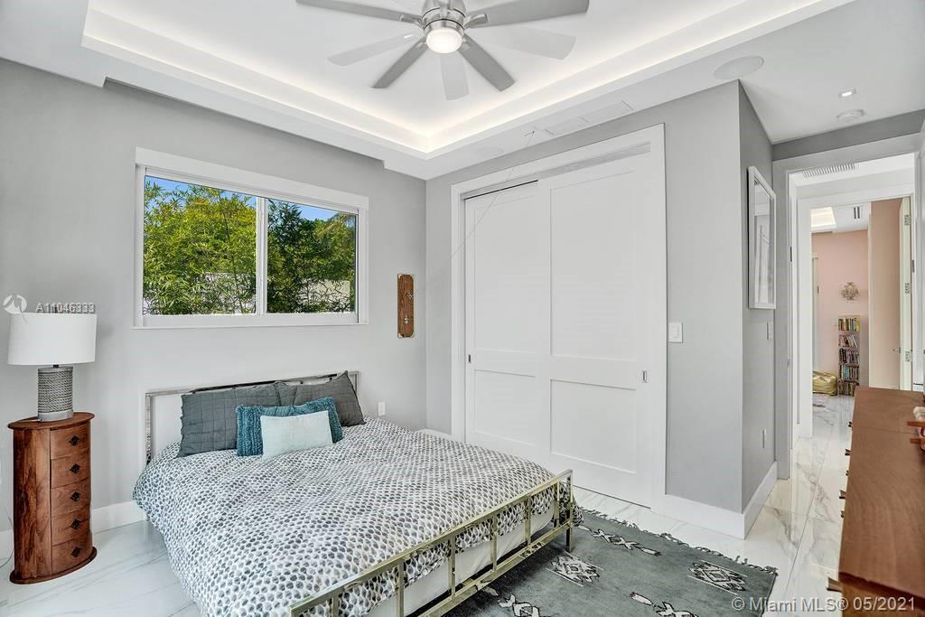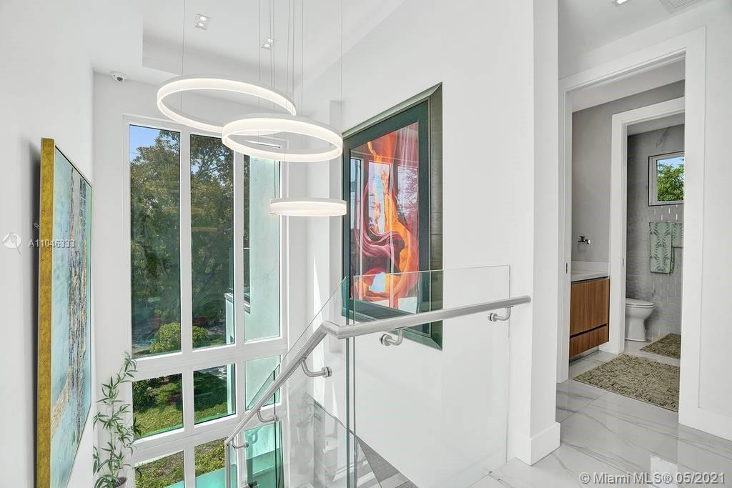 Gorgeous modern single family home in the heart of Miami Beach. The home boasts 5 bedrooms, and 4 bathrooms, including 1 bedroom on the main floor. The home was professionally designed with the most luxurious finishes. A real entertainers dream home. The home offers a true indoor-outdoor lifestyle with sliding doors throughout. The backyard has an elegant pool deck with a long heated pool and spa. The interiors have been finished with high-end appliances and a beautiful staircase. The home has a full smart home technology system, with built-in speakers, cameras throughout, electronic shades enabling the owner to monitor the entire residence remotely. From the bedroom porches you can enjoy breathtaking views of the sunset and partial bay views. Truly a most beautiful home!