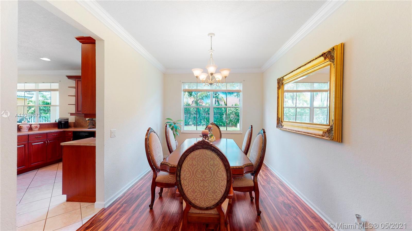 Elegant 5 bedroom Estate home located in the gorgeous community of Savanna!! This home has been meticulously maintained by its original owners. Unique Fuchsia model which offers a guest bedroom and full bathroom in a separate hallway upstairs for privacy. Upstairs impact windows in some rooms. Crown molding and neutral tiles downstairs, premium laminated flooring on stairs, upstairs, and formal living/dining area. Immaculate kitchen with 42" rich cherry wood cabinets/ over-counter range and double oven. Covered porch at entry level and backyard. Oversized lot- great for swimming pool and entertainment. The community of Savanna is truly a resort-style community with an incredible clubhouse, swimming pools, a waterslide, playgrounds, tot lot, basketball, Tennis Courts, and mini golf.