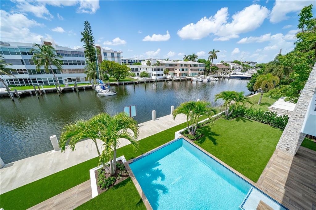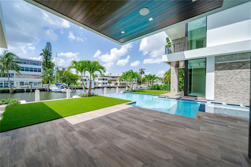 BRAND NEW CONSTRUCTION almost complete in Las Olas Isles!! Modern construction & design by Paterson Project Management beautifully creates today's buyer's preference of glass & white walls contrasted with dark wood floors & stone detailing. The glass throughout is floor to ceiling including the main living area which features a two-story glass window offering a lovely city & water view from the 2nd floor catwalk. The house contains SIX bedrooms (3 Master/VIP suites w/large private balconies/patio)/7.1 baths + office; a superb layout that's manageable but generous. New concrete dock with 90FT of waterfront allows up to a 70FT boat. Ultimate outdoor living with 45FT POOL, 10x10 waterfall spa, & covered summer kitchen. 3 car garage. No fixed bridges; just minutes to Intracoastal & Inlet.