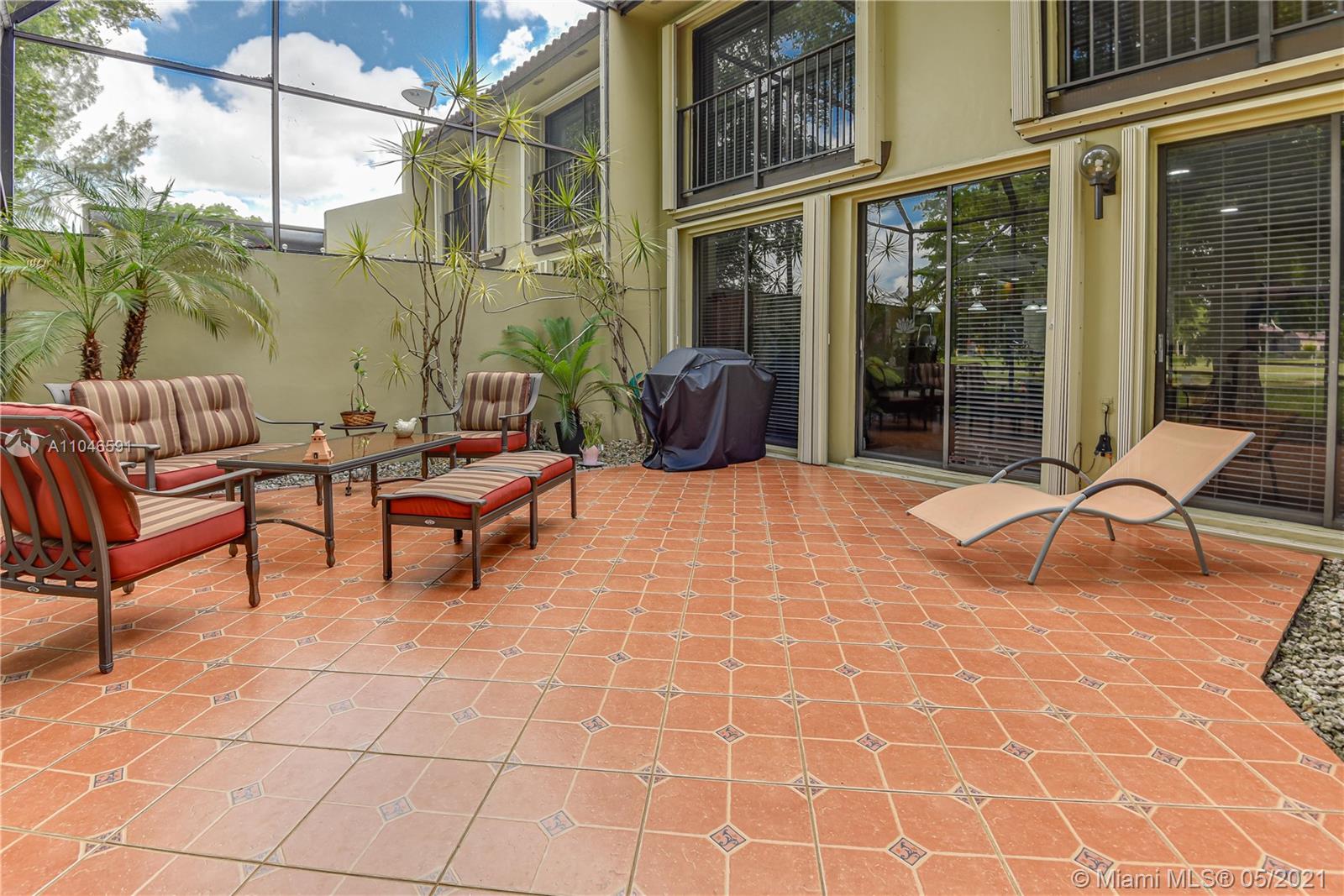 Absolutely gorgeous 2-story townhouse in pristine condition . Fully renovated . Inside a gated 18 holes golf community. Bright and spacious . 2 Bedrooms upstairs + Den : Office space or extra room, with closet, downstairs . 3 full bathrooms . Wood like tile on the first floor and new carpet on the second floor . Opened kitchen with big granite counter tops . Stainless Steel appliances including wine cooler . 2-Cars parking spots. Shutters in all windows . Screened patio with canal and golf view . Extra storage space on garage . 24 Hours Security . Pool . Kids playground . Basketball and tennis courts . Centrally located in Doral, close to A+ schools . Shopping and dinning at walking distance . HOA payment included: Water, cable, exterior, structure, roof insurance & maintenance
