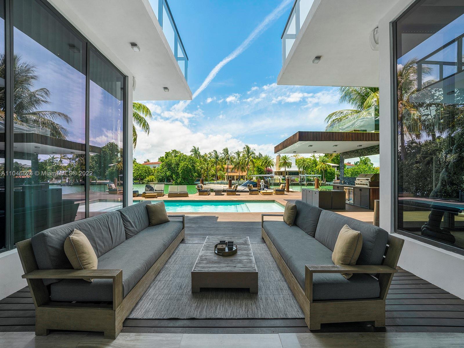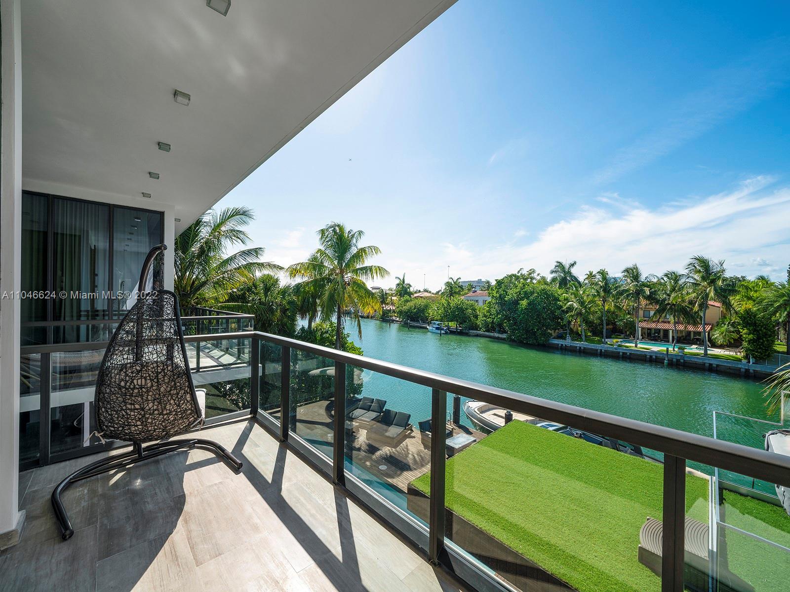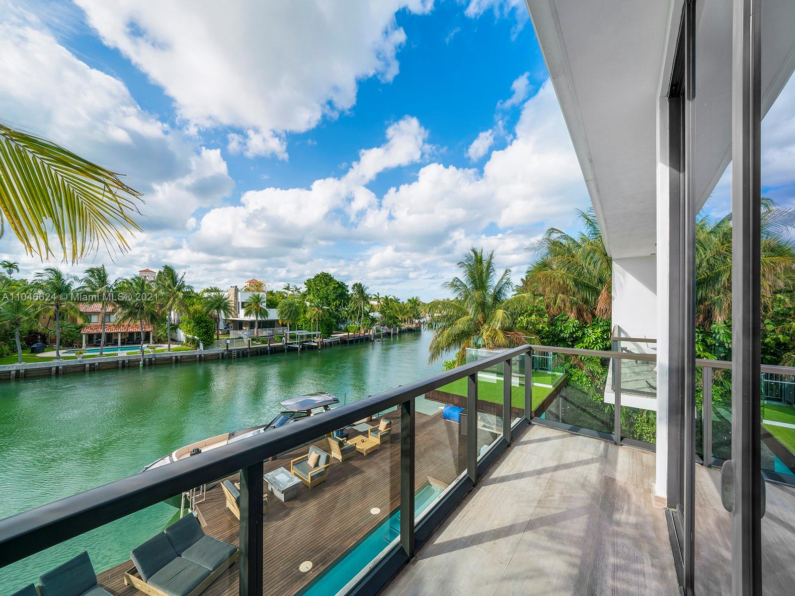 This exquisite contemporary residence, Designed by well-known Cheoff Levy Fishman, was designed to take advantage of its spectacular setting, with the Biscayne Waterway, allowing easy bay access, in the rear, and the Miami Beach Golf Club across the street. Designed as a home for entertaining, indoor and outdoor amenities abound, such as the living room with its 28 foot ceilings, the large waterfront dining room, the chef’s kitchen with Wolf and Subzero appliances and rich marble countertops, the family room in its own pavilion, and the waterfront pool with baja shelf and adjacent summer kitchen, set within a huge ipe wood deck. Upstairs, a large catwalk loft opens to a spectacular master suite with two very large terraces, two dressing rooms, and two water closets.