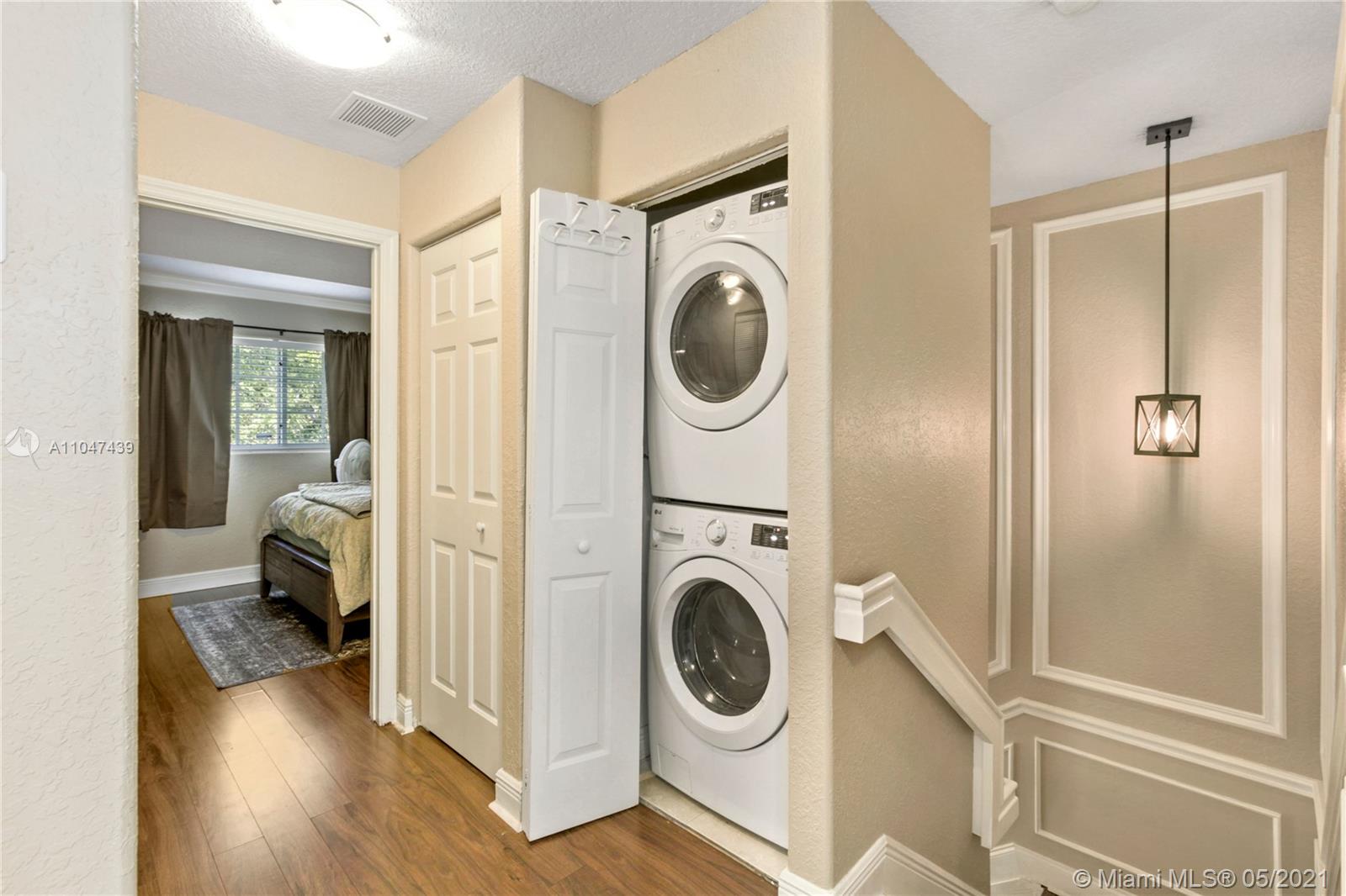 Charming and inviting corner unit townhome, ready for a new owner. Upgraded, with beautiful marble flooring in the first level, granite countertops in the kitchen and bathroom, elegant wood-like laminate flooring from the stairwell to the second level. You'll be delighted by all the natural light this 3 bedroom 2.5 baths unit displays. This freshly painted home offers a one car garage, a spacious patio, a new A/C unit, new full size washer and dryer, tankless water heater, crown molding, and more. All just ready for you. Very convenient located, close to restaurants, shopping centers and major roads.