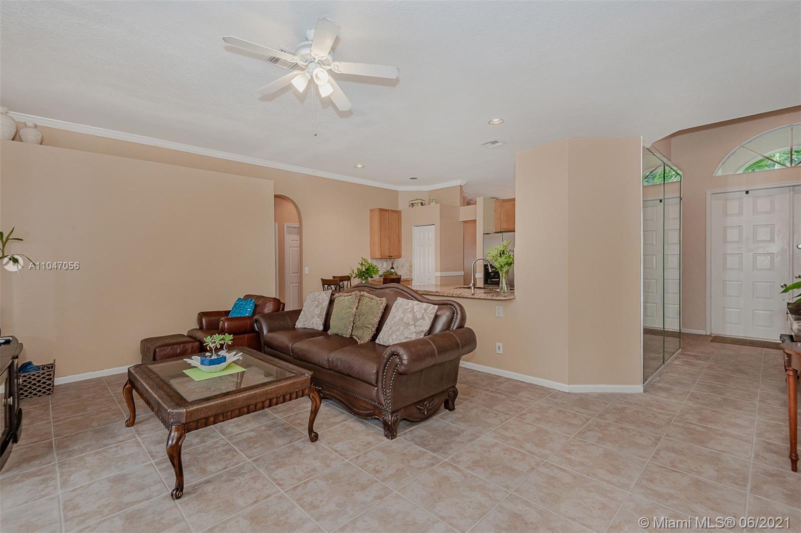 Beautiful corner lot with a new roof, pool fenced, lots of fruit trees, and orchid plants in Waterside of Coral Creek. Open and Spacious Living Areas Offer Vaulted Ceilings, crown molding, 2 car garage, Hurricane shutters, irrigation system, security system hookup and circular driveway. Living Areas Have VIEW to the patio, ¼ WATERVIEW and pool. Split Bedroom Floor Plan with Separate Living, Family and Formal Dining Room. Kitchen Offers, Appliances with Granite Counter Tops. An Eating Nook and Pantry.4 Bed Rooms,2 1/2 Baths, Double Sink, roman Tub, double flush toilets, Separate Shower, Closet. Laundry room and stainless steel appliances. Freshly painted. Low hoa fee $91 quarterly. As IS Sale. DU approval. Showing from 1pm till 7:pm. Bring in Highest and the BEST offer