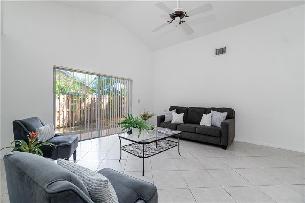 Beautiful home in Sawgrass Estates. This Bright and Spacious 3 BR, 2 Full Baths, comes with recently renovated bathrooms and kitchen. Remodeled kitchen with all Stainless Steel Appliances & a gas range stove. Vaulted Ceilings. Large Owner's Suite with Spacious Walk-In Closet, a Roomy Bathroom with Separated Shower & Soaking Tub. All Ceilings with Know Down Textured, Diamond laid-out Tile floors throughout, Impact Garage Door with wifi accessibility. Newer Gas-Water-Heater. Nice size fenced backyard, perfect for entertaining or family BBQs. Close to Community Clubhouse Pool/Jacuzzi & Playground. Well maintained Community is Non-Gated, Low HOA fees $60 a month. Desirable Location, Easy access to Highways, Sawgrass Mall, BB&T Center, School, and Parks. You will Love This Home.