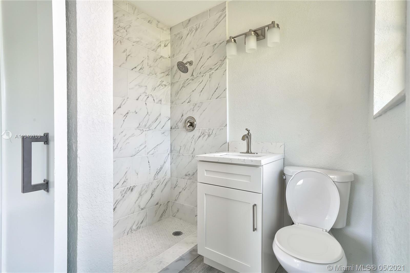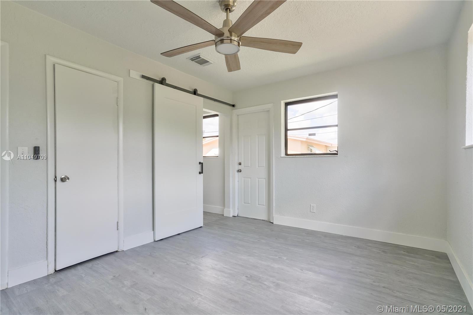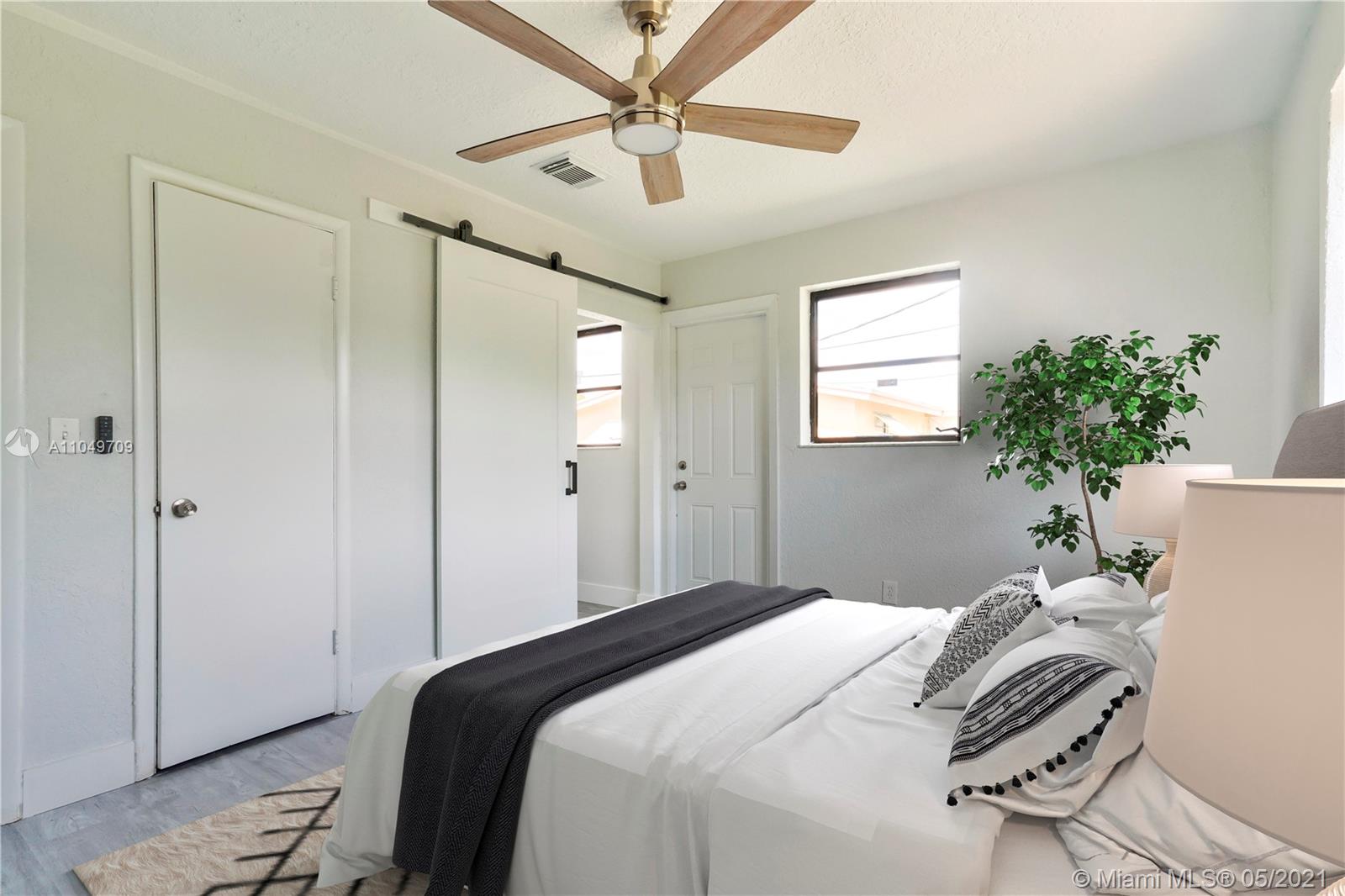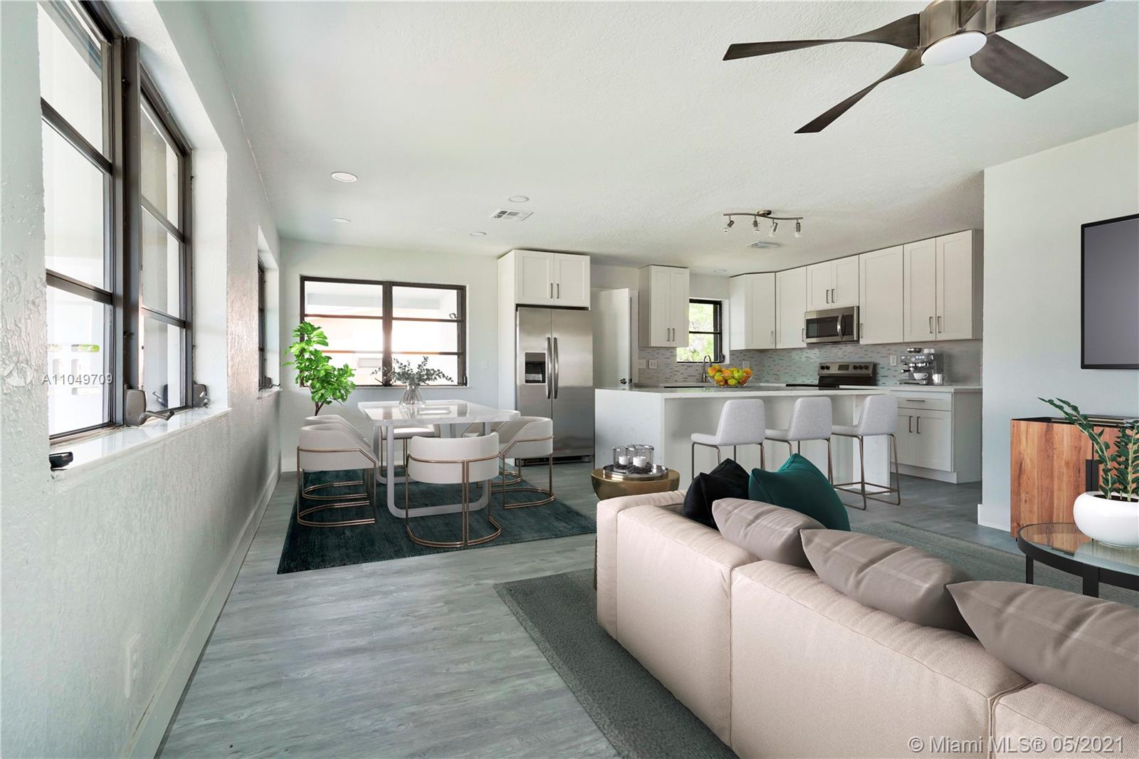 This SFH has been totally remodeled with high end finishes. All new Vinyl Plank Flooring. New Frigidaire Full Set Stainless Steal Appliance Package with Ice Maker. Beautiful new Carrera Quartz Countertops with Carrera Waterfall Island. European Shaker White Cabinets with additional storage. Brand New AC System. Guest bath with all new tile work, trim, flooring, and double vanity with matching Carrera Quartz to the kitchen. Brand new master Shower with matching Carrera Quartz vanity top. Fresh paint inside and out. Brand new Sod in front yard. With full price offer, seller will have all new Sod planted in back yard as well. This house also features Solar Panels that are paid in full. FPL projects a $9.00 electric bill per month. Existing Roof certified for 10 years of life. Will Sell FAST!!