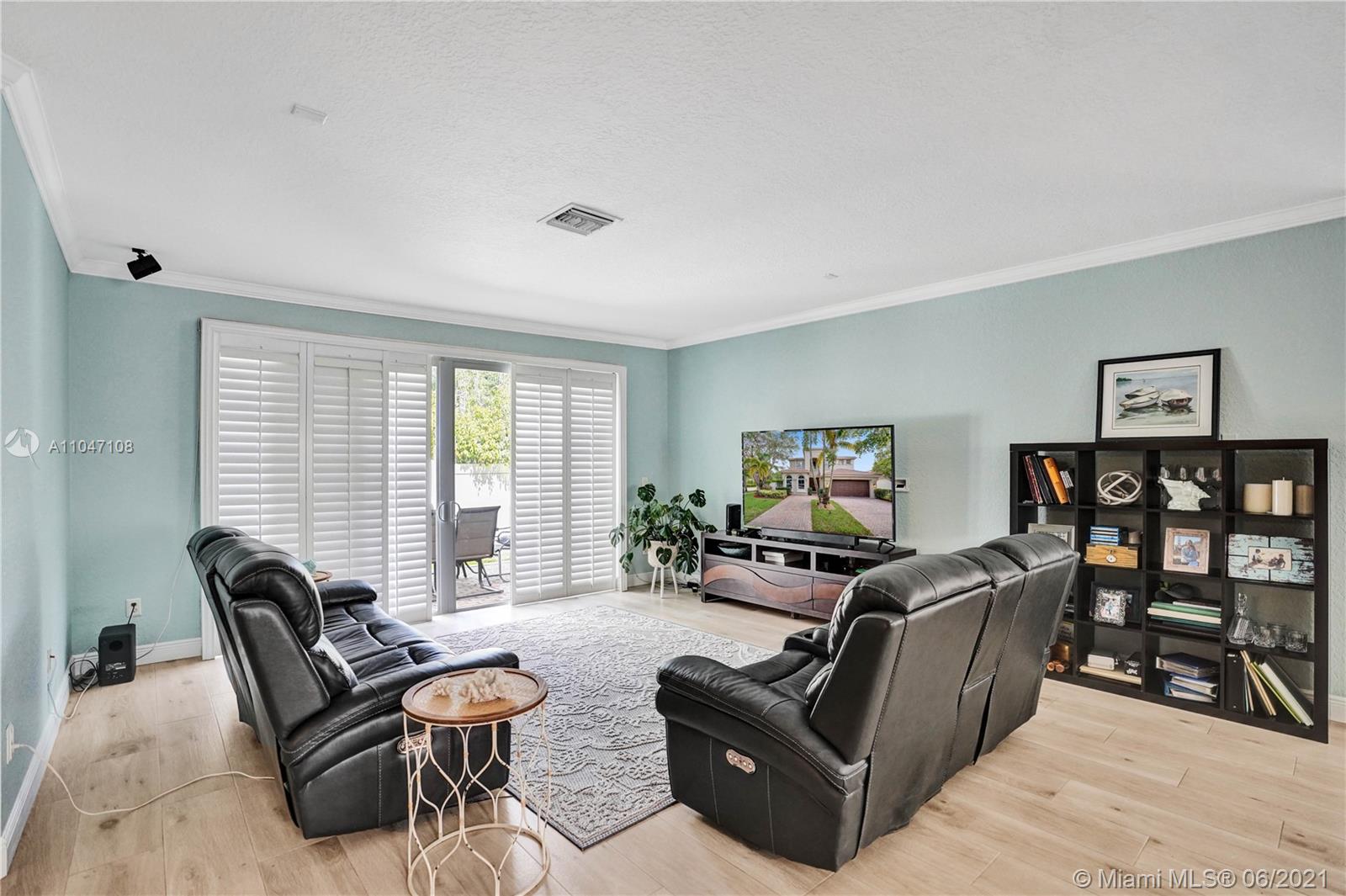 Stunning upgraded pool home in desirable Riviera Isles! 5 bed plus den/office. Impeccable home with amazing natural light. Open floor plan with large social areas. Gourmet kitchen with center island and newer stainless steel appliances. Hardwood flooring on the ground floor and newer ceramic tile on staircase and landing. Large master suite with sitting area and huge California walk-in closet. Laundry room on the second floor. Upgraded bathrooms, crown molding, recessed lights, elegant light fixtures, plantation shutters, accordion shutters second floor, sliding doors and master suite window are impact, fresh interior paint. Gorgeous fenced patio with custom waterfall pool, summer kitchen & professional landscaping, perfect for entertaining! Resort style clubhouse with lots of amenities.