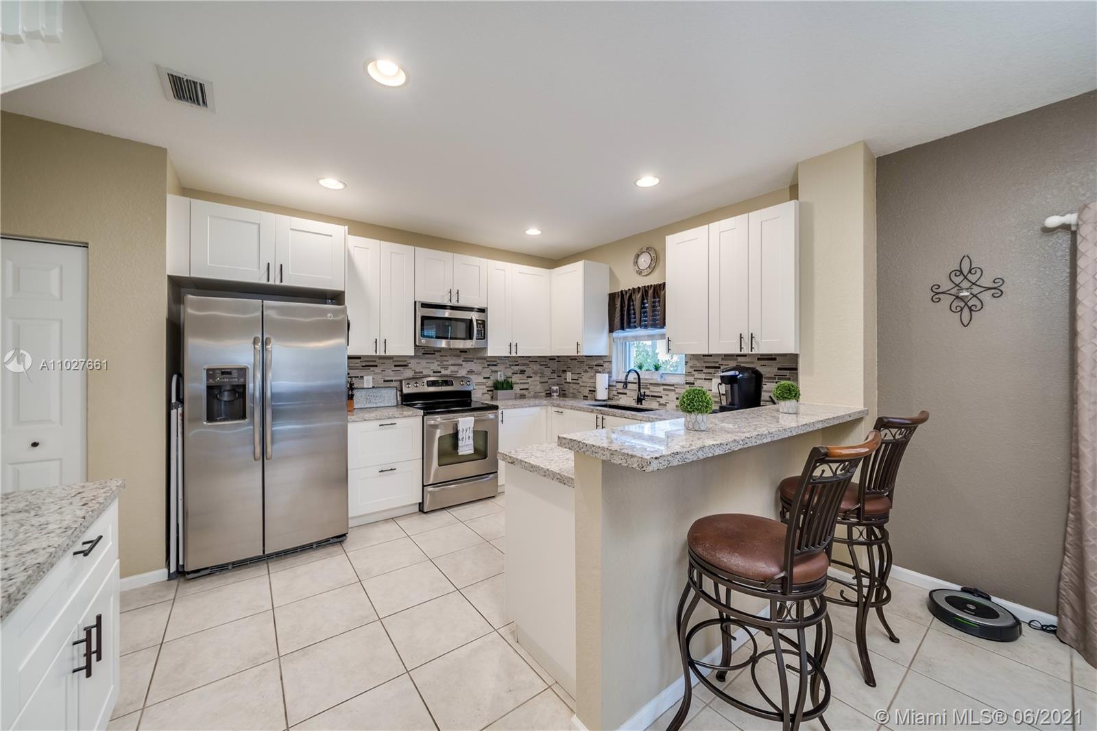A MUST SEE!!! Absolutely gorgeous single family home in desirable gated community of Viscaya. Immaculate conditions 3 bedroom, 3 bathroom with 1 bedroom on ground floor, has everything you have been looking for! This home boast spacious living areas with open floor plan. Premium corner lot. Remodeled kitchen 2018, Granite counter tops, SS appliances. Great quality laminated floors, full impact windows, plus full accordion shutters. Built in closets. Whole house wired for CAT 5. Great schools. Great neighborhood. HOA includes, lawn, cable, security service, pool, gym, tennis, and common grounds.