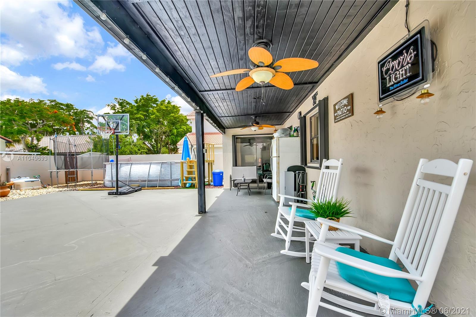 This Moors development home built in 1985 has an exceptional blend of modern and functional living spaces. Highlights include: porcelain tiles on the ground floor, a touch of laminate wood flooring on the second story and updated tiled bathrooms. This desired home is being sold with newer appliances, updated cabinets, a full size outdoor trampoline and above ground pool. This eye catching property located in Hialeah features an interior/exterior fresh coat of paint; an outdoor concrete slab in the backyard for grilling/entertainment. Accordion Style Hurricane Shutters have been installed on all doors and windows, with a roof that’s just shy of 5 years old. In addition, the garage has been partially converted into a storage/laundry room.