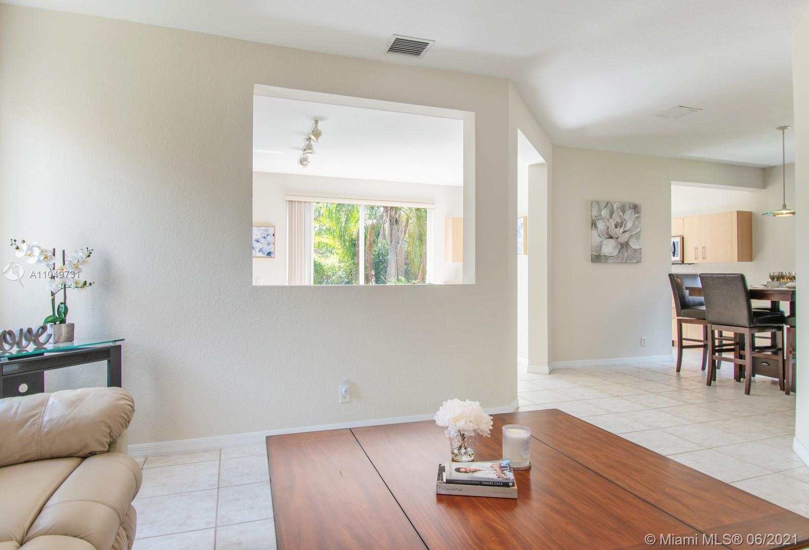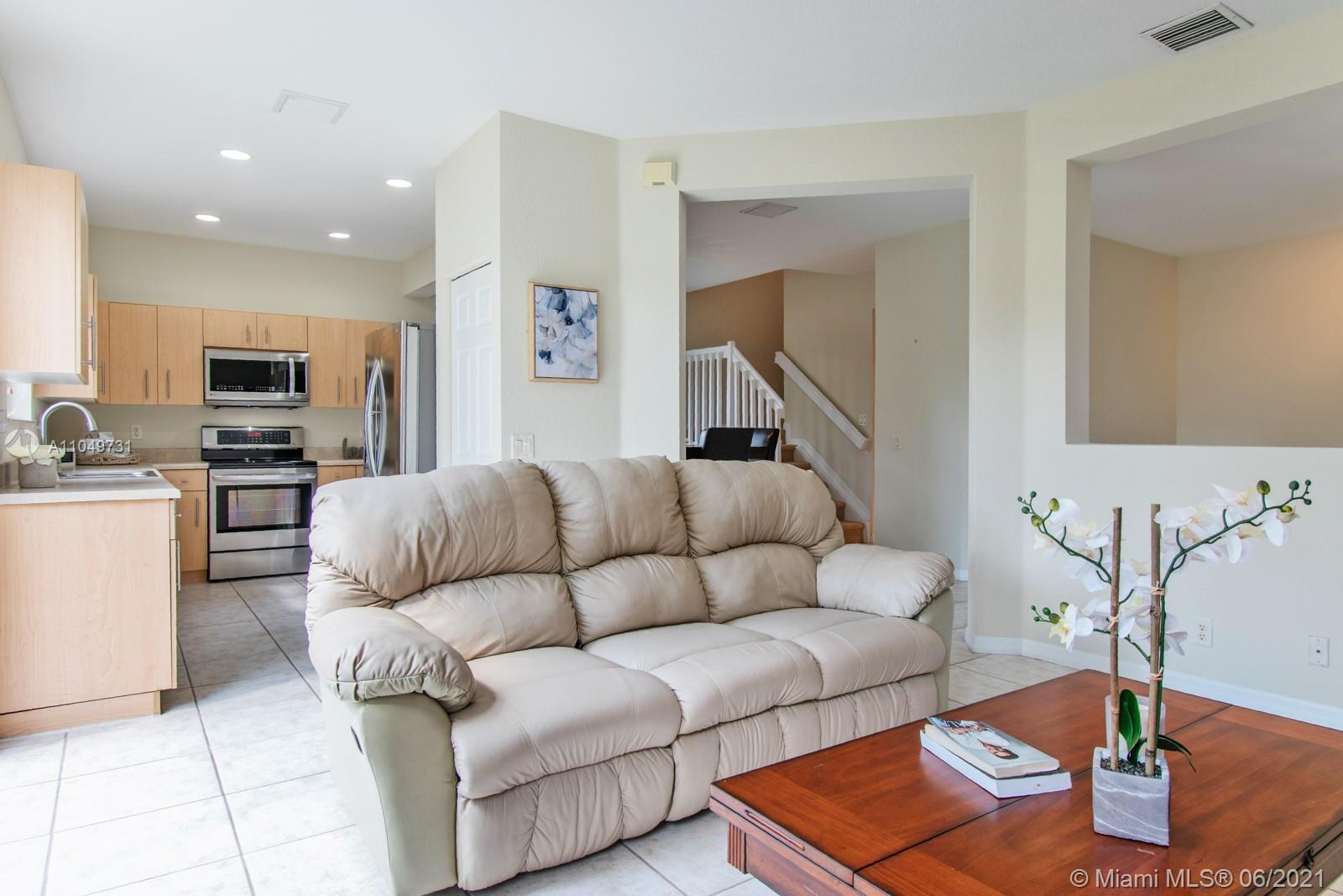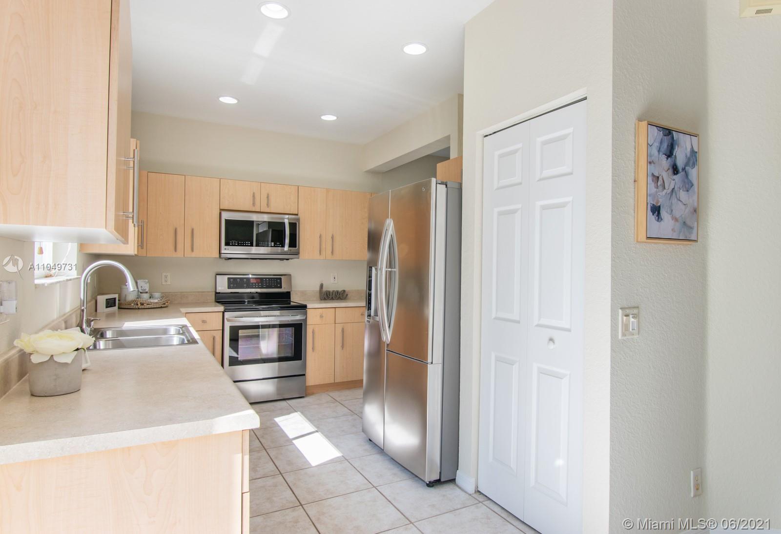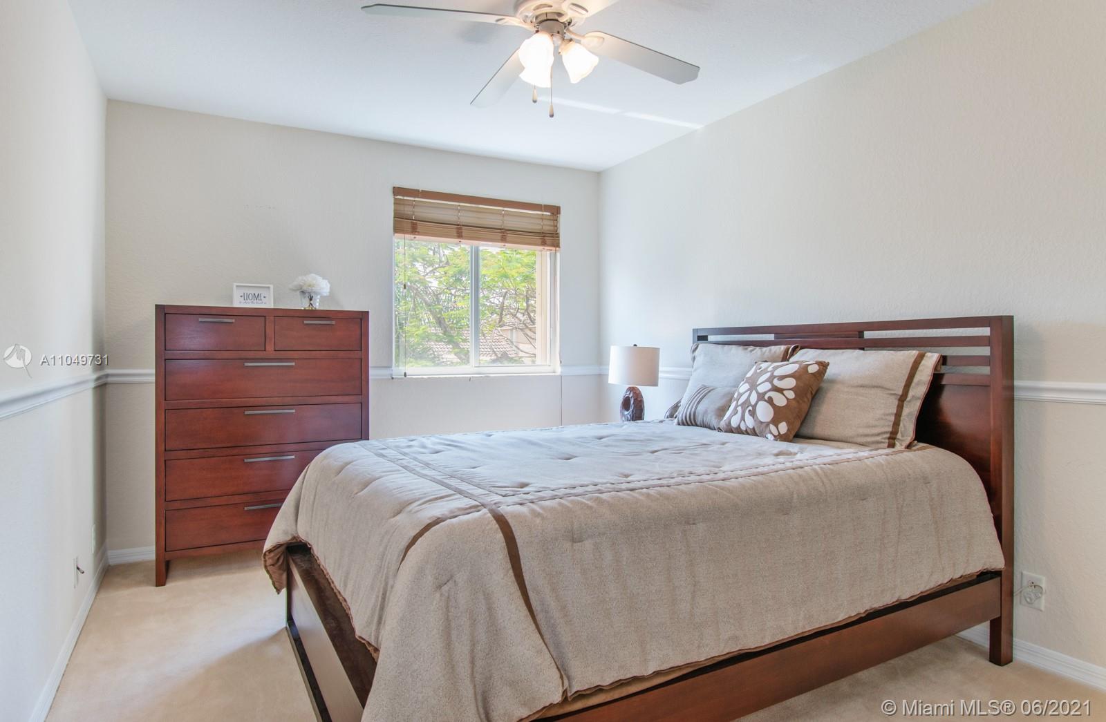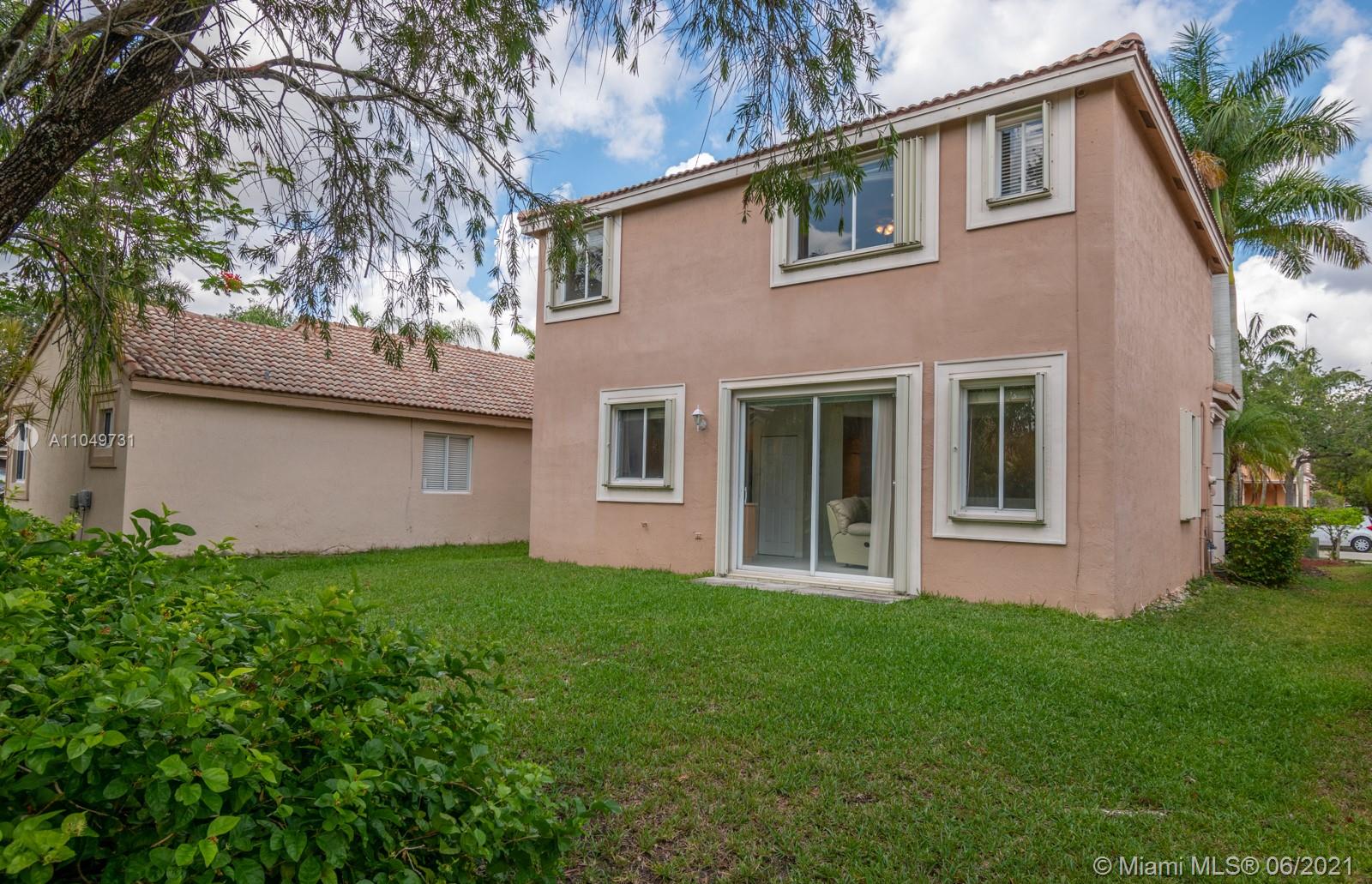 Welcoming and well maintained, 2-story home and features 3 ample bedrooms, 2.5 bathrooms, and a 2-car garage on a generous lot. Imagine living surrounded by this abundant natural light. The home interior is complete with ceramic tiles on 1st floor & carpet on 2nd floor. Accordion shutters & impact doors. New LG Suite S/S appliances make the house practical and beautiful. Amazing recreational facilities in the community: lap pool, resort pool, waterslide, kiddy & baby pools, miniature golf, multi-purpose field, roller hockey ring basketball court will certainly keep your family healthy and entertained. Weston’s A+ rated schools are recognized state-wide. Commercial plaza just north of this guard-gated community is a convenient destination for your daily needs. Come and see it for yourself.