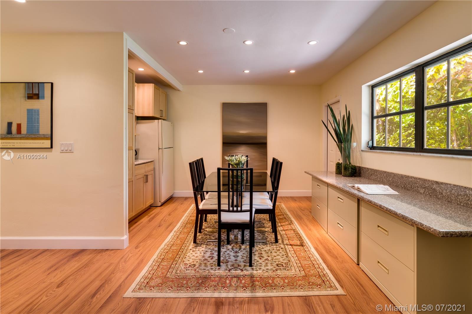 This highly sought-after Coconut Grove address is the location of this beautiful 5-bedroom home with more versatility than can be imagined. It provides a near perfect balance of living and working spaces. All the bedrooms are oversized with generous closets. The main suite has both a lavish, remodeled bath as well as a bonus room which can serve as a gym, studio or office. The elegant living room with its classic fireplace adjoins a remodeled kitchen and dining area that is the heart of the home. A generous in-law suite, office and family room provides additional room for everyone to live, work and play. The ideal U-shape floorplan provides a view of the sparkling pool from almost every room in the house. Located in Flood Zone X, no flood insurance is required. A Very Special Home.