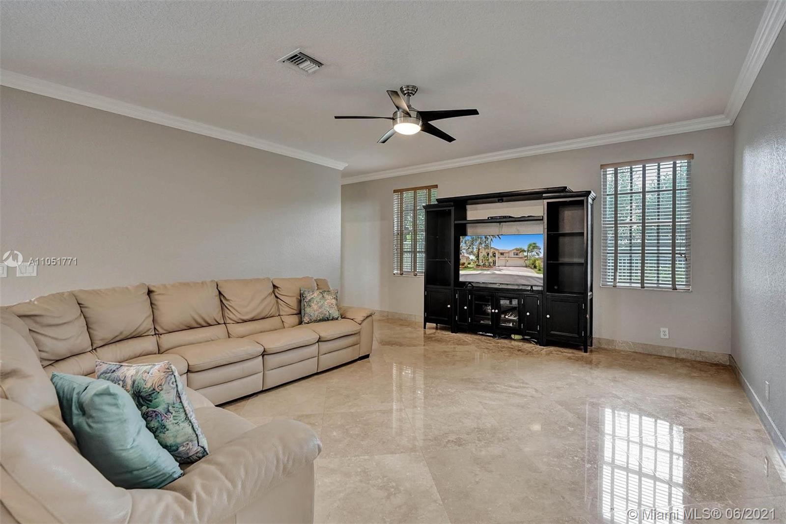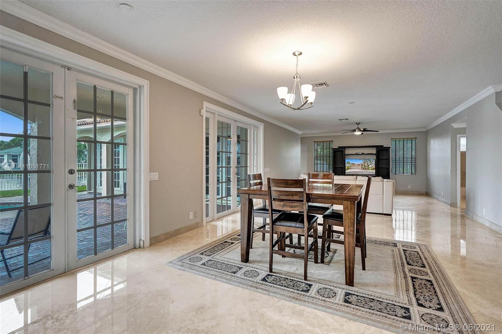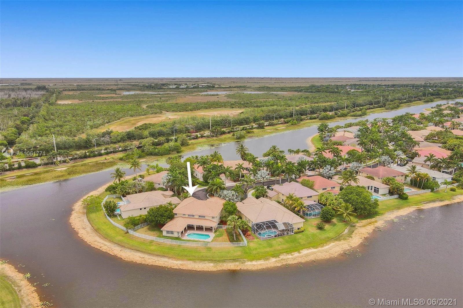 Looking for an expansive 15,000+ cul de sac lot with endless lake views, Popular two-story home with five spacious bedrooms plus an office and playroom with five full baths. Meticulously maintained with marble floors throughout living areas. Addition of full bedroom, playroom, and cabana bath. Wood kitchen cabinets with Stainless Steel appliances and granite countertops. French doors to the private pool and paver patio, fully fenced. Additional den/office attached to the owner's bedroom. Neutral decor throughout with fresh paint. One of the largest lots in Hunters Pointe. Partial impact and accordion protection.