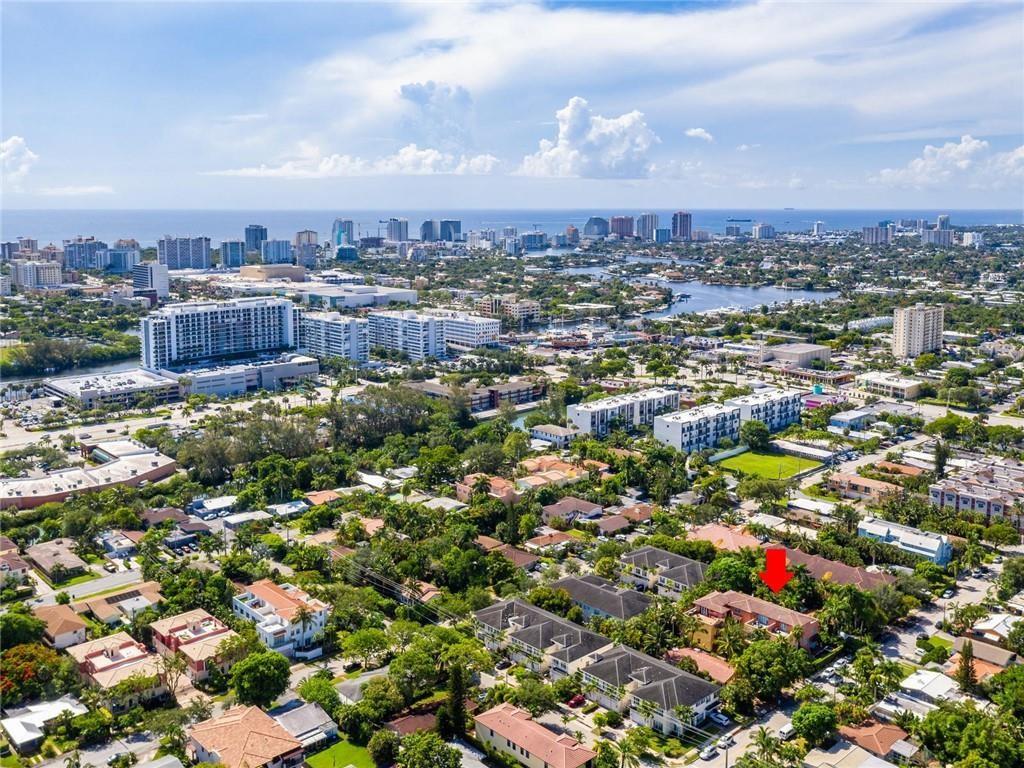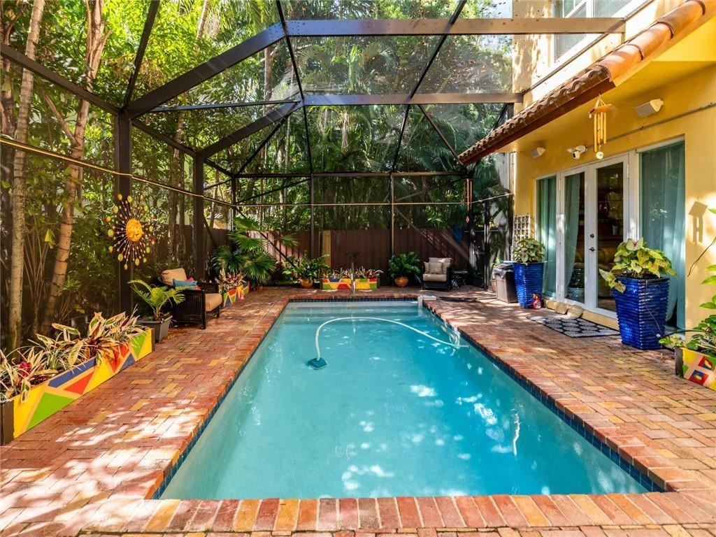 This spacious 3 bedroom 3.5 bath townhome located in the heart of Fort Lauderdale boasts an oversized 3 story open feel of a single family home with a private fenced & screened in heated salt pool. The 1st floor features an open kitchen with a custom bar overlooking living & dining room. Powder room & 2 car garage. French doors & windows for lots of natural light. All bedrooms with walk in closets are on the 2nd floor. An elevator brings you from 1st floor to 2nd. 3rd floor family room with a full bath easily converts into a 4th bedroom. Large roof top terrace with jacuzzi where you can enjoy the beautiful skylight city views of downtown. Full house diesel generator. Security cameras. Selling furnished. Close to beaches, Las Olas, restaurants & Ft Lauderdale Int'l Airport. Won't last!!