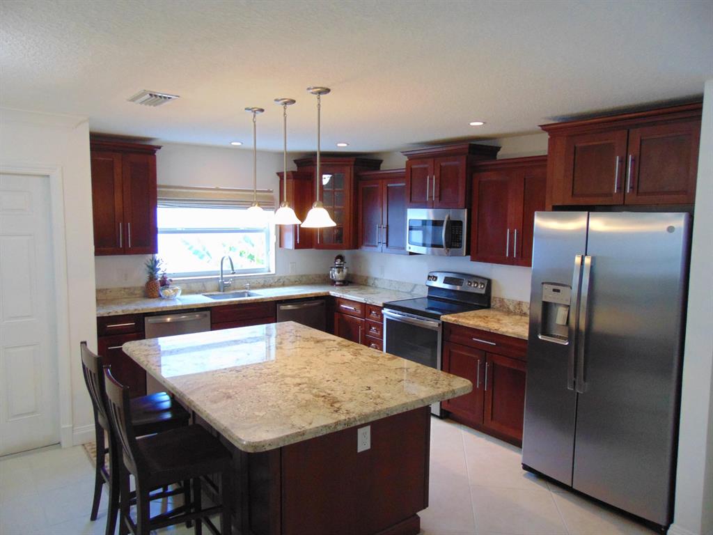 Welcome to this completely renovated home with an open layout in the much-sought after community of Pine Springs. Great location and close to shopping, restaurants, the new Uptown Boca and turnpike. Perfectly located so that you can easily walk to large shopping centers, restaurants and Carvel Ice Cream. As you enter the home, there is a beautiful kitchen with a large center island with an extended granite countertop with a breakfast bar and additional storage cabinets under the breakfast bar. The kitchen features cherry wood Kraftmaid cabinets, two dishwashers and stainless steel appliances. The spacious master suite located in the rear of the home has a large walk-in closet and a luxurious walk-in shower with a floating vanity.