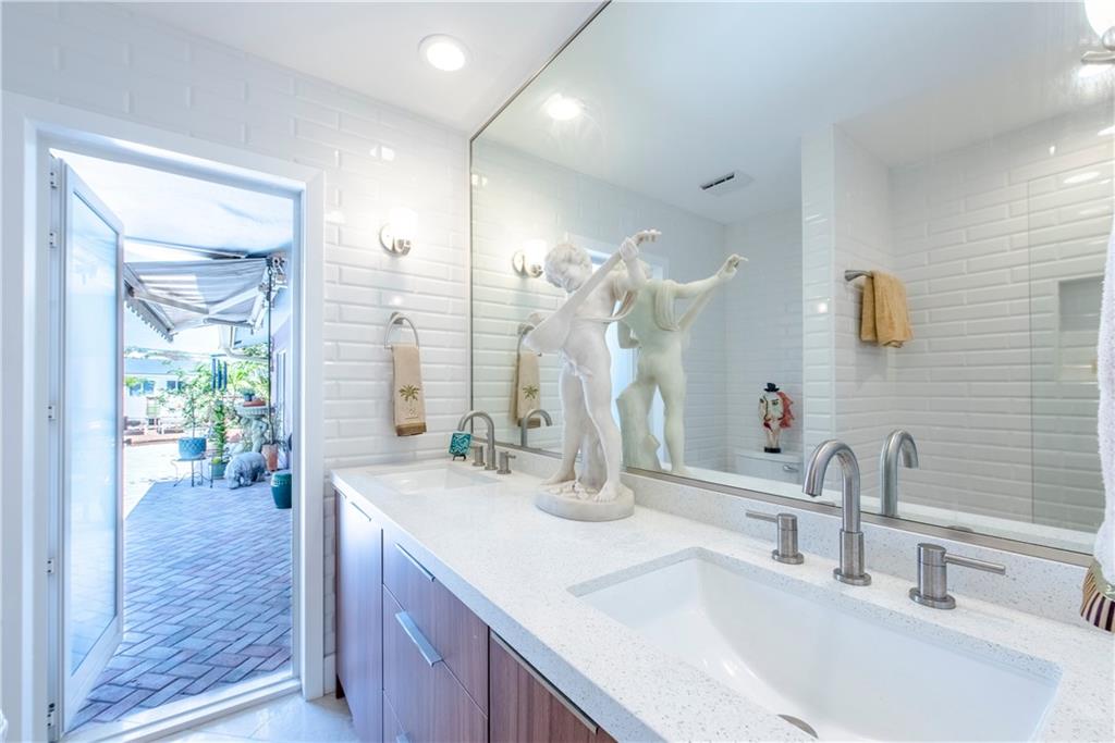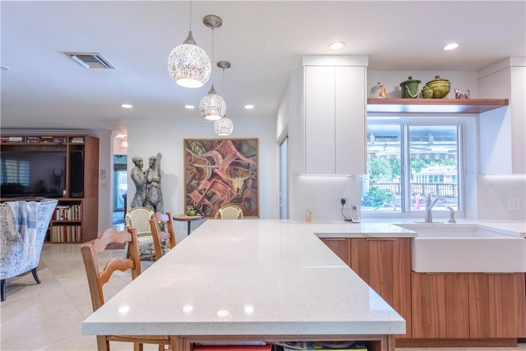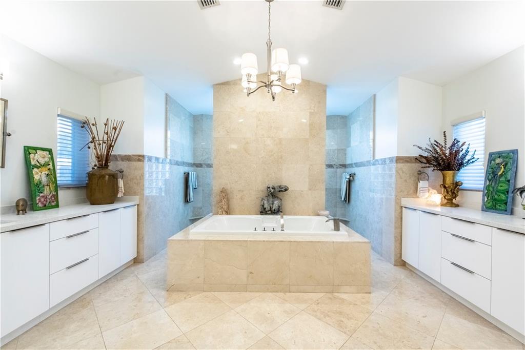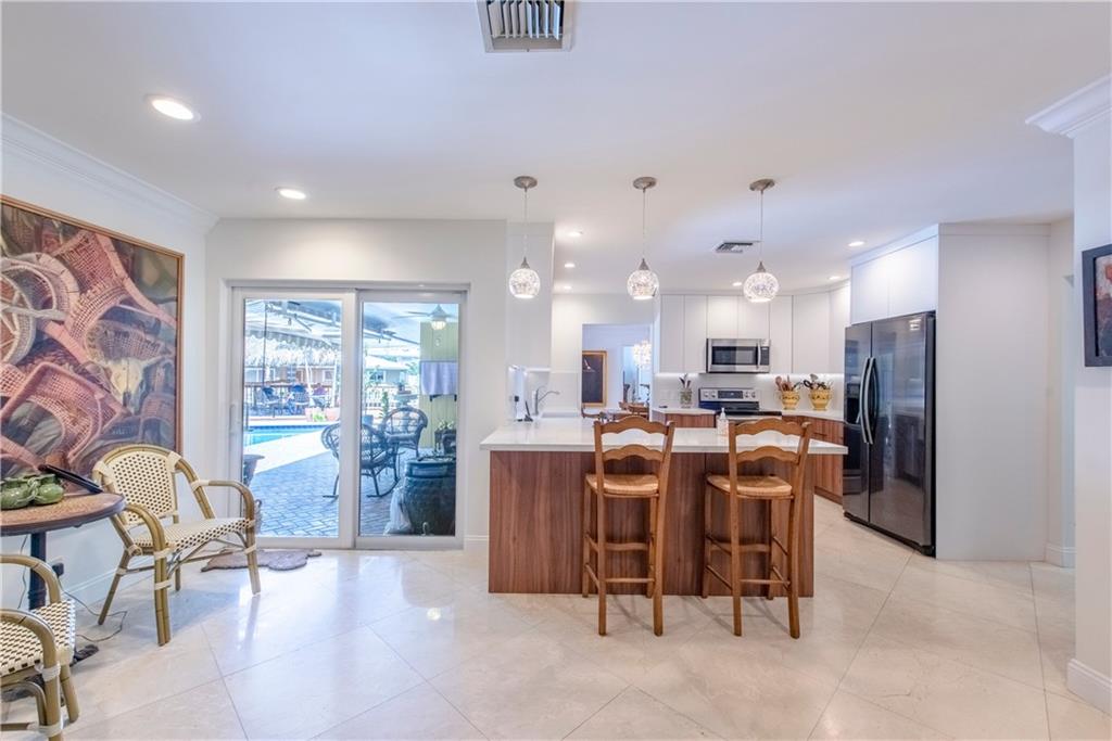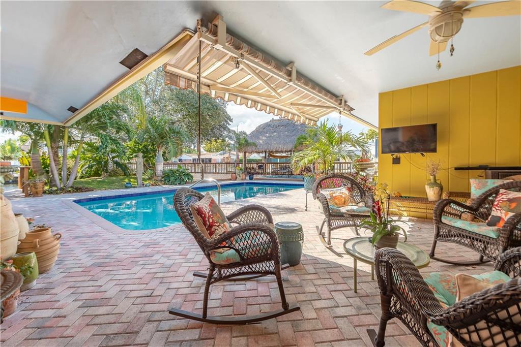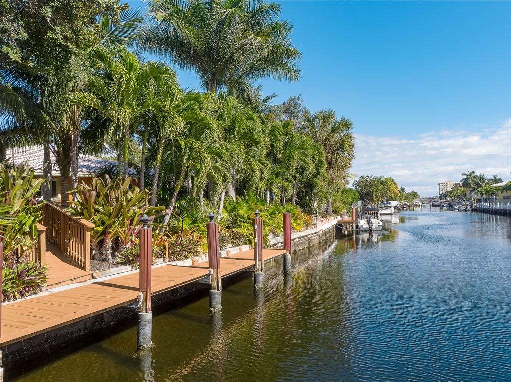 Simply Spectacular, Newly renovated Contemporary style 4 bed 3 bath waterfront pool home, Point lot with 250 ft of waterfront, 55 ft dock w/ electric & water. This home located in The Landings built at the end of a cul-de-sac , ultimate privacy. Interior features, 2 master suites w/ 1 Master suite just under 1,000 sq ft.,split bed floor plan, marble floors in living area, hard wood floors in bedrooms. Media room, laundry rm & a storage room. Exterior features mature lush landscape w/ fenced yard, expansive decking w/ Tiki Hut, sound & lighting perfect for entertaining. New Gas Genrac generator w/ a 7 yr warranty runs entire home. Impact windows & doors, custom impact front door w/ decorative glass, new garage impact door, new level 2 charing station. Mins to Intracoastal, Boater's Dream