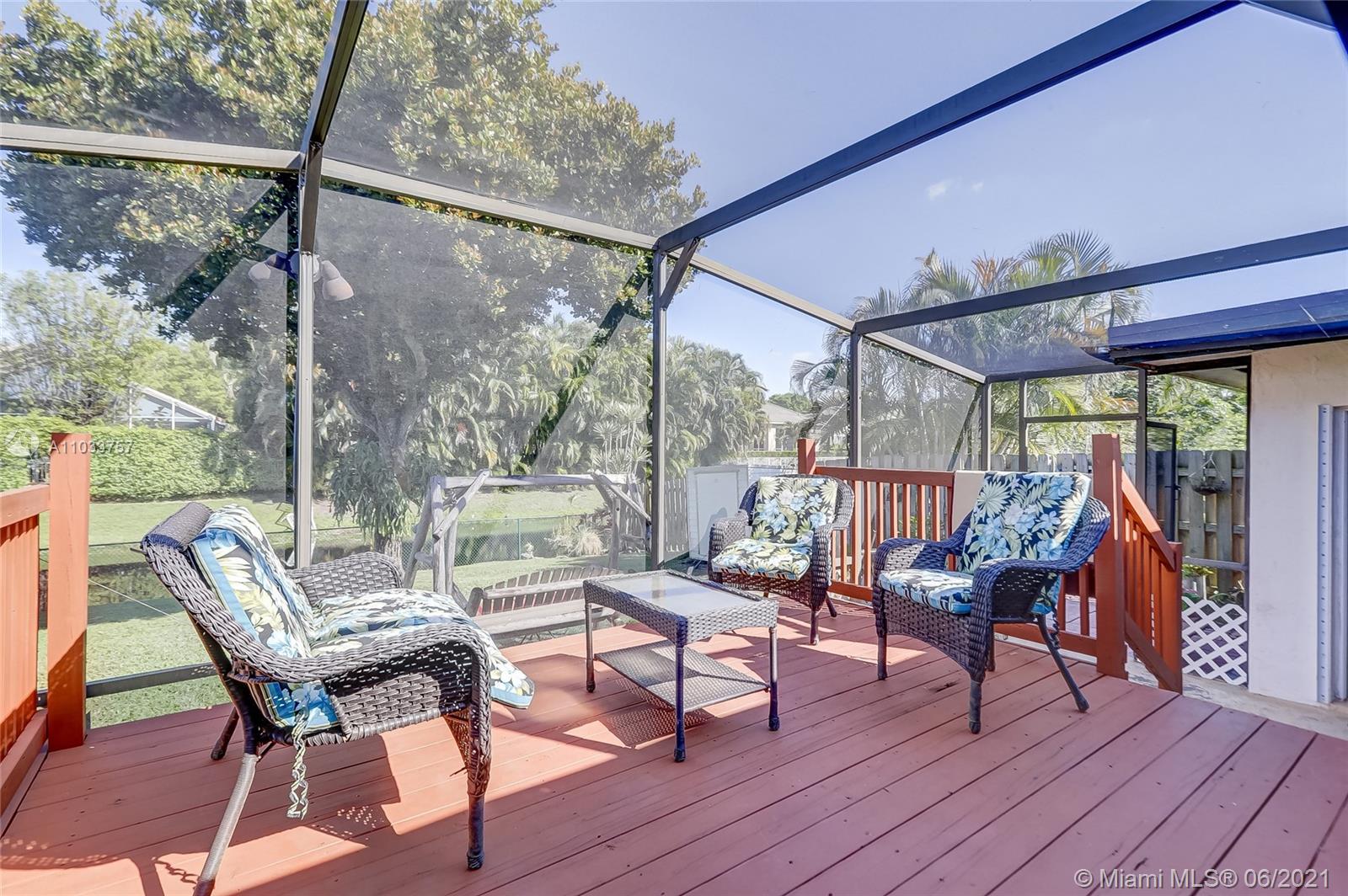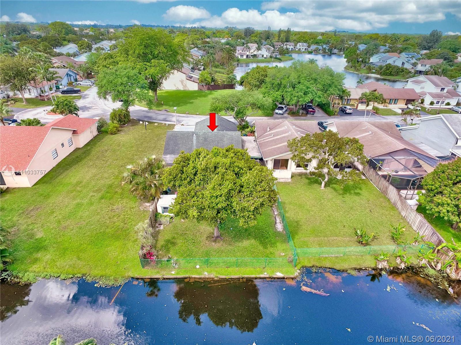 The perfect home for those who want to start fresh & add their own custom updates. Just under 1400 sqft of living space in this 2/2 single family home on an oversized waterfront lot in the heart of Davie. First thing you will notice upon entering the home is the expansive great room w/real wood flooring, & vaulted ceilings. This room is perfect for those who like to entertain. Large master suite w/sitting area overlooking the water, & nice size walk-in closet. Wraparound screened in patio w/wood deck is perfect for those days you want to sit outside & have friends over. Full hurricane protection on all windows. Huge backyard w/plenty of room for a pool, or to let the dogs run free. Walking distance from Reflections Park, Bamford Sports Complex w/community pool, & A+ school system.