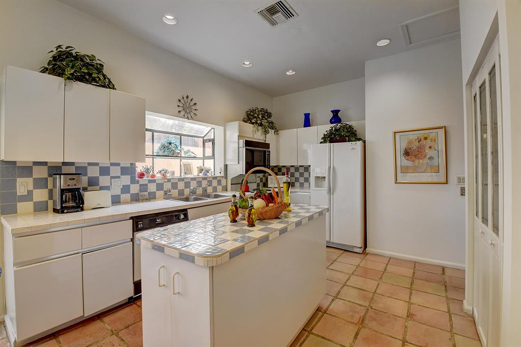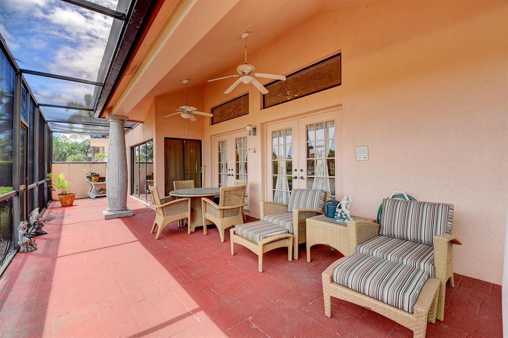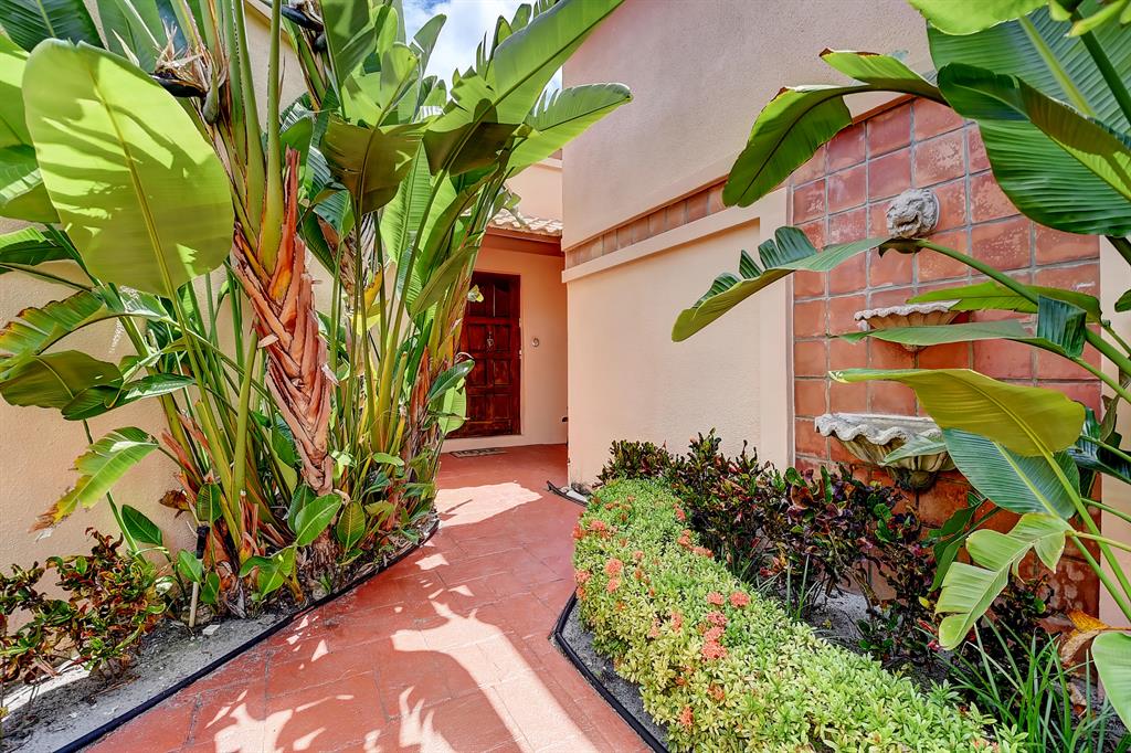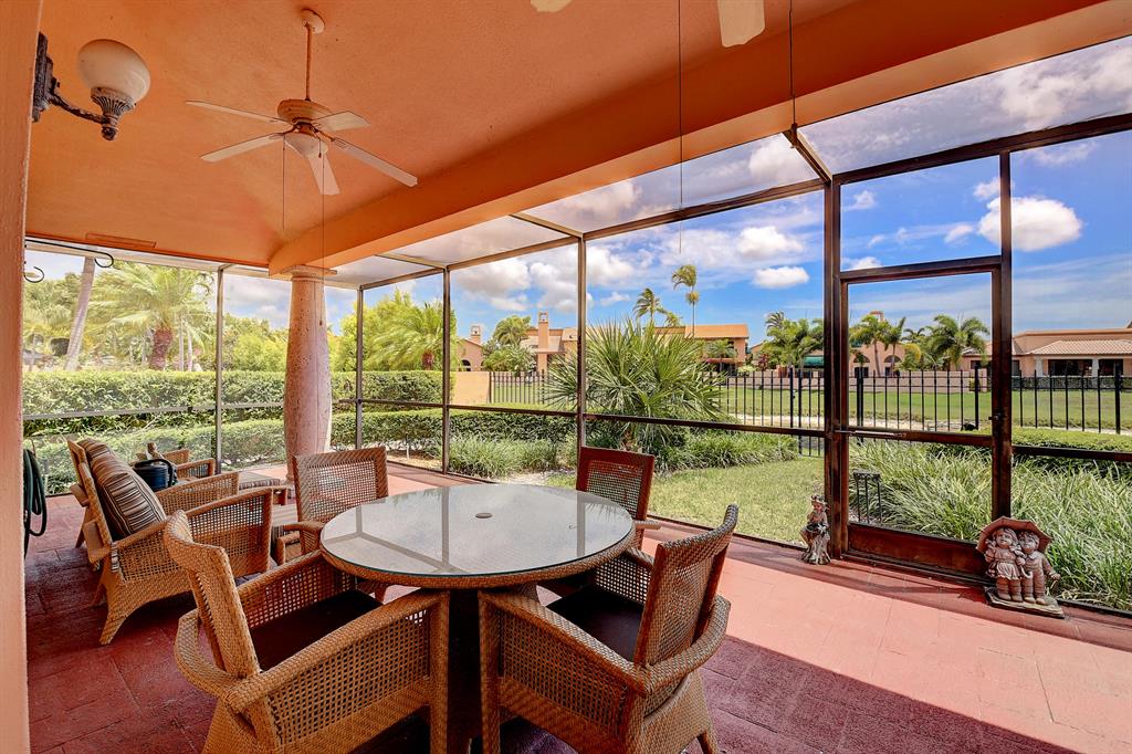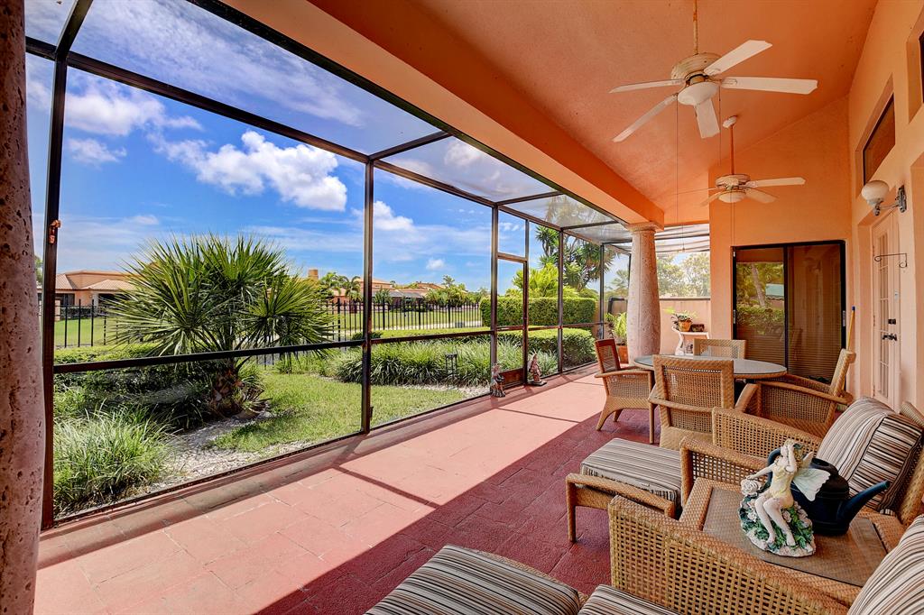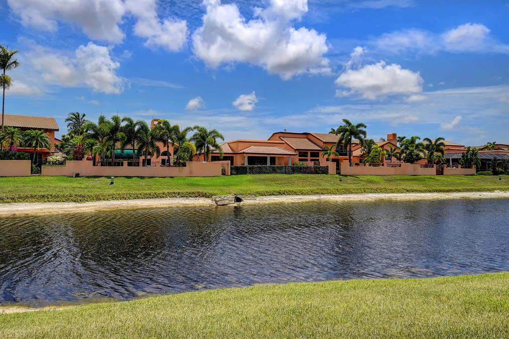 Lovely and Spacious Waterfront 2 bedroom/2 bath residence in very desirable Villa Flora in Boca Pointe. This lushly landscaped, well maintained and wrought-iron gated entryway ''original'' condition home is light & bright; has an open great room floor plan, with a wet bar, coral fireplace, built-in illuminated wall unit, and charming vintage leaded glass transom windows features; nice sized kitchen with an island and eat-in breakfast area, large master suite, and classic French doors leading out to a beautiful rear patio overlooking the peaceful lake and fountain. Roof 2016; Water Heater 2014; A/C 2012. This home awaits a discerning buyer's personal touches!