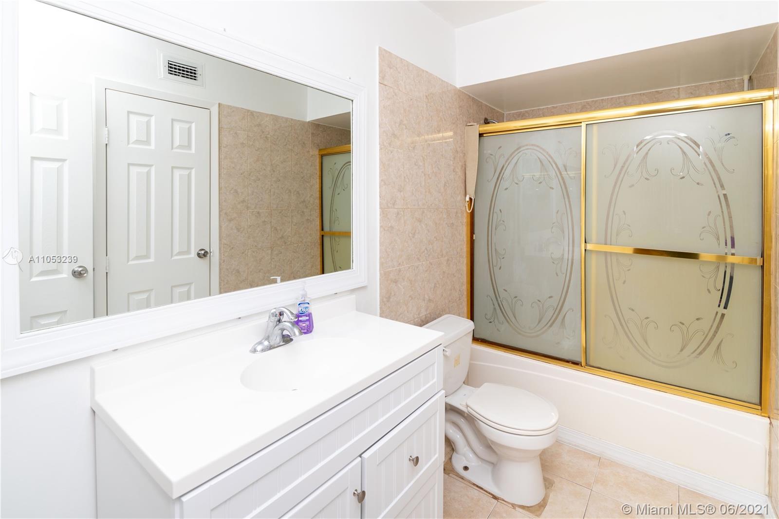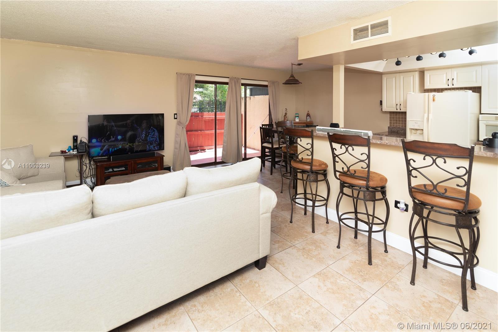 Spacious two story 2 Bedroom/1.5 Bathroom townhouse with enormous 1 car garage and assigned parking space right in front. Corner unit with fenced back patio, all tile floors, kitchen with breakfast bar, updated bathrooms, large master bedroom with walk-in closet, washer and dryer. Next to Tennis court. Schools, restaurants, shopping and Seminole Hard Rock nearby. Maintenance fee includes insurance, roof, pool, tennis court, playground, community lake and common areas. Very easy access to highways like the Turnpike, 826, I-95, I-75. Will not last!