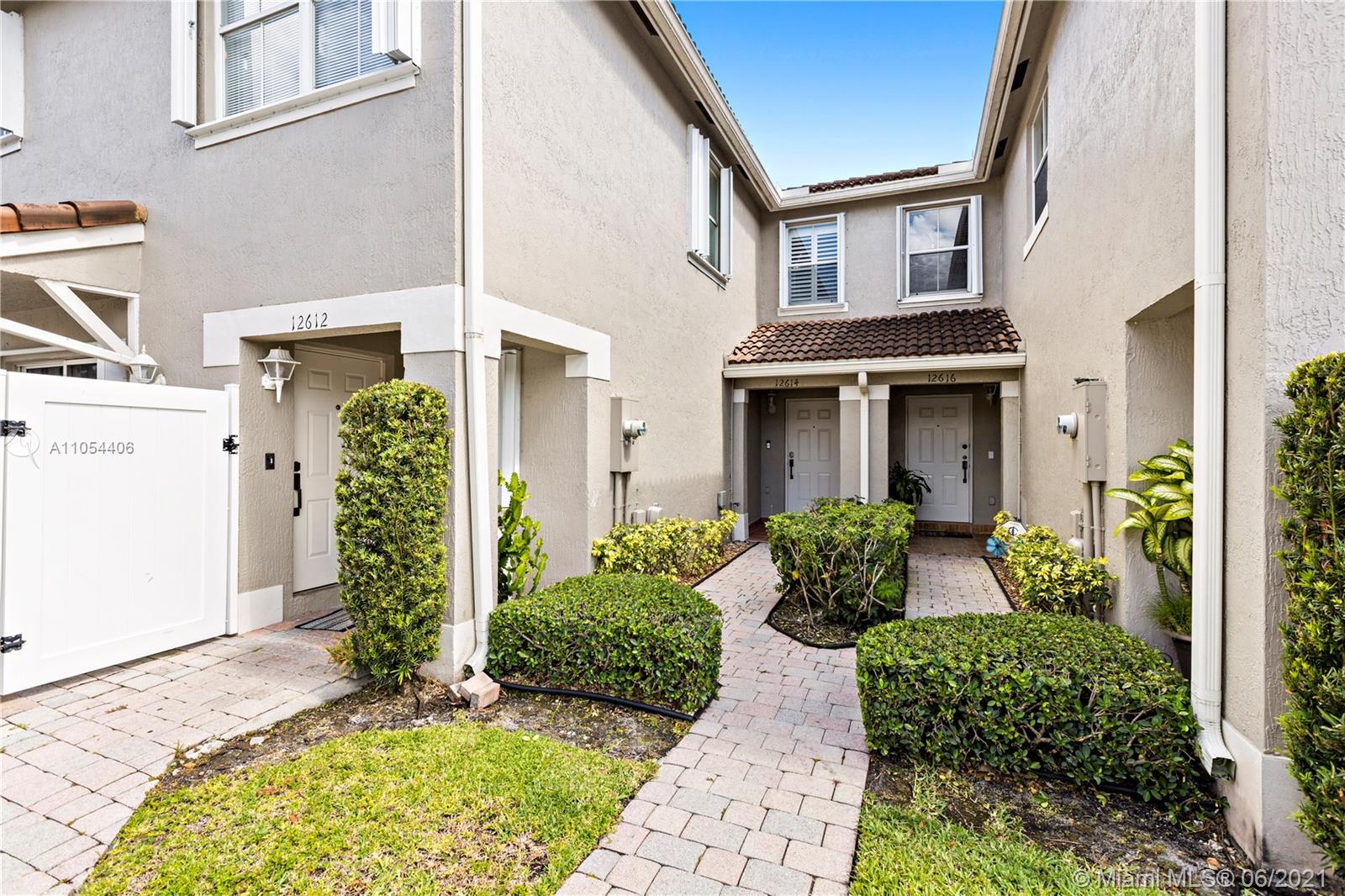 Beautiful 3-bedroom, 2.5 bathroom townhome in the prestigious community of Bahia at Vizcaya in Miramar. The entry level leads you to a spacious living area with a ½ bathroom downstairs. The kitchen is located next to the living area and it has been upgrade with granite counter tops. Downstairs is tile throughout and upstairs has laminate wood floors. As you enter your master bedroom through your double doors you will find a sliding glass door that leads to your master balcony. The master also has his and hers closet and private bathroom. The two other bedrooms are across from the master. Plantation shutters and accordion shutters throughout townhome are new and installed in July 2020. Ring doorbell and ring spotlight cameras are not included in the sale.