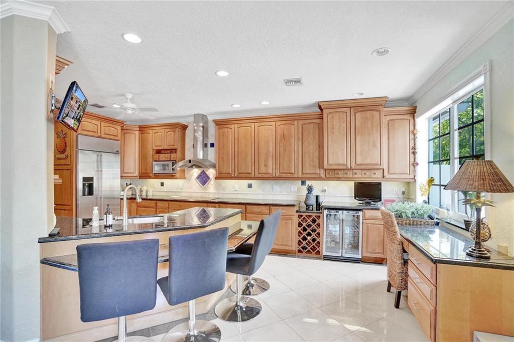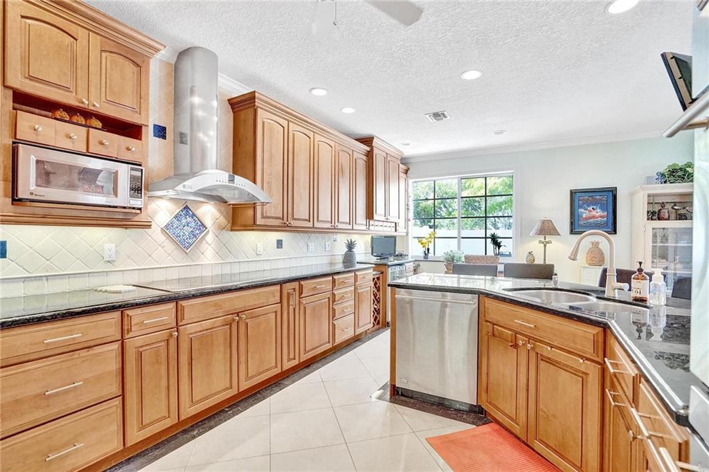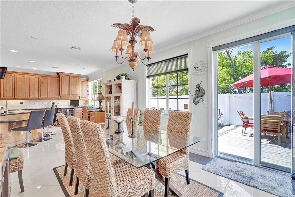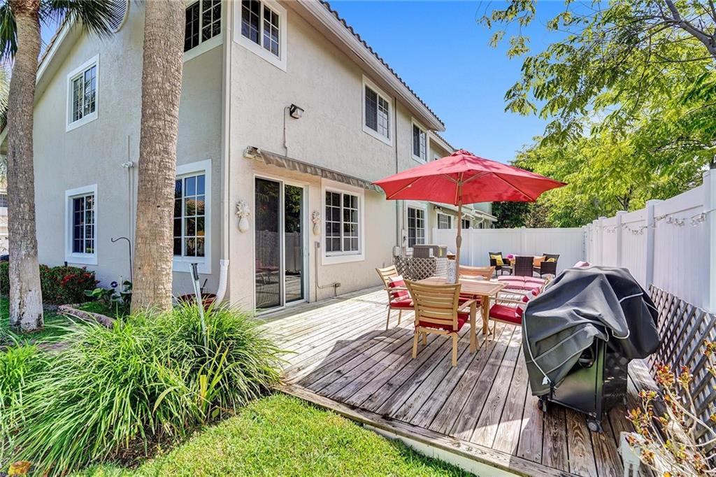 Picture perfect fee simple townhome located east of Federal Highway in Fort Lauderdale in a private enclave in Port Royale called Montego Bay. This corner unit features volume ceilings, impact glass, updated kitchen and baths, new roof, new HVAC, central vacuum system and is totally turnkey. Two bedrooms, two and a half bathrooms with an office. The primary bedroom has it's own office suite and cozy lounge area, two custom closets with built ins and a separate jacuzzi tub and shower. The downstairs living space is perfect for entertaining including a bar seating in the kitchen, two wine refrigerators and an eat in dining area all leading to a private tropical outdoor living space. Conveniently located just a few steps from the pool.
