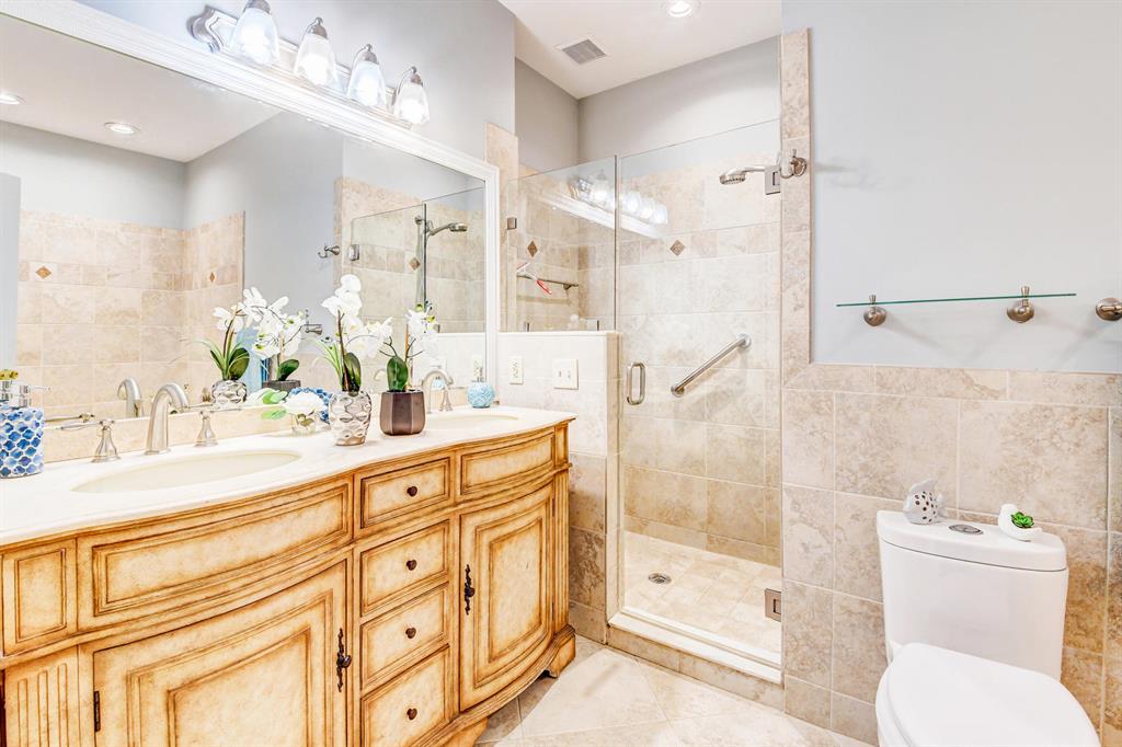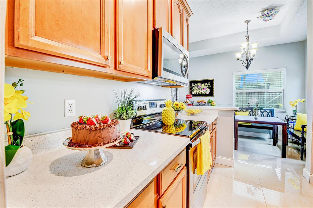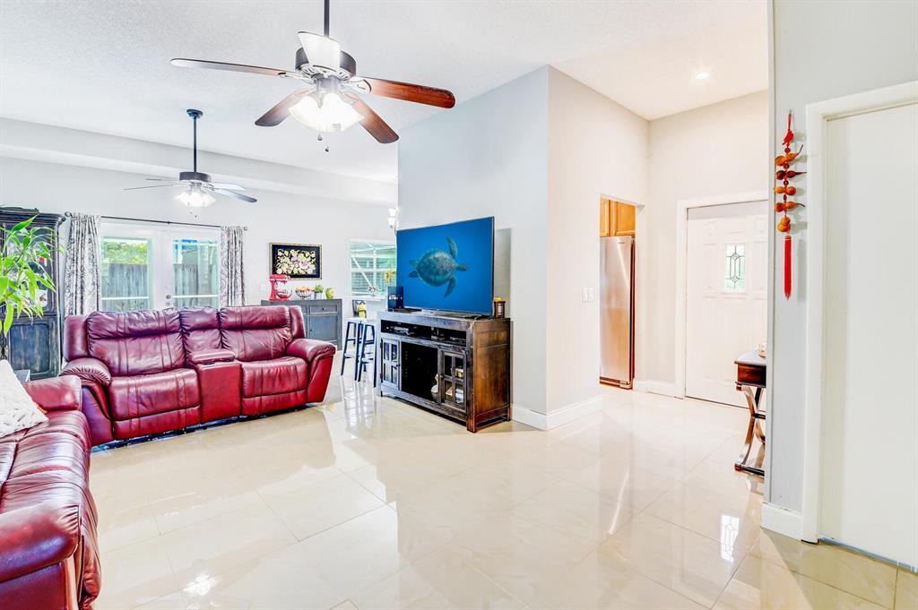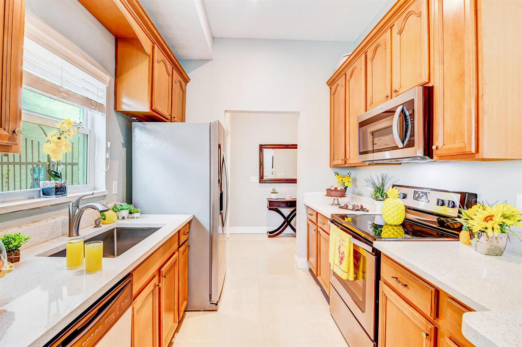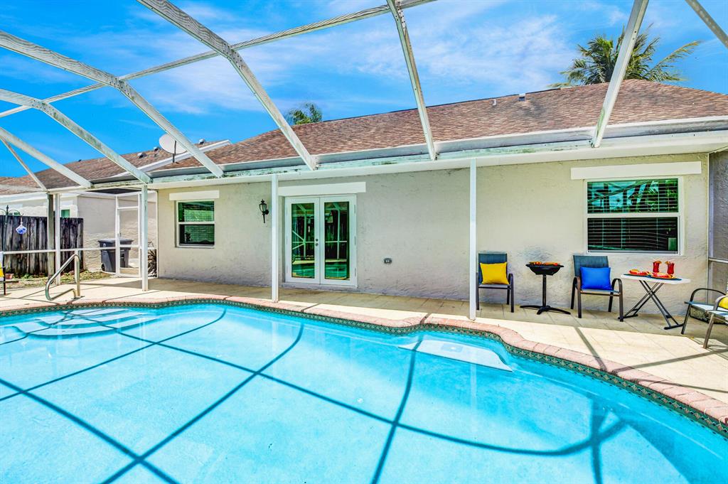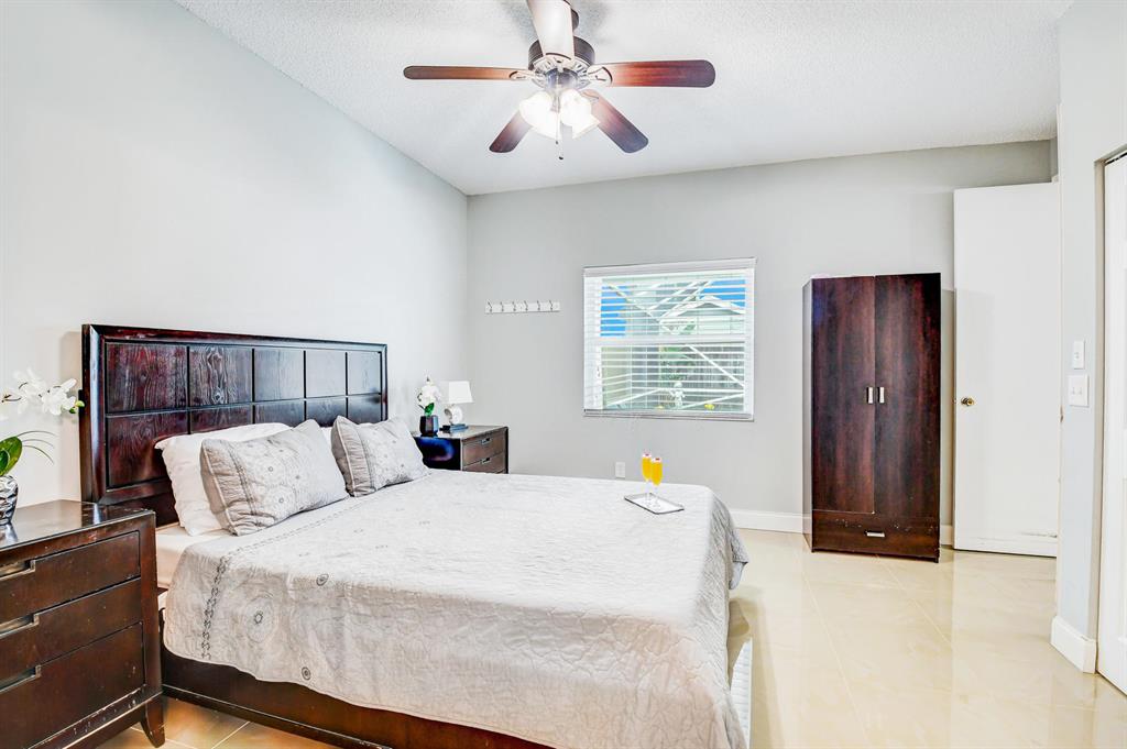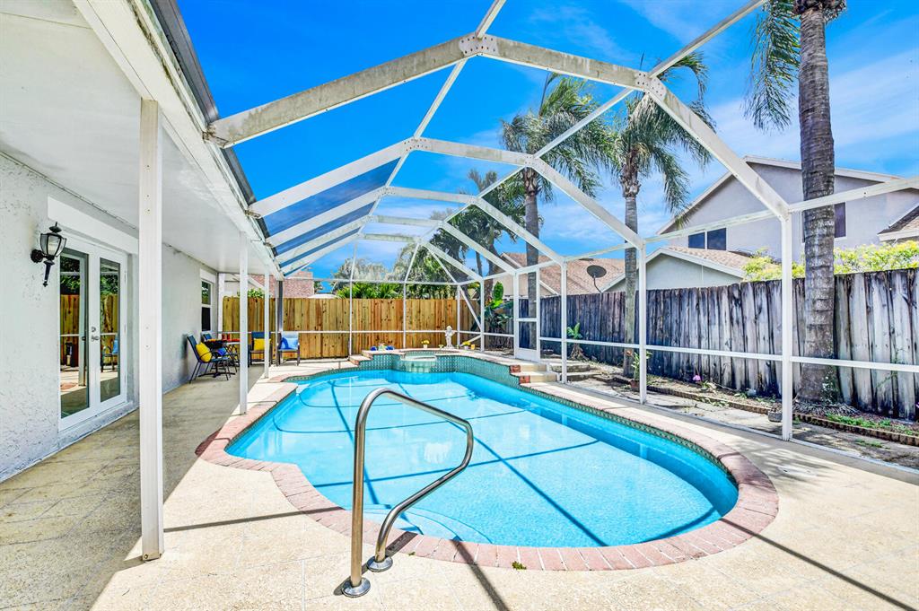 Fabulous Pool Home featuring 3 bedrooms, 2 baths, 2 car garage in the highly desirable community of Trends at Boca Raton. Throughout this home you will find large tile flooring, volume ceilings & IMPACT Glass! Updated kitchen w/Quartz countertops, Wood cabinets with crown molding & SS Appliances. Master Suite has large walk-in closet & an updated master bathroom w/dual sinks with granite countertop and wood cabinet with pull out drawers, Separate soaker tub, tile on wall with decorative diamond tile inserts & separate shower with frameless glass door. Bright home with an open floor plan. Impact French doors lead to the tropical oasis pool/patio area out back. Screened in larger pool w/raised spa & covered patio area. Fenced in backyard. Wrought iron fence/gate on side of house lead to the