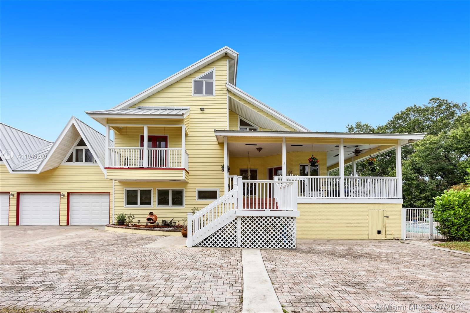 Welcome to your own private paradise! Prime corner lot perfectly situated in the heart of Southwest Ranches. Warm, inviting country living on a 2.52-acre ranch on a corner cul-de-sac with mature fruit trees, stocked pond and horse pasture, 4 stall barn with water and electric. Several sheds for feed/tack and equipment storage. Entire property is fenced and gated, including paddock. Wrap around balconies overlooking the front yard, pool, and barn area make for incredible views and great parties. Gated entrance with mature hedge lines for optimal privacy. *BONUS* West wing of home contains a separate 2 story 1 bedroom/2 full bath unit with separate entrance and full kitchen. Great for in-laws or income producing opportunity! Don't miss out on the opportunity to own a truly unique home!