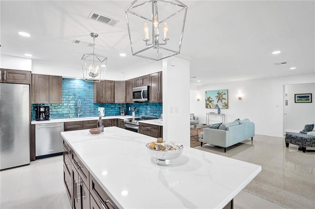 This is the one you have been waiting for! Completely remodeled 3 Bed/2 Bath home in the desirable Harbor Village. Located East of US-1 you can walk to the beach, restaurants, shops, golf, tennis, park & more. Brand new custom kitchen features quartz counters, smoky gray cabinets & a glass tile backsplash. Enjoy eating at your massive kitchen island and entertaining at the built in bar. Spacious and open floor plan boasts are large living/dining space. Natural light pours into the home through the impact windows. Both bathrooms have been stunningly updated. Multi purpose 3rd bedroom serves as either a dual master or a great office/den/flex space. Large corner lot, fully fenced with room for a pool. Freshly painted interior & exterior. 2 Car garage + tons of drive way space. Don’t miss out!