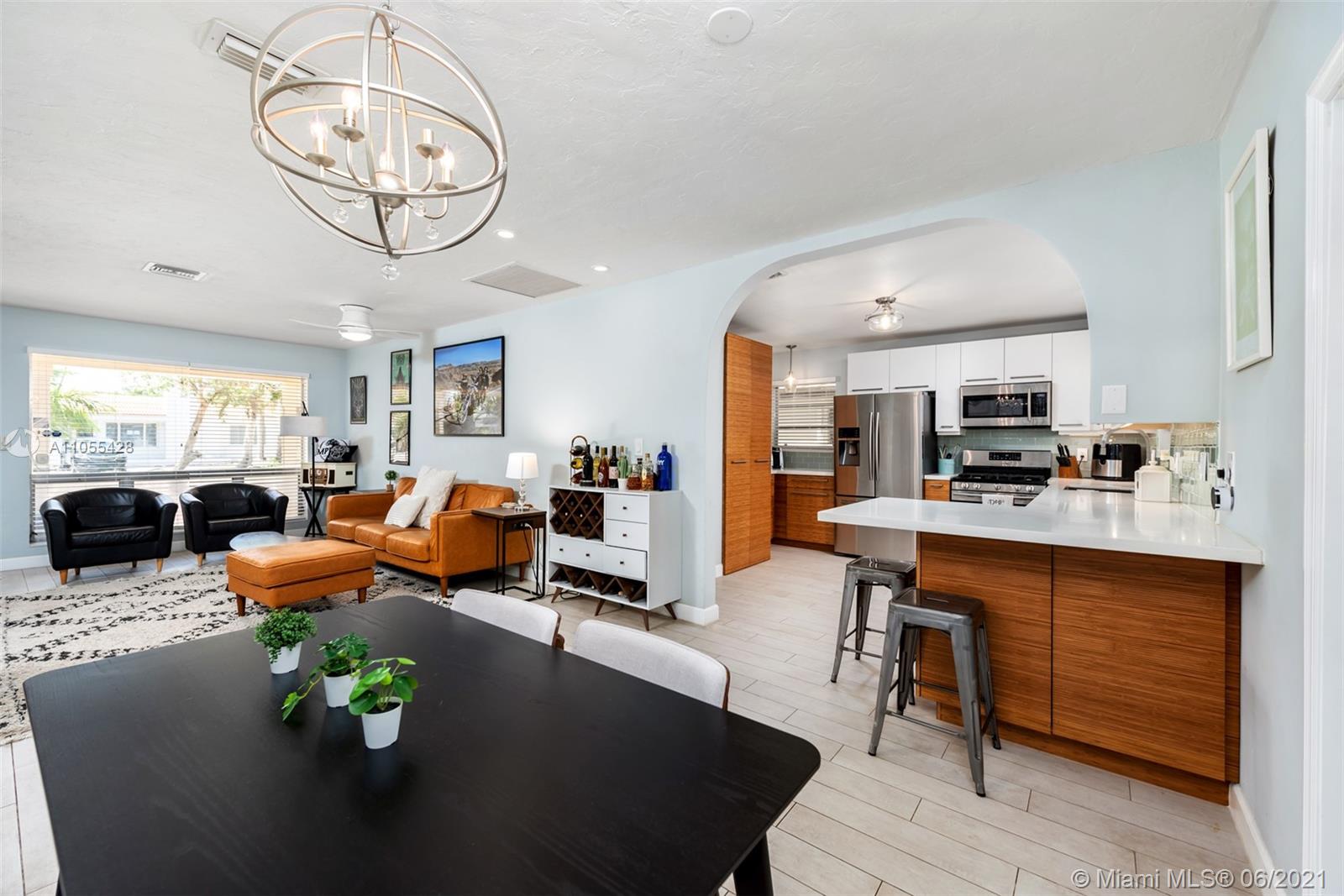 Home 1400 sq ft per owner. Beautifully updated 3 bed / 2 full baths open concept home in quaint & highly desirable Hollywood Lakes. Fully updated designer kitchen with bamboo cabinets, quartz countertops, stainless steel appliances, gas stove, new porcelain floors throughout. Updated bathrooms, 1 car garage with window & side door which can easily be converted into 4th bedroom. Spacious fenced backyard with fruit trees, and lot's of room for a pool. A/C 5 years old. Walking distance to ArtsPark at Young Circle Hollywood Beach Golf Club. Minutes to famous Hollywood Beach, Hollywood boardwalk, Downtown Hollywood, & new Margaritaville Beach Resort.