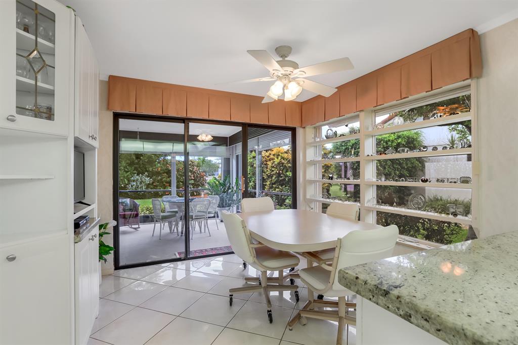 This charming 4 bedroom plus 3 bath single story home is located directly on the former Ocean Breeze Golf Course in Boca Teeca and has over 2,600 square feet of living space. Situated on a captivating quarter acre private lot on a quiet street in East Boca Raton, this residence features wide open panoramic east facing views of the future Boca National Golf Course or Boca Raton Park, high vaulted ceilings, tile floors throughout living areas, beautiful updated bathrooms, hurricane impact accordion shutters on all windows, roof replaced in 2012, granite counter tops in kitchen, 2 car garage, large screened in patio, community pool and clubhouse, and all located less than 2 miles from the beach.
