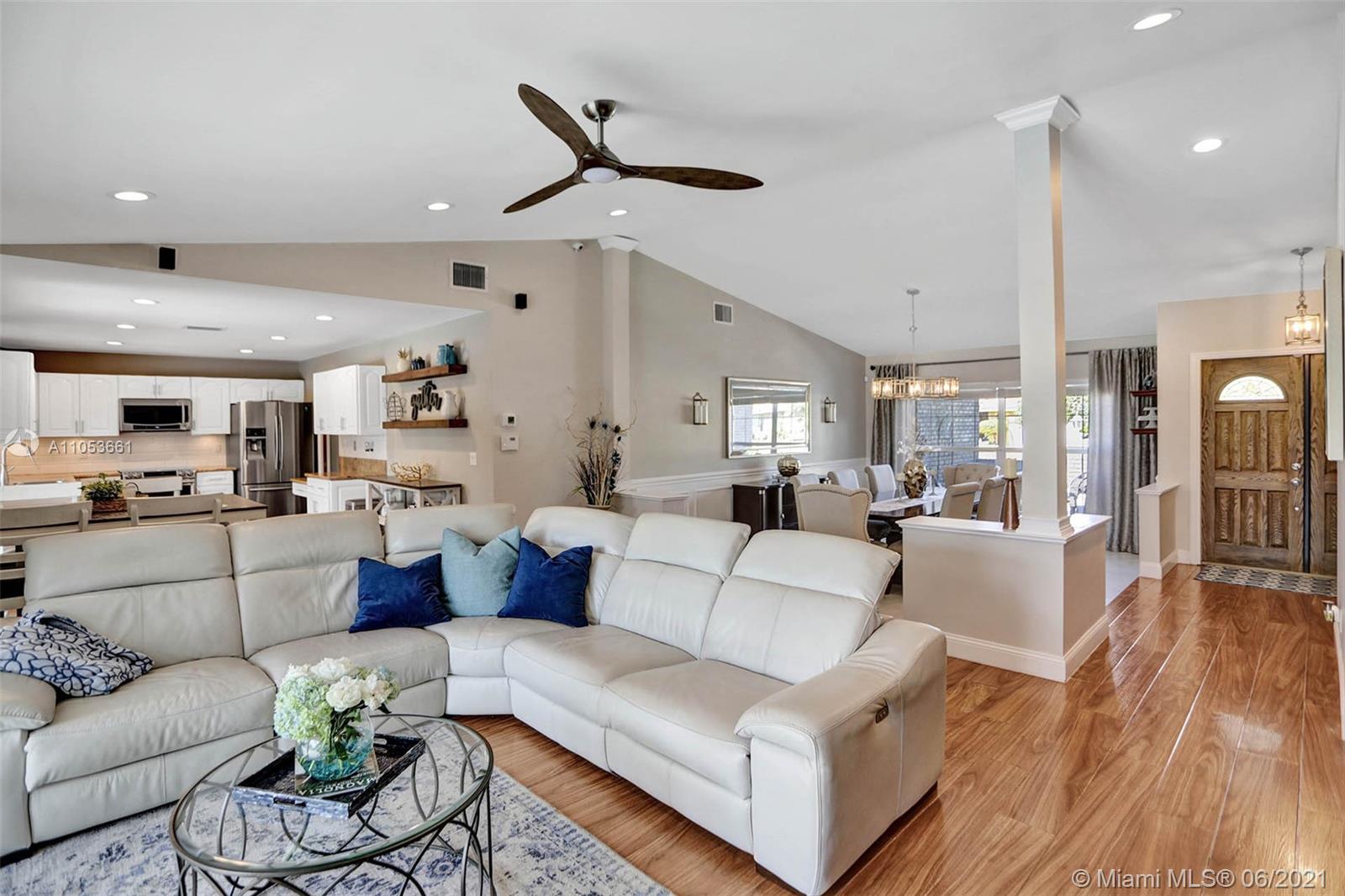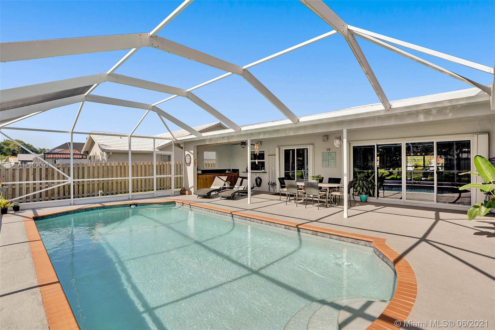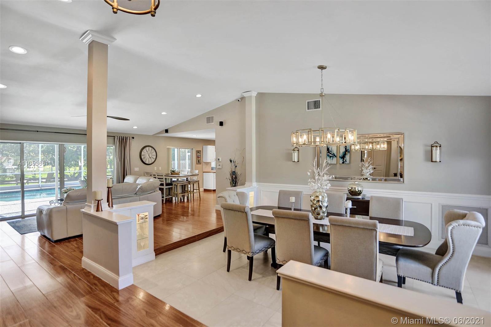 Rarely available & highly sought after One Story, 2 Car Garage, Pool & Waterfront (82') home in very desired, very family oriented Jacaranda Lakes, in Plantation, FL. Boasting majestic volume ceilings & water views in main living area & master suite this 4 bed, 2 bath, large laundry room & bonus room the home is exquisitely & meticulously rejuvenated. Boasting Metal roof (Spanish S design), new 2017 HVAC system, new Laminate flooring in bedrooms, Ceramic Wood-plank Flooring in living areas & the most amazing step down formal dining w/ custom builtin (lighted) China cabinets, & Wainscoating panels w/ attention to every detail. Bright, open & generous floor plan, Large bedrooms, Upgraded LED lighting, Spacious eat-in kitchen, Beautiful White cabinets, Granite counters & SS appliances