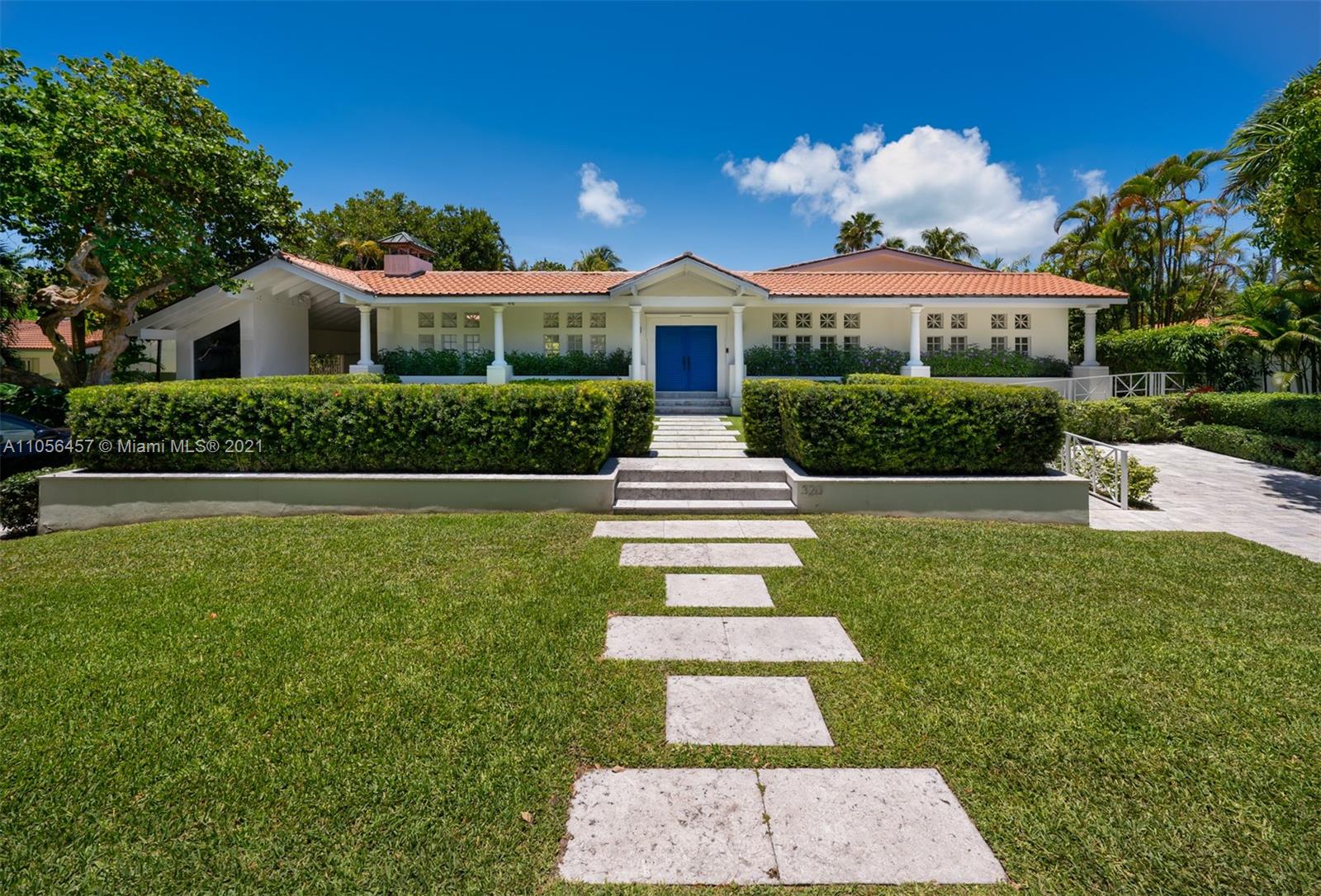 welcome to your Key Biscayne Beach House, located 3 blocks from the beach. Impeccable condition, designed by Village Architects. Located in the Holiday Colony area, the closest neighborhood for single homes to access the beach .One story home. Secluded and private, behind the double blue door an oasis of serenity will welcome you. Covered porch that gives more space to the living room area,direct access to pool and garden area. Oversized master suite with sliding doors opening to the terrace. Large family room , dining , kitchen with high ceilings . Surround system throughout the home. Built at 10 ft above flood ( see attachment for certificate of elevation). Impact glass doors / windows (expect one small window in laundry area). THE PERFECT HOME